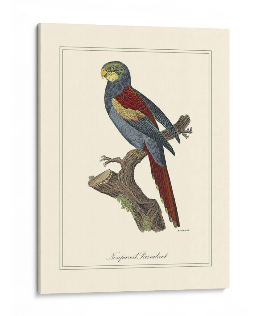 Embárcate en un viaje visual hacia la exuberante naturaleza con este cautivador cuadro decorativo "Nonpareil Parrakeet" del aclamado artista George Edwards. Esta obra de arte reimaginada captura la majestuosa presencia de un perico en su hábitat natural, presentado con un detalle exquisito y una paleta de colores vibrante que evoca la riqueza de la fauna tropical. Los tonos grises azulados del cuerpo del ave contrastan armoniosamente con las llamativas plumas rojas y amarillas en sus alas, mientras que su pico y cabeza exhiben delicados matices verdes y amarillos. La composición, centrada en el perico posado sobre una rama rústica, crea un punto focal de gran interés visual, ideal para infundir vida y color en cualquier espacio. La técnica detallada, reminiscentes de las ilustraciones científicas clásicas, añade un toque de elegancia y sofisticación, haciendo de esta pieza una elección perfecta para amantes de la naturaleza, la ornitología y el arte con un toque de historia. Este cuadro decorativo es ideal para añadir un acento de color y un aire de serenidad exótica a tu sala de estar, estudio u oficina, transformando cualquier ambiente en una galería personal de maravillas naturales. Descubre la belleza atemporal del mundo natural a través del arte.