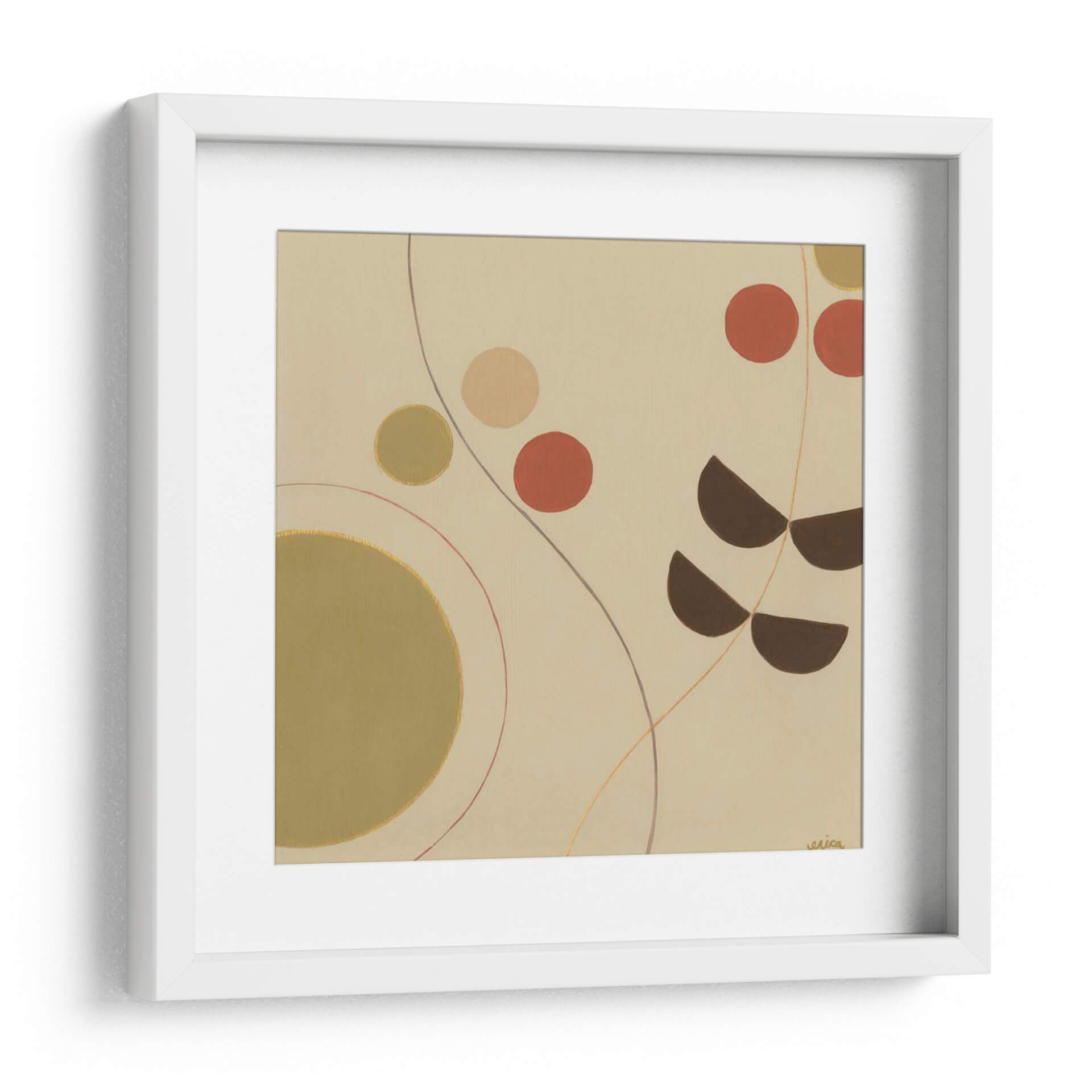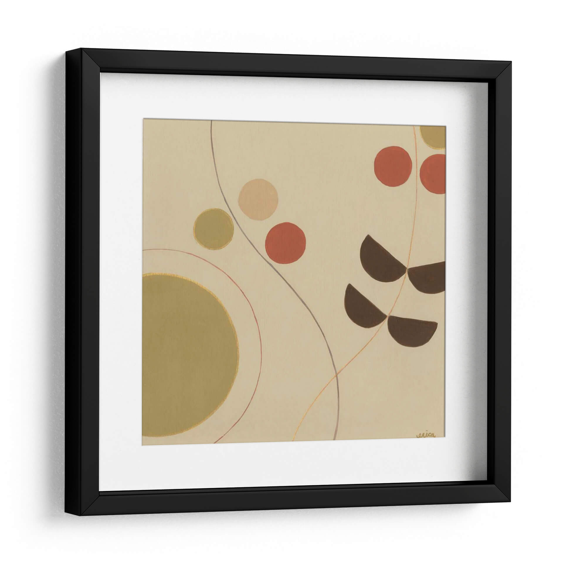Sumérgete en la serenidad geométrica de 'Otoño Orbit III', una obra de arte contemporáneo de June Erica Vess. Este cautivador cuadro decorativo presenta una delicada composición de círculos y formas orgánicas en tonos tierra, evocando la calma y la belleza sutil de la naturaleza en transición. La paleta de colores, dominada por suaves beiges, ocres, terracotas y verdes musgo, crea una atmósfera acogedora y relajante, perfecta para cualquier espacio que busque un toque de sofisticación orgánica. Las líneas fluidas y las formas circulares invitan a la contemplación, añadiendo profundidad y un ritmo visual armonioso a la pieza. Ideal para salas de estar, dormitorios u oficinas que desean una decoración de pared inspirada en la abstracción moderna con un aire natural. 'Otoño Orbit III' no es solo una imagen, sino una invitación a pausar y apreciar la estética minimalista y el equilibrio perfecto entre la forma y el color, aportando una sensación de tranquilidad y elegancia atemporal a tu hogar u oficina. Descubre la serenidad que este cuadro puede aportar a tu ambiente.
