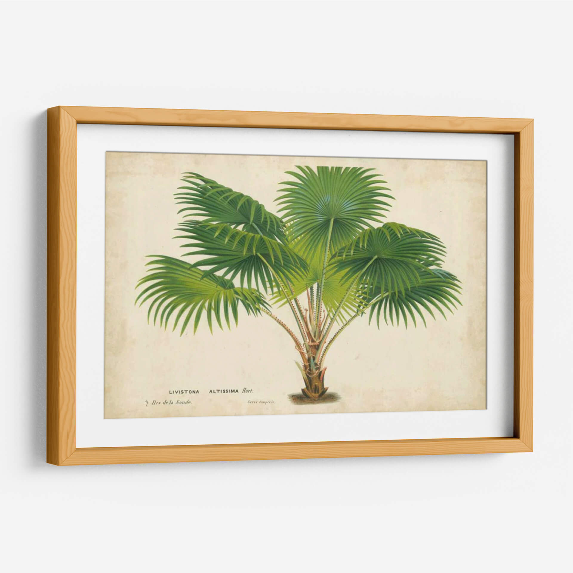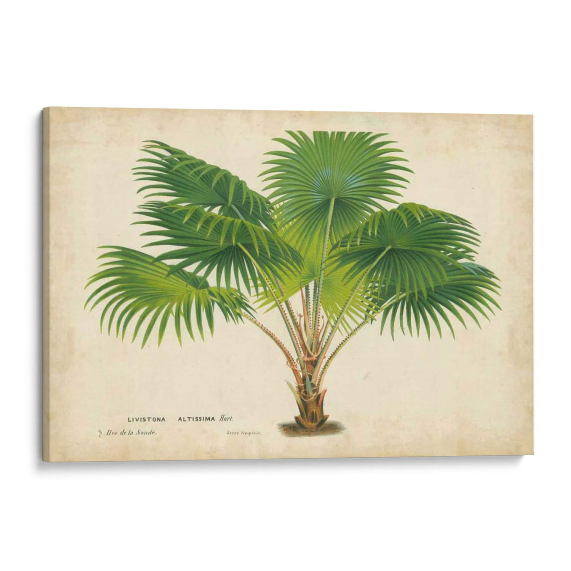 Sumérgete en la exuberante belleza tropical con nuestro cuadro decorativo "Palma De La Tropics V", una obra de arte que captura la esencia de la naturaleza con un toque botánico clásico. La pieza presenta una detallada ilustración de una palmera, con sus frondosas hojas verdes desplegándose en un patrón orgánico sobre un fondo de tono pergamino, evocando la sensación de un antiguo herbario o un estudio botánico. Los verdes vibrantes de las hojas contrastan sutilmente con los tonos cálidos y terrosos del fondo y el tronco de la palmera, creando una composición visualmente equilibrada y armoniosa. Este cuadro decorativo es ideal para añadir un toque de frescura y serenidad a cualquier espacio, ya sea una sala de estar moderna, un dormitorio tranquilo o una oficina con inspiración natural. Su estilo clásico y el tema botánico lo convierten en una pieza versátil que complementa una amplia gama de decoraciones, desde lo rústico hasta lo contemporáneo, aportando vida y un aire de sofisticación botánica a tu hogar u oficina, y transportándote a un oasis tropical con cada mirada.