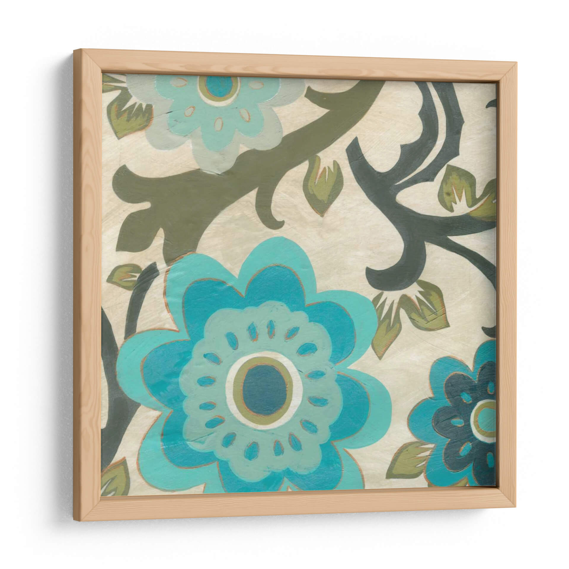 Transforma tu espacio con el vibrante cuadro decorativo "Peacock Flores I" de June Erica Vess. Esta obra de arte contemporánea presenta un patrón floral cautivador en tonos azules y verdes sobre un fondo neutro y texturizado, evocando una sensación de calma y sofisticación. Los intrincados detalles de las flores y las estilizadas hojas crean una composición visualmente atractiva que atrae la mirada y añade profundidad a cualquier habitación. El estilo artístico, que combina elementos botánicos con un toque moderno, lo convierte en una pieza versátil, perfecta para salones, dormitorios o estudios que buscan un toque de color y elegancia natural. Imagina cómo este cuadro decorativo podría convertirse en el punto focal de tu sala de estar, aportando serenidad y un toque artístico único. La paleta de colores, centrada en el azul pavo real y el verde musgo, armoniza fácilmente con una variedad de estilos de decoración, desde el bohemio hasta el moderno escandinavo. Añade una pincelada de naturaleza y arte a tu hogar con esta exquisita pieza floral, ideal para quienes aprecian el arte contemporáneo y buscan crear un ambiente acogedor y lleno de estilo.