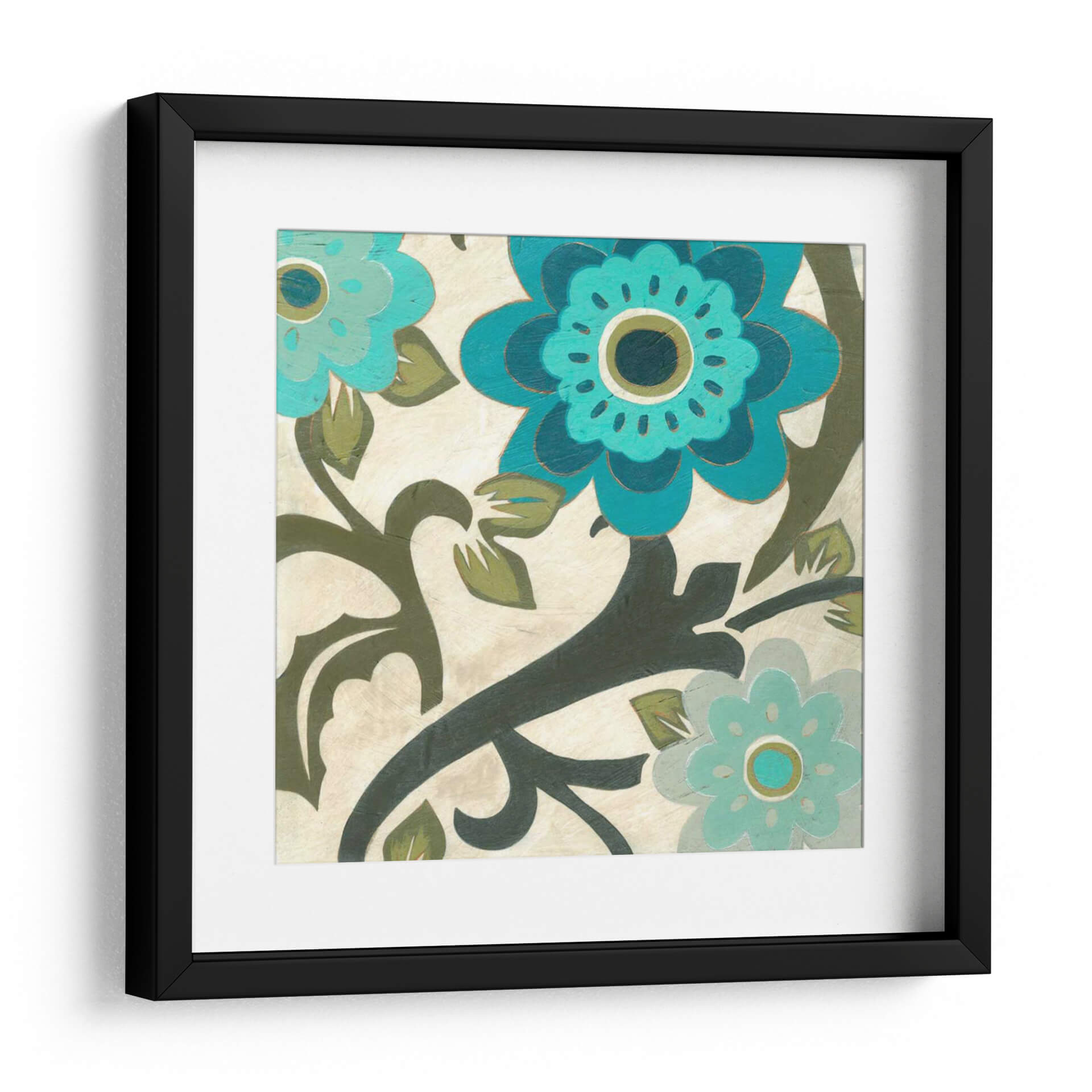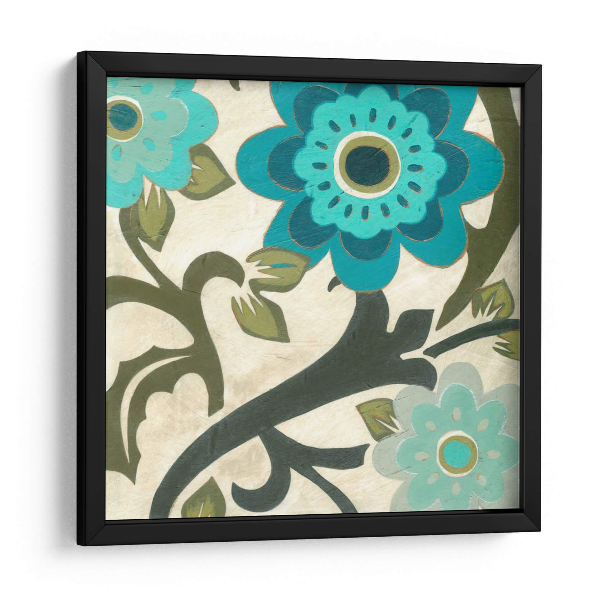 Sumérgete en la belleza natural y el diseño contemporáneo con "Peacock Flores II", una cautivadora obra de arte de June Erica Vess. Este cuadro decorativo floral presenta vibrantes flores en tonos turquesa y azul profundo, contrastando elegantemente con un fondo texturizado en crema y verdes terrosos. La composición se centra en un patrón orgánico y estilizado, con volutas oscuras que se entrelazan entre las flores, evocando una sensación de movimiento y vitalidad. La técnica de pintura, con pinceladas visibles y un acabado ligeramente rústico, añade profundidad y carácter a la pieza. "Peacock Flores II" es una elección perfecta para quienes buscan añadir un toque de color y sofisticación a su hogar u oficina. Su estilo versátil lo hace ideal para salones modernos, dormitorios serenos o incluso como punto focal en un estudio. Transforma tu espacio con esta explosión de color y diseño floral que combina la delicadeza de la naturaleza con una estética moderna y atemporal, invitando a la contemplación y al disfrute visual en cada rincón. Añade esta pieza única a tu colección y experimenta la armonía y el estilo que solo el arte puede ofrecer.