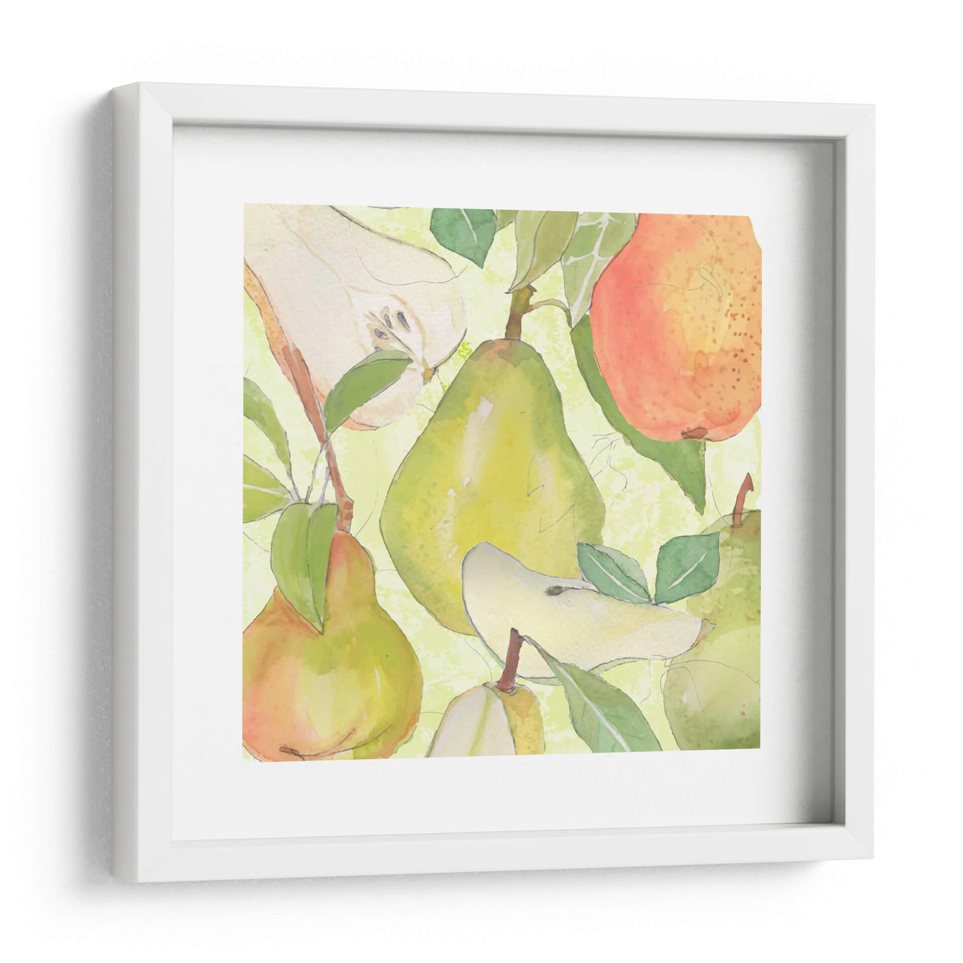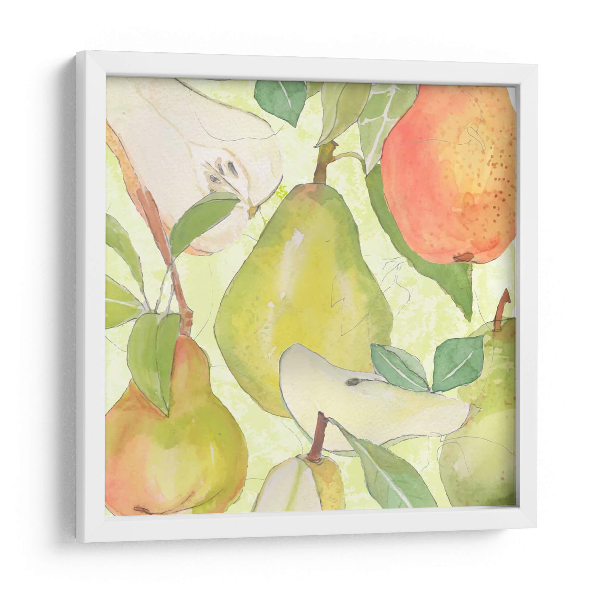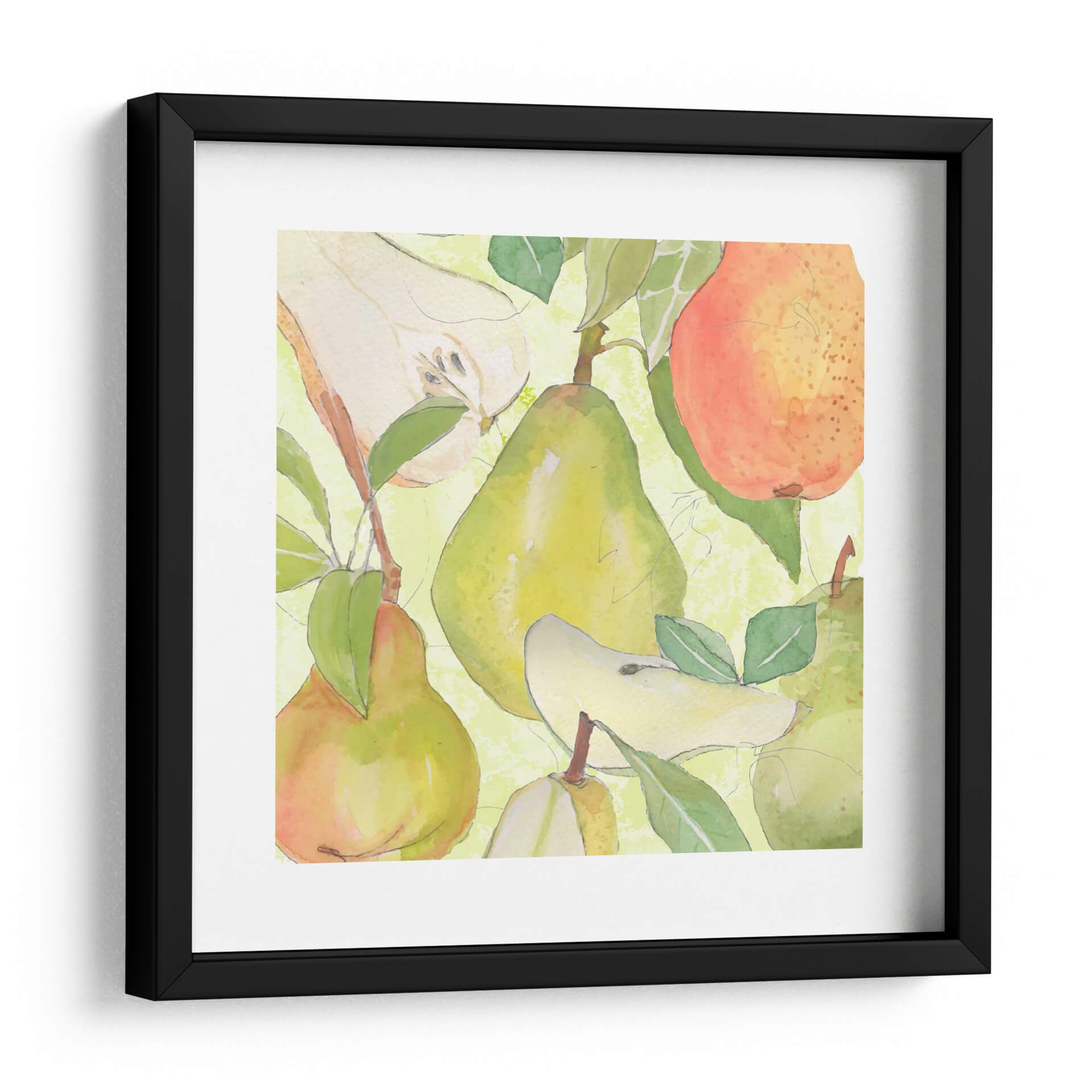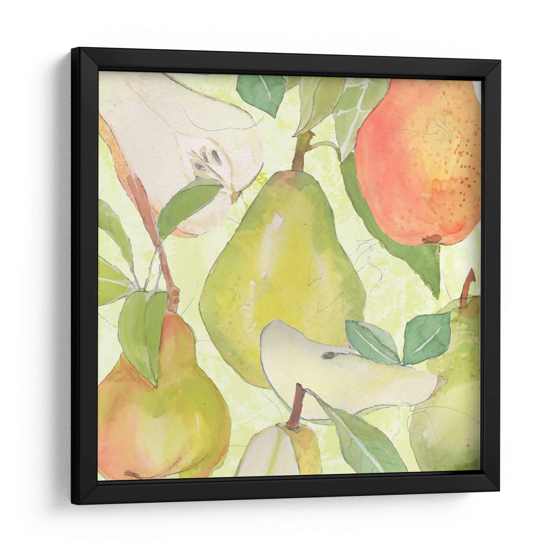 Inyecta un soplo de frescura primaveral y encanto rústico a tu hogar con la obra de arte "Pera Medley II" de Leslie Mark. Este cuadro decorativo captura la esencia jugosa y vibrante de las peras en un estilo de acuarela delicado y luminoso. La paleta de colores se centra en tonos verdes y amarillos suaves, salpicados con acentos de naranja rosado, creando una atmósfera de calidez y serenidad. Las peras, representadas en distintas etapas de madurez y corte, junto con las hojas verdes frescas, evocan una sensación de abundancia natural y vitalidad. La técnica de acuarela, con sus sutiles degradados y trazos fluidos, aporta ligereza y un toque artístico a la composición. Ideal para cocinas, comedores o cualquier espacio que busque un toque de color orgánico y una conexión con la naturaleza. Este cuadro decorativo es perfecto para quienes aprecian el arte inspirado en la vida cotidiana, aportando una dosis de optimismo y dulzura a la decoración de interiores. Transforma tu ambiente con la simplicidad elegante y la frescura inconfundible de esta pieza.