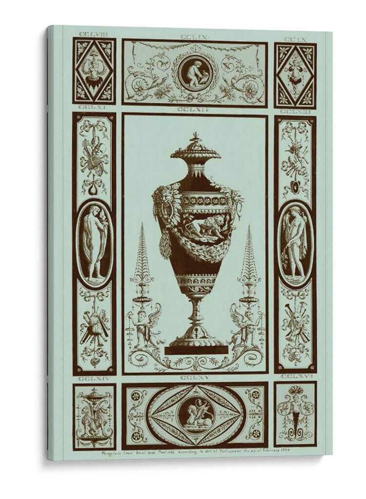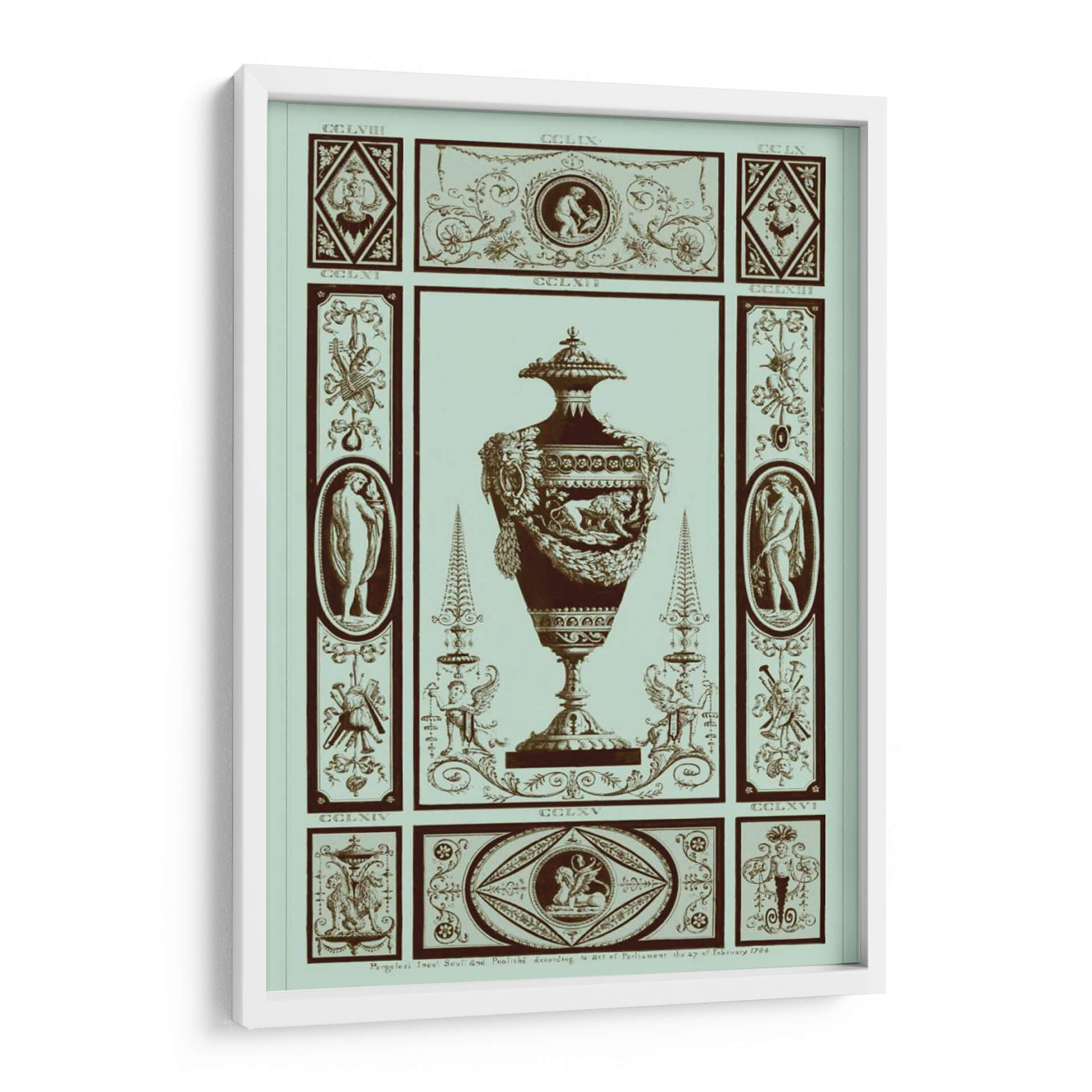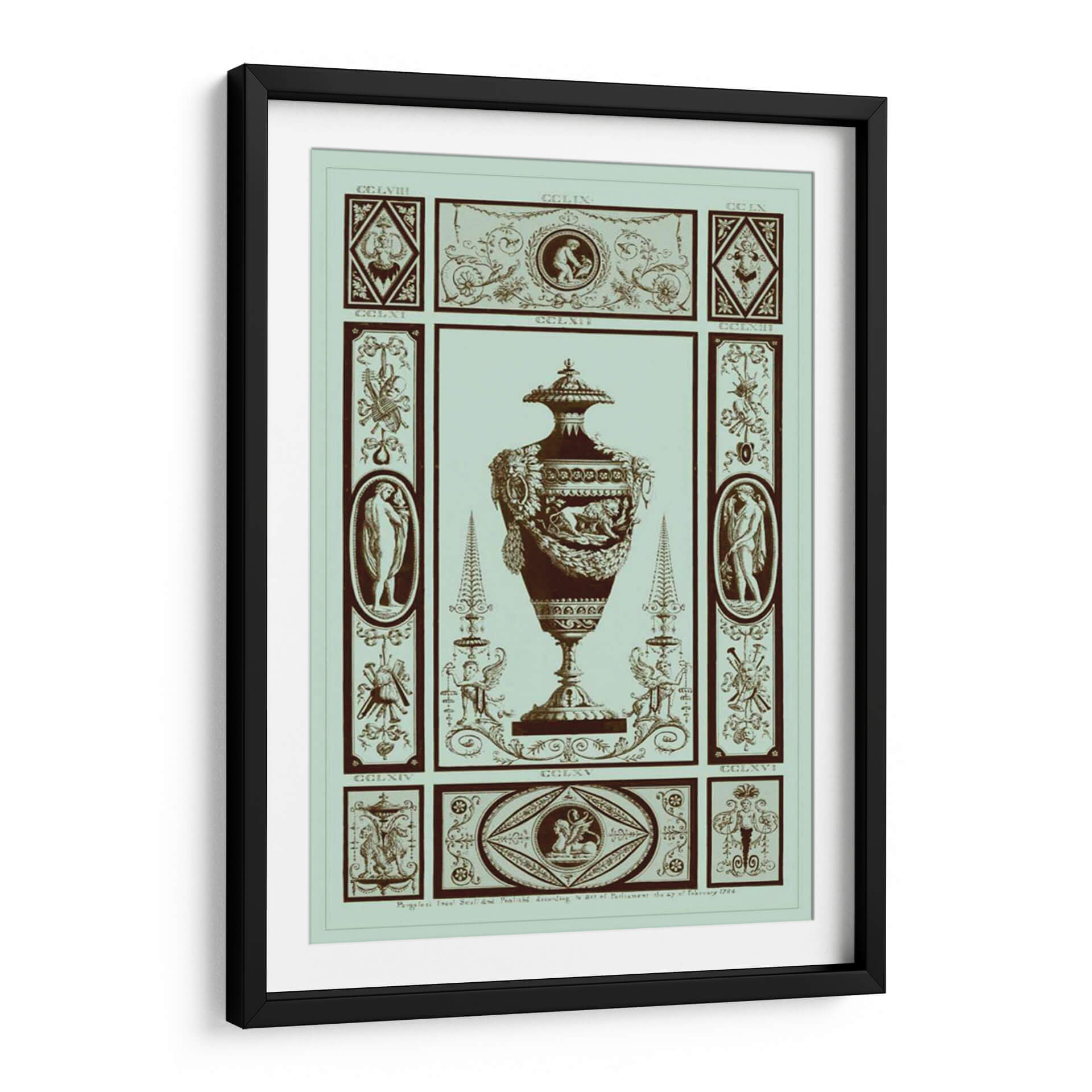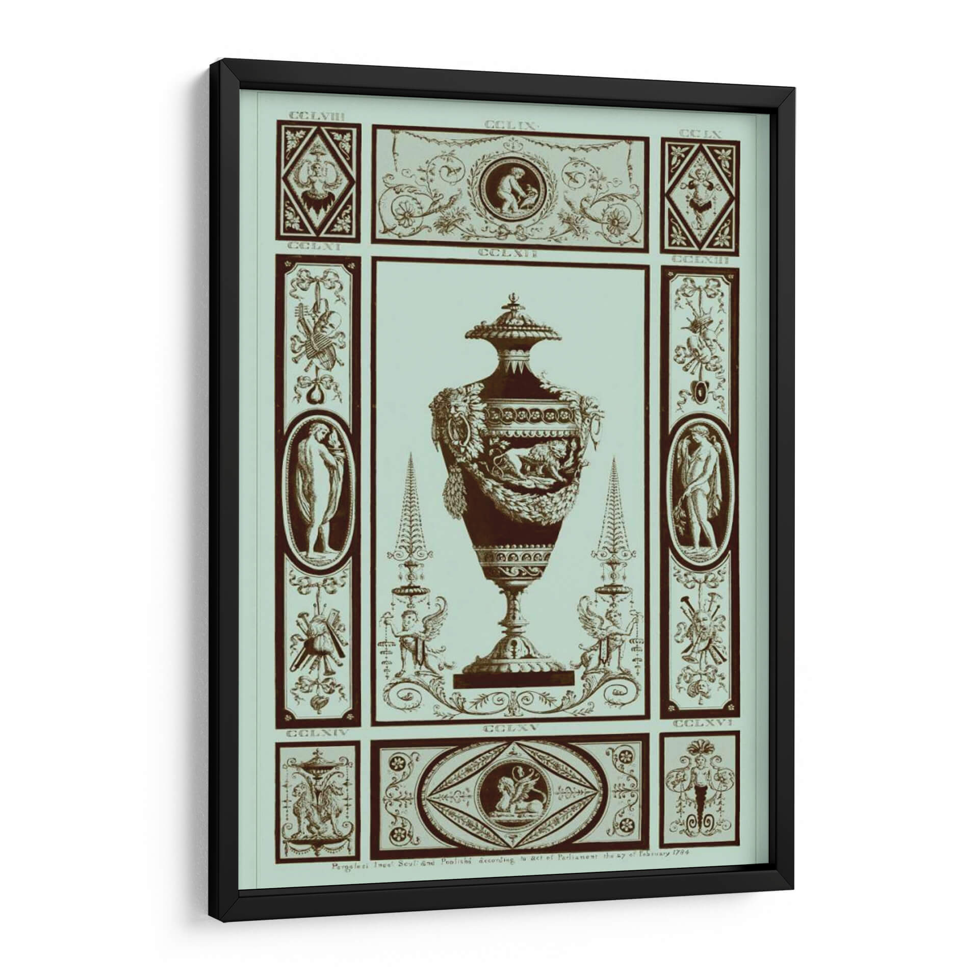 Este cautivador cuadro decorativo, "Pergolesi Urnas En Celadon II", es una pieza que evoca la elegancia y la opulencia del arte clásico. La obra presenta una intrincada composición dominada por una urna ornamentada en el centro, rodeada de detalles que sugieren motivos mitológicos y elementos arquitectónicos. La paleta de colores, en tonos sepia sobre un fondo suave y etéreo, aporta una sensación de antigüedad y sofisticación. Cada elemento, desde las figuras alegóricas en los laterales hasta los delicados adornos que flanquean la urna principal, está representado con una precisión que invita a la contemplación. Este cuadro es ideal para añadir un toque de distinción atemporal a cualquier espacio, ya sea una sala de estar formal, un estudio o un comedor. Su aire de grandeza y su detallada artesanía lo convierten en una elección perfecta para quienes aprecian el arte con historia y un diseño refinado, aportando profundidad y carácter a la decoración de paredes.