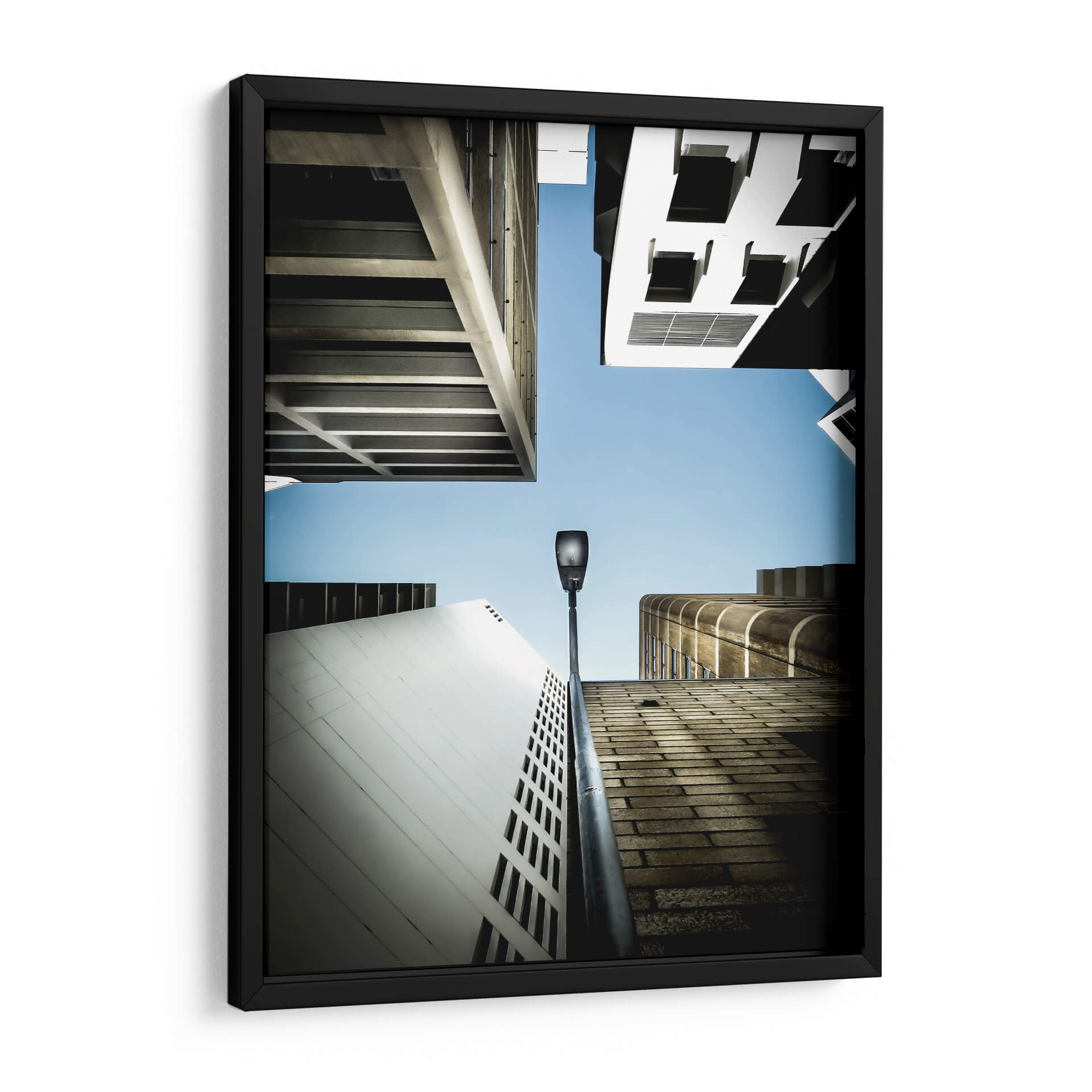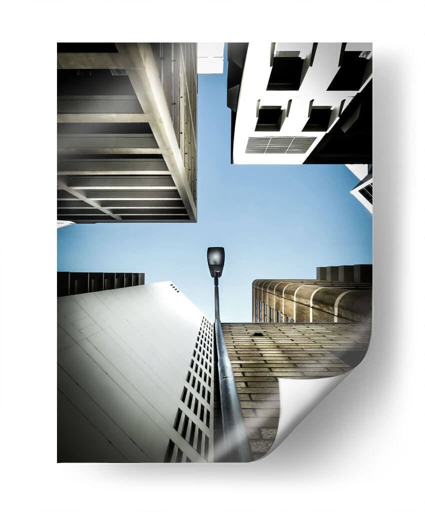 Sumérgete en la arquitectura urbana con "Perspectivas", un cuadro decorativo que captura la majestuosidad de los rascacielos desde un ángulo inusual. Esta obra de arte se centra en la audaz geometría de edificios modernos y la extensión del cielo azul, creando una sensación de inmensidad y modernidad. La paleta de colores, dominada por grises fríos, blancos nítidos y el vibrante azul del cielo, aporta una atmósfera de serenidad y orden, a la vez que evoca la energía de la vida urbana. La composición, con líneas arquitectónicas que convergen y se extienden hacia arriba, invita a la contemplación y ofrece una nueva forma de ver el entorno construido. Ideal para espacios que buscan un toque contemporáneo y sofisticado, este cuadro decorativo es perfecto para salones, oficinas o estudios que deseen una pieza que inspire grandeza y una perspectiva fresca. "Perspectivas" no es solo una imagen, es una invitación a redefinir tu espacio con estilo y audacia.