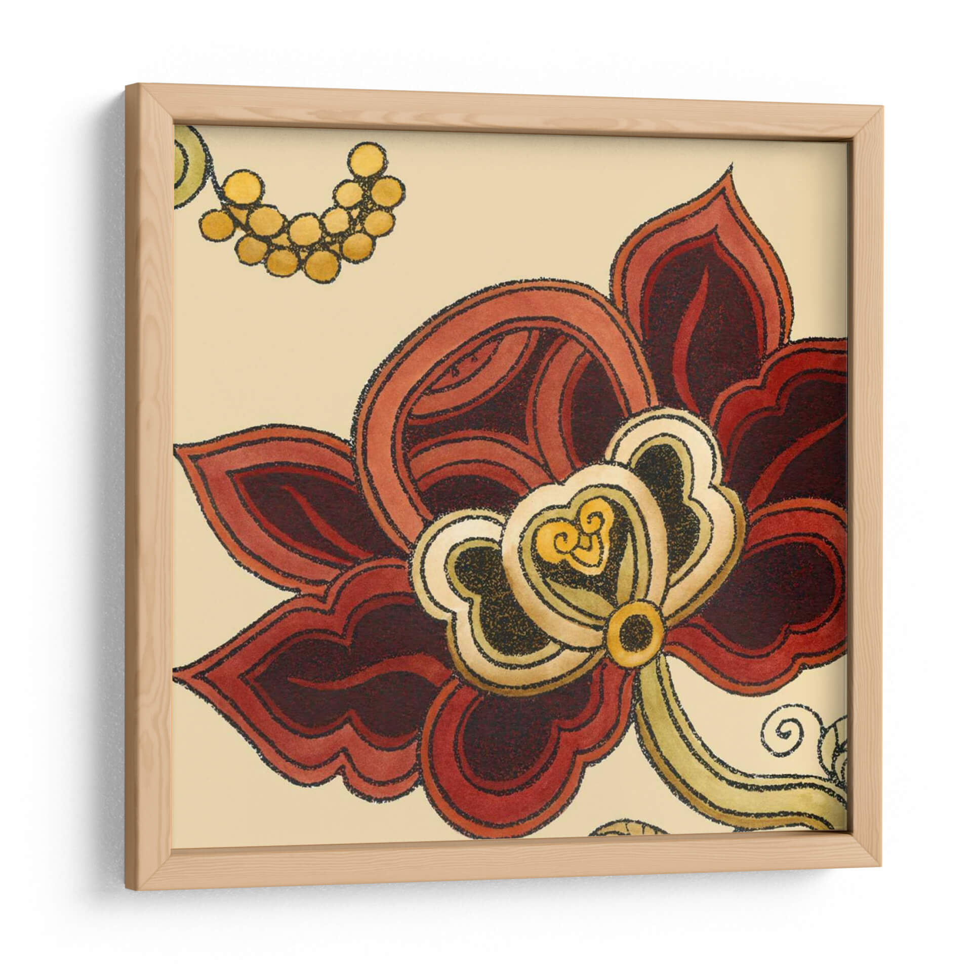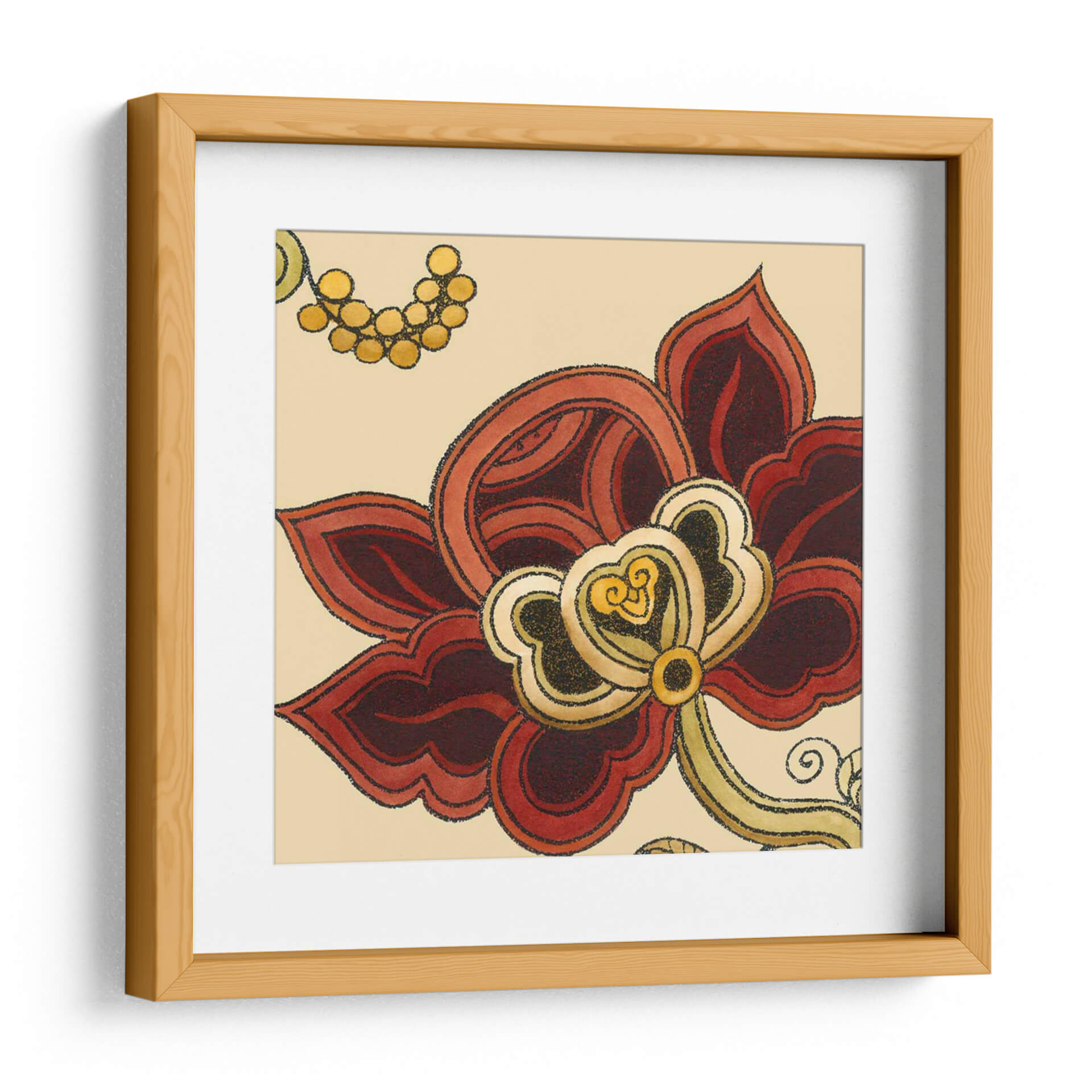 Sumérgete en la cautivadora belleza de "Pimentón II Floral", una obra de arte que fusiona la delicadeza de la naturaleza con un estilo contemporáneo vibrante. Esta pieza presenta un intrincado diseño floral con pétalos en tonos profundos de rojo y burdeos, contrastando con acentos dorados y crema que aportan luz y sofisticación. La composición se centra en una flor estilizada, con contornos definidos y un tratamiento acuoso que le otorga profundidad y movimiento. Pequeños detalles circulares dorados salpican el fondo de color marfil, añadiendo un toque de alegría y dinamismo. El estilo evoca influencias orientales y art déco, creando una atmósfera de elegancia atemporal y energía sutil. Este cuadro decorativo es ideal para añadir un punto focal de color y textura a cualquier estancia, desde una sala de estar moderna hasta un rincón tranquilo de meditación en un dormitorio u oficina. Su rica paleta de colores cálidos y terrosos lo convierte en una opción versátil para diversos estilos de decoración, aportando calidez y un toque artístico distintivo. "Pimentón II Floral" no es solo una obra de arte, es una expresión de vitalidad y refinamiento para tu hogar.