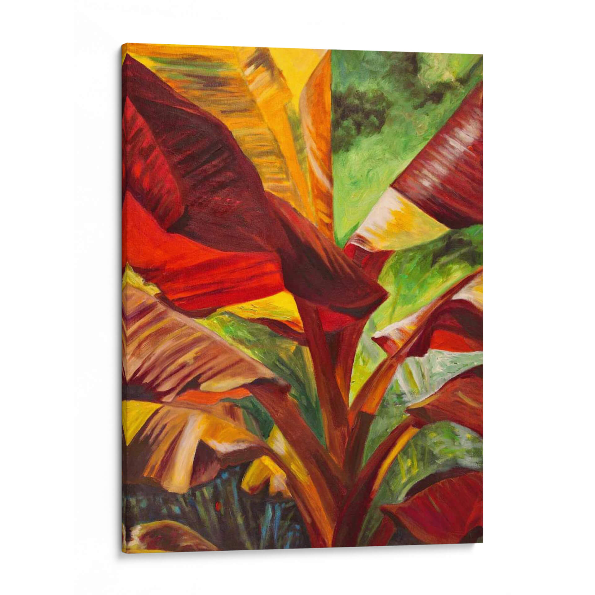 Sumérgete en la exuberante vitalidad de "Plátano Duo I", una cautivadora obra de arte de Suzanne Wilkins que celebra la belleza de la naturaleza con una explosión de colores vibrantes. Esta pieza visualmente impactante presenta un primer plano dinámico de hojas de plátano, representadas con pinceladas audaces y una rica paleta que transita del profundo carmesí y ocre a vibrantes amarillos y verdes frondosos. La composición se centra en las formas curvas y texturas de las hojas, creando una sensación de movimiento y profundidad que atrae la mirada del espectador. La atmósfera general es de calidez tropical y energía natural, ideal para infundir vida y carácter en cualquier espacio. "Plátano Duo I" es una elección perfecta para aquellos que buscan añadir un toque de arte botánico contemporáneo a su hogar u oficina, ya sea en una sala de estar moderna, un comedor acogedor o un estudio creativo. Su estilo audaz y el uso magistral del color lo convierten en un punto focal que inspira alegría y vitalidad, transformando cualquier pared en una ventana a un paraíso exuberante. Este cuadro decorativo contemporáneo es una invitación a experimentar la belleza del mundo natural a través de una perspectiva artística única y apasionada.