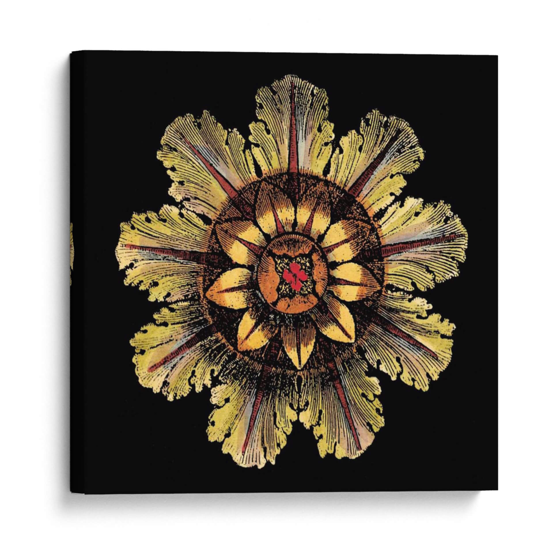 Sumérgete en la elegancia atemporal de "Roseta De Negro IV", una obra de arte cautivadora del artista Da Carlo Antonini. Este cuadro decorativo presenta un intrincado diseño floral estilizado, con pétalos radiantes en tonos dorados y amarillos que emanan de un centro vibrante, acentuado por sutiles toques de rojo y marrón. El detallado grabado lineal y la paleta de colores cálidos contrastan de manera exquisita con el fondo negro profundo, creando una atmósfera de sofisticación y misterio. La composición simétrica y la estética reminiscent a los grabados botánicos antiguos confieren a esta pieza una sensación de orden y belleza natural refinada. "Roseta De Negro IV" es ideal para añadir un punto focal de interés visual a cualquier espacio, ya sea una sala de estar moderna, un estudio elegante o un dormitorio sereno. Su diseño versátil se adapta a una variedad de estilos decorativos, desde el clásico hasta el contemporáneo, aportando un toque de distinción y una energía sutil. Transforma tu hogar u oficina con este impresionante cuadro decorativo, una pieza que celebra la complejidad y la belleza de la naturaleza con un toque artístico único. Descubre la armonía y el detalle en cada trazo, invitando a la contemplación y al aprecio por el arte.