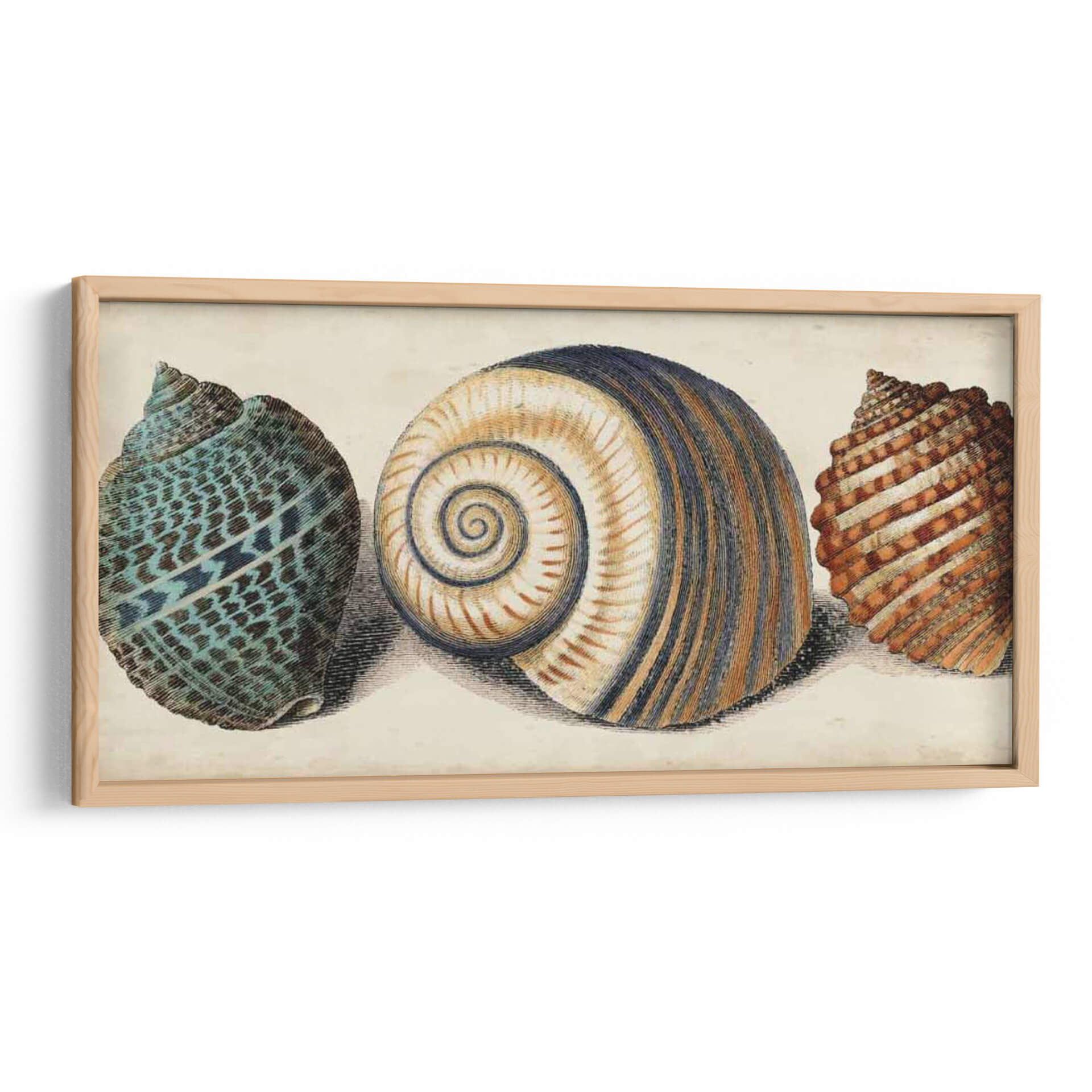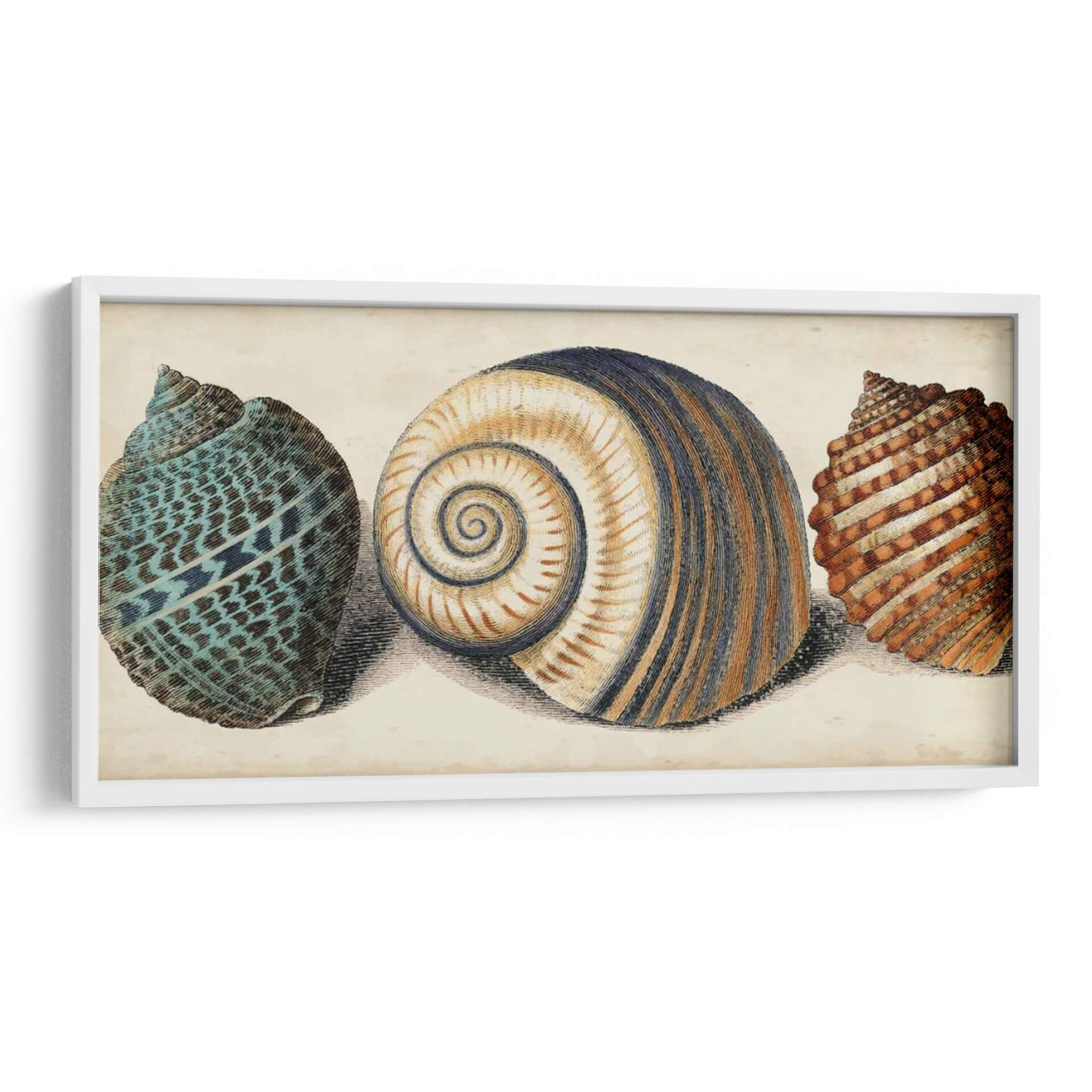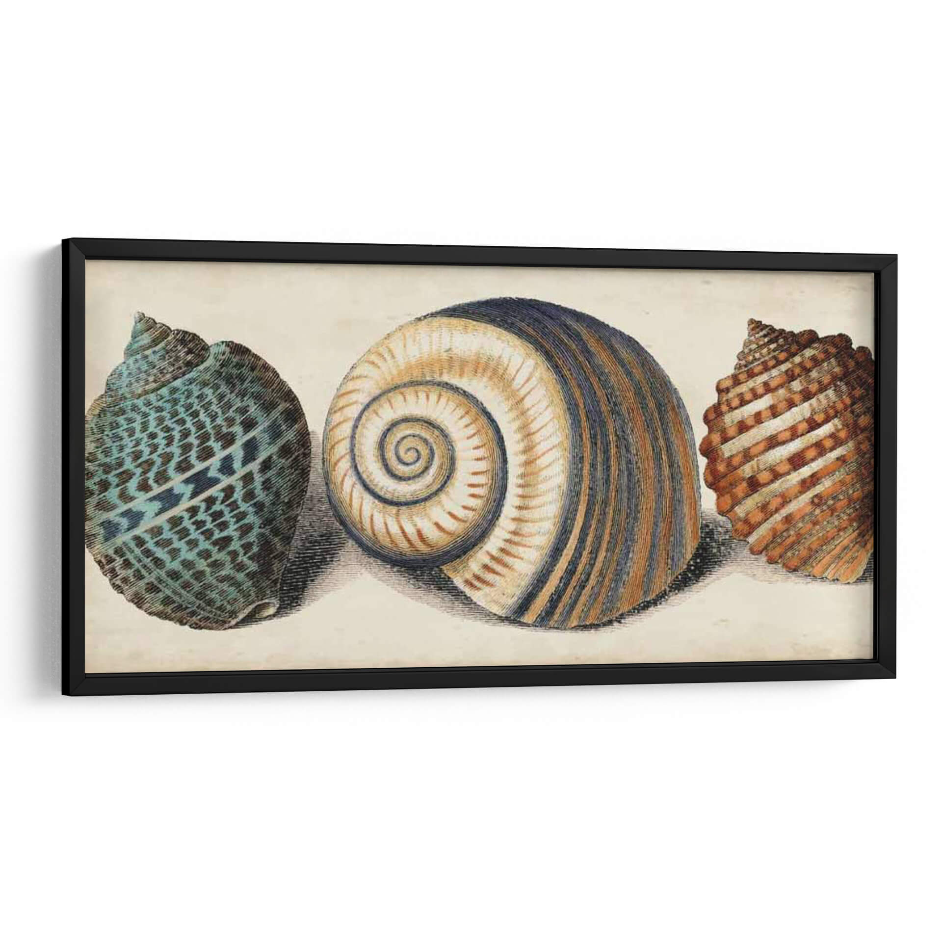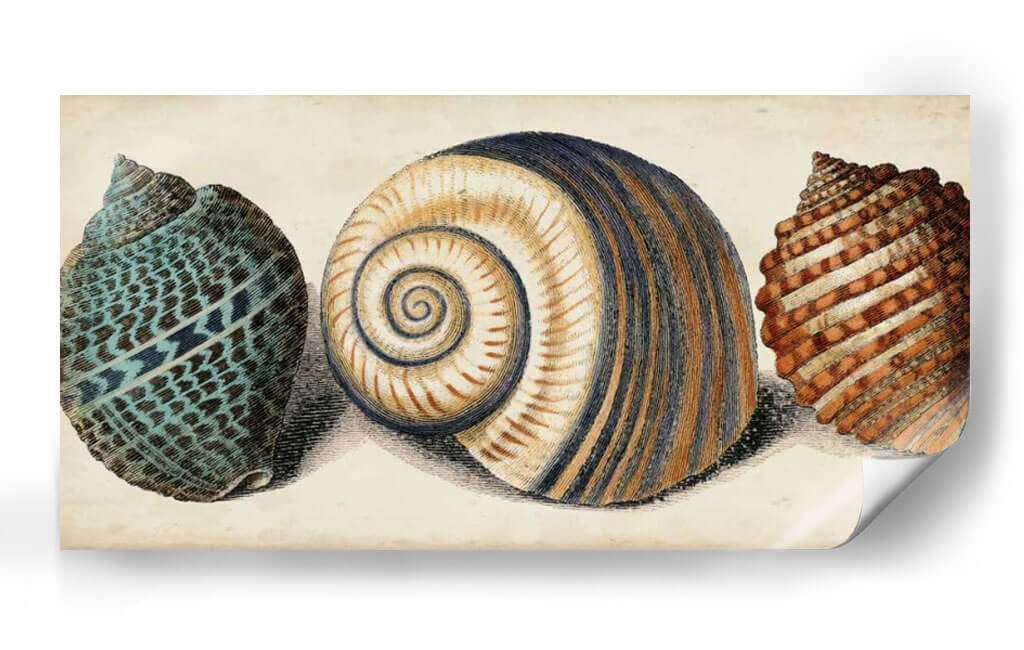Sumérgete en la belleza natural con nuestro cuadro decorativo "Shell Trio I". Esta obra de arte, creada por Vision Studio, presenta un trío de conchas marinas detalladas, cada una con su propia textura y patrón único. La concha central, con sus armoniosas espirales en tonos tierra y azul marino, se complementa a la perfección con la vibrante concha turquesa a la izquierda y la concha de tonalidades anaranjadas a la derecha. La paleta de colores, suave y terrosa, evoca una sensación de calma y conexión con el océano, haciendo de este cuadro una pieza ideal para añadir serenidad a cualquier espacio. Su estilo, que recuerda a las ilustraciones científicas clásicas pero con un toque contemporáneo, lo convierte en un punto focal elegante para salones, dormitorios o estudios. Imagina la tranquilidad del mar entrando en tu hogar con este exquisito cuadro decorativo, una celebración de las maravillas naturales que aportará un toque de sofisticación y relajación a tu decoración.
