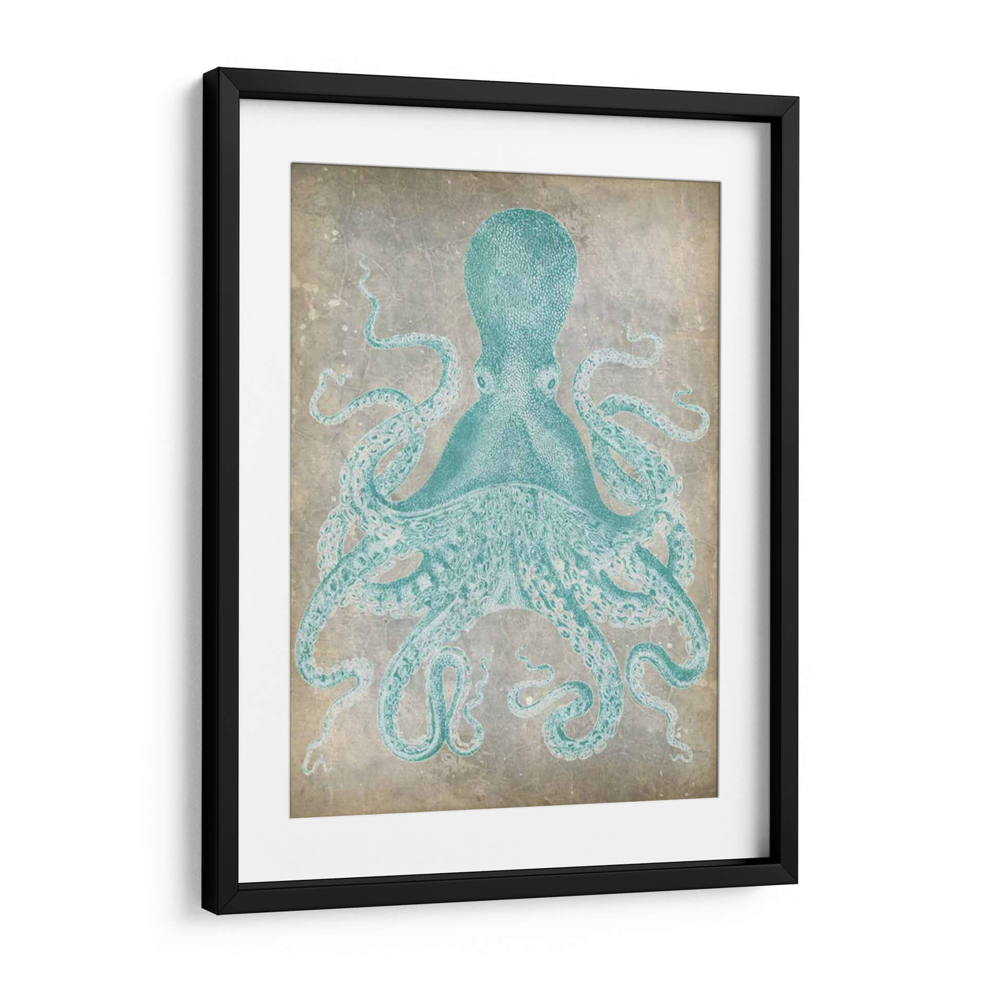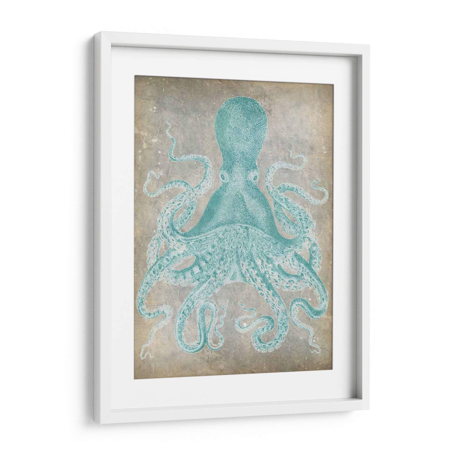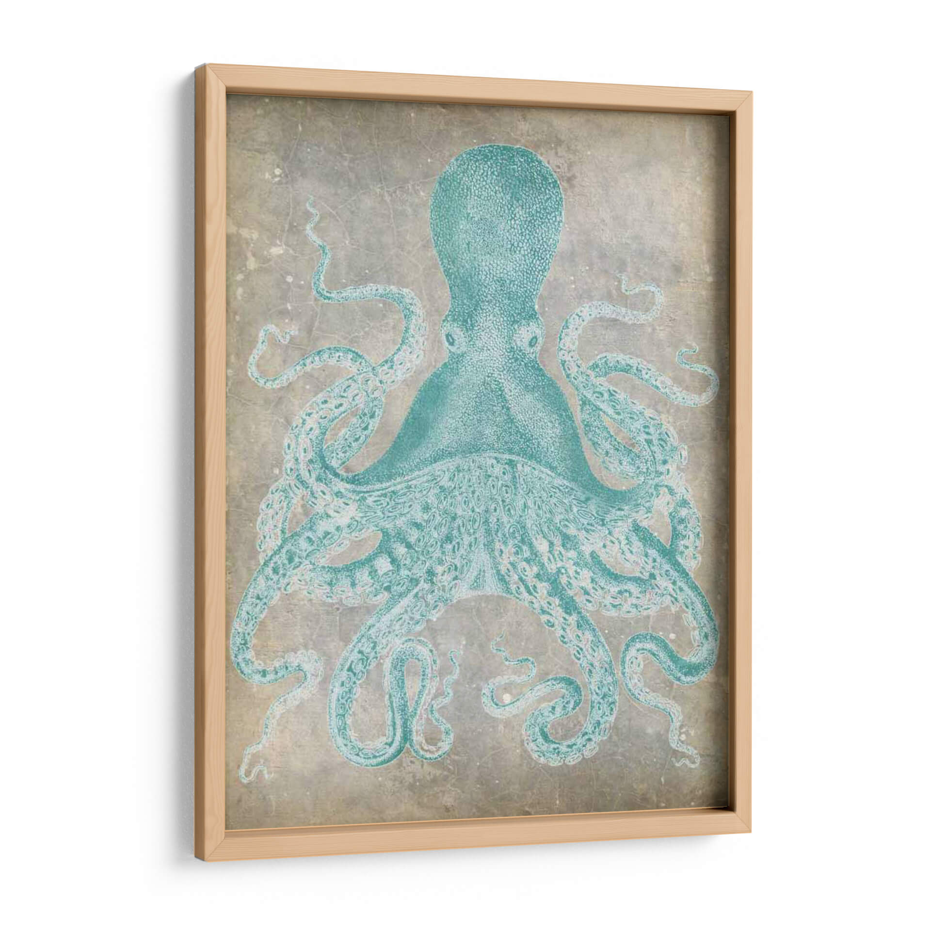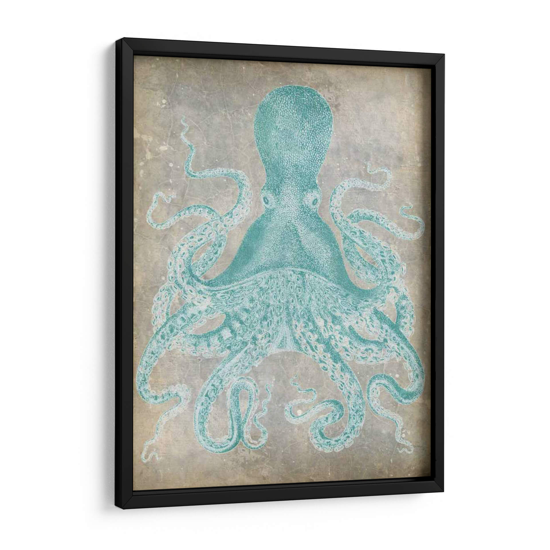 Sumérgete en la serena belleza marina con "Spa Octopus I", una obra de arte digital que captura la majestuosidad del pulpo en un tono turquesa vibrante sobre un fondo texturizado que evoca la historia y la calma. La composición se centra en la figura detallada del pulpo, cuyas tentáculos se extienden con gracia, creando una sensación de movimiento y fluidez. La paleta de colores, dominada por el azul verdoso del cefalópodo y los tonos neutros y desgastados del fondo, confiere a la pieza una atmósfera de tranquilidad y sofisticación. Este cuadro decorativo es una elección perfecta para quienes buscan añadir un toque de naturaleza marina con un estilo contemporáneo y ligeramente vintage a su hogar u oficina. Imagina esta pieza en un salón moderno, un dormitorio que invite al descanso o incluso en un baño con temática costera, donde su presencia aportará un elemento de fascinación y paz. "Spa Octopus I" no es solo una decoración, es una ventana a la tranquilidad del océano, diseñada para inspirar y calmar, convirtiendo cualquier espacio en un refugio de serenidad.