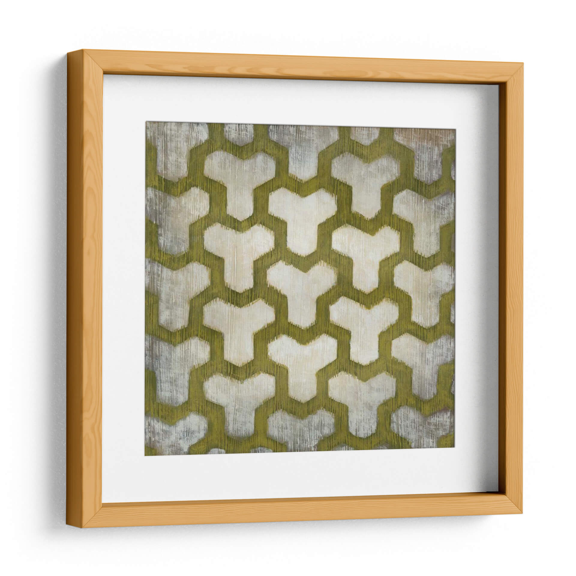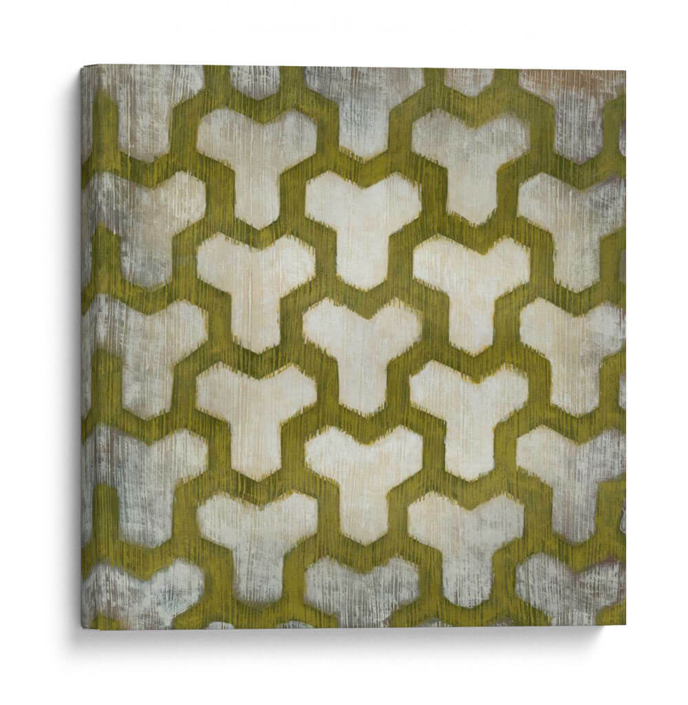 Sumérgete en la cautivadora armonía visual de "Spectrum Simetría IV", una obra de arte abstracto que redefine la elegancia geométrica. Esta pieza se caracteriza por su patrón repetitivo de formas interconectadas que evocan una sensación de orden y fluidez. Los colores, dominados por un verde musgo terroso y un fondo cremoso con textura, crean una atmósfera serena y a la vez intrigante. La técnica sugiere una aplicación de pintura con pinceladas visibles, añadiendo profundidad y un toque artesanal. La composición simétrica y la repetición del motivo la convierten en un elemento visual dinámico pero equilibrado, ideal para espacios que buscan un toque de sofisticación contemporánea sin sacrificar la calma. Este cuadro decorativo es perfecto para añadir un punto focal interesante a salas de estar, oficinas o incluso dormitorios, fusionando arte moderno con un estilo orgánico. Su diseño versátil se adapta a diversas decoraciones, desde la más minimalista hasta la más ecléctica, aportando un aire de tranquilidad y orden.