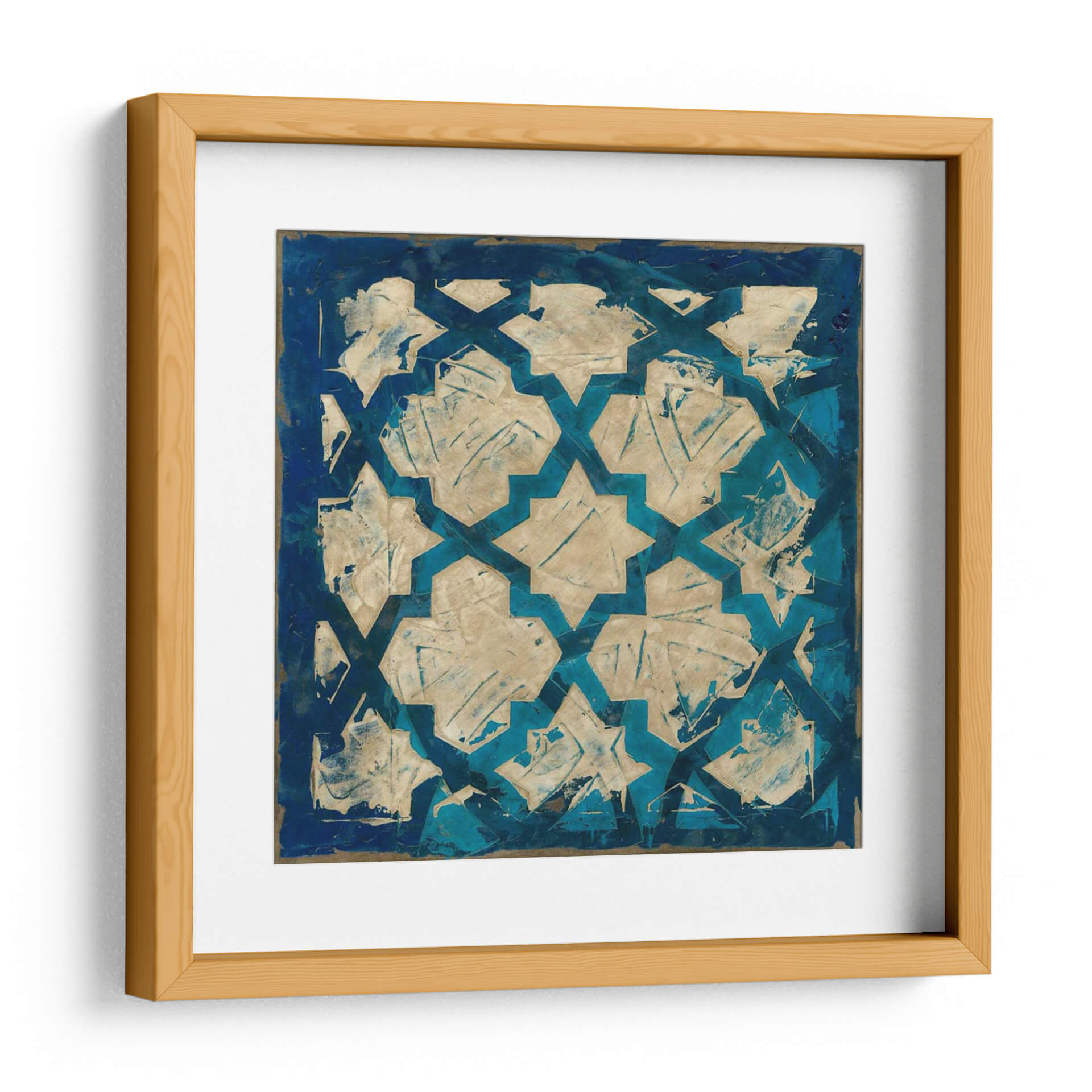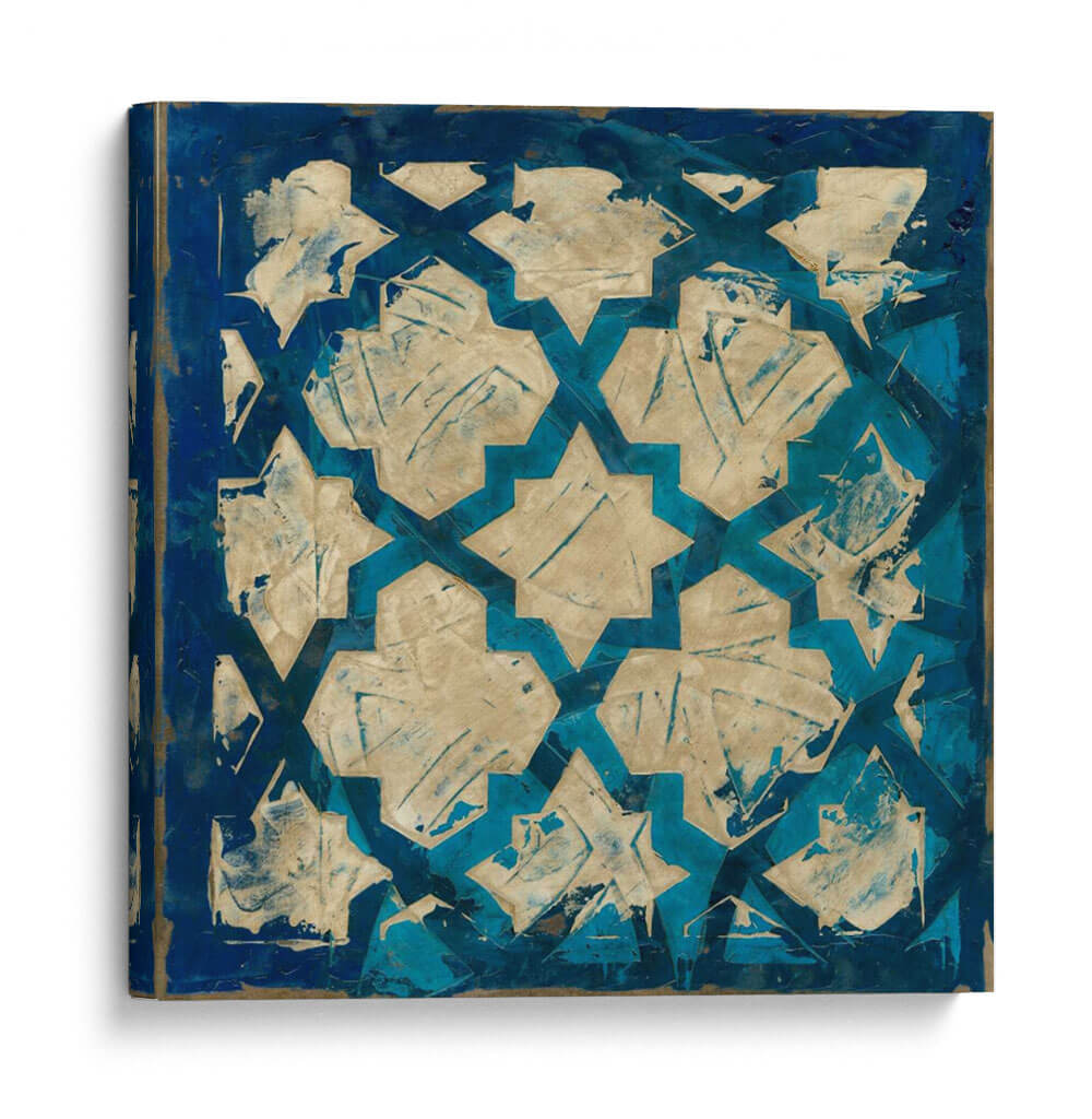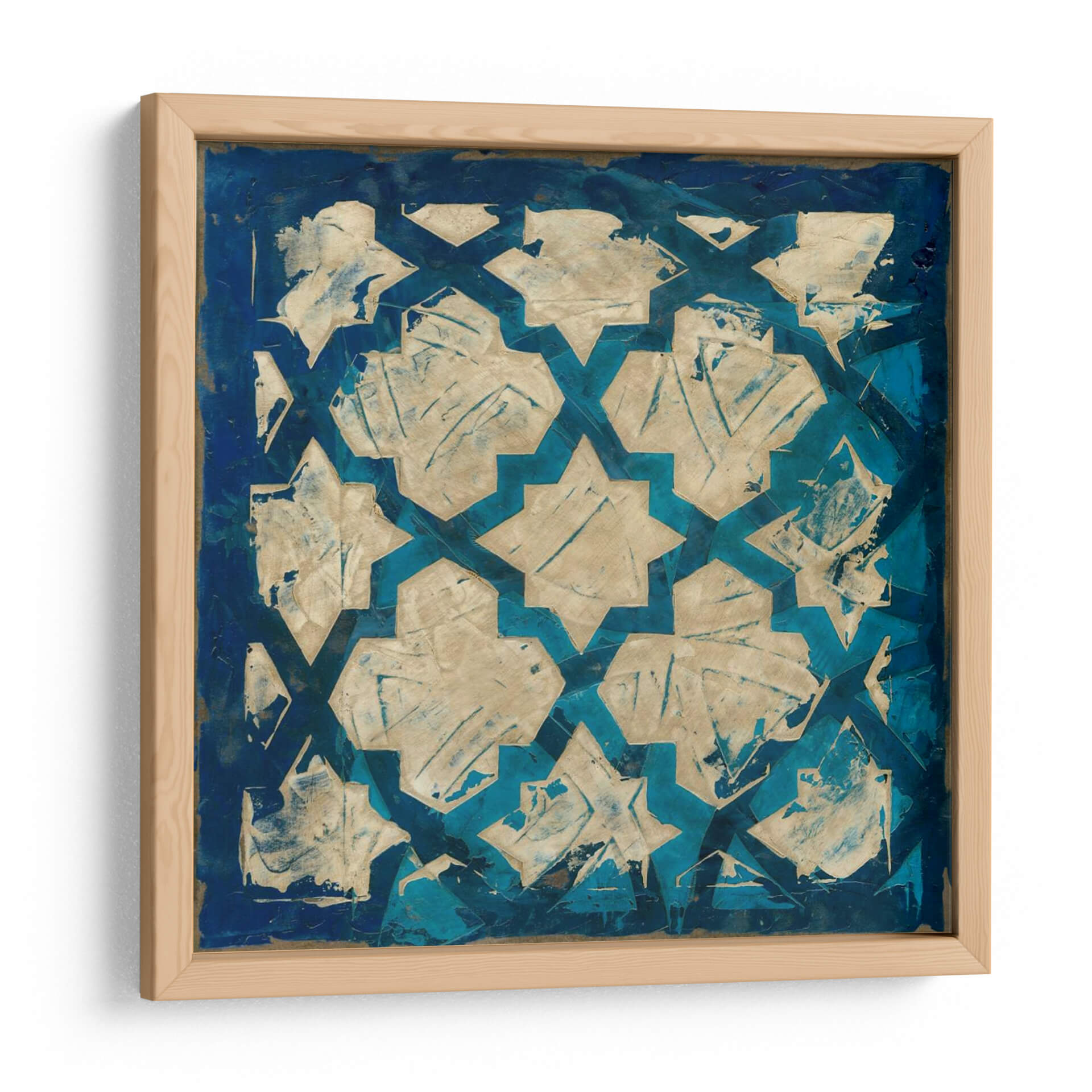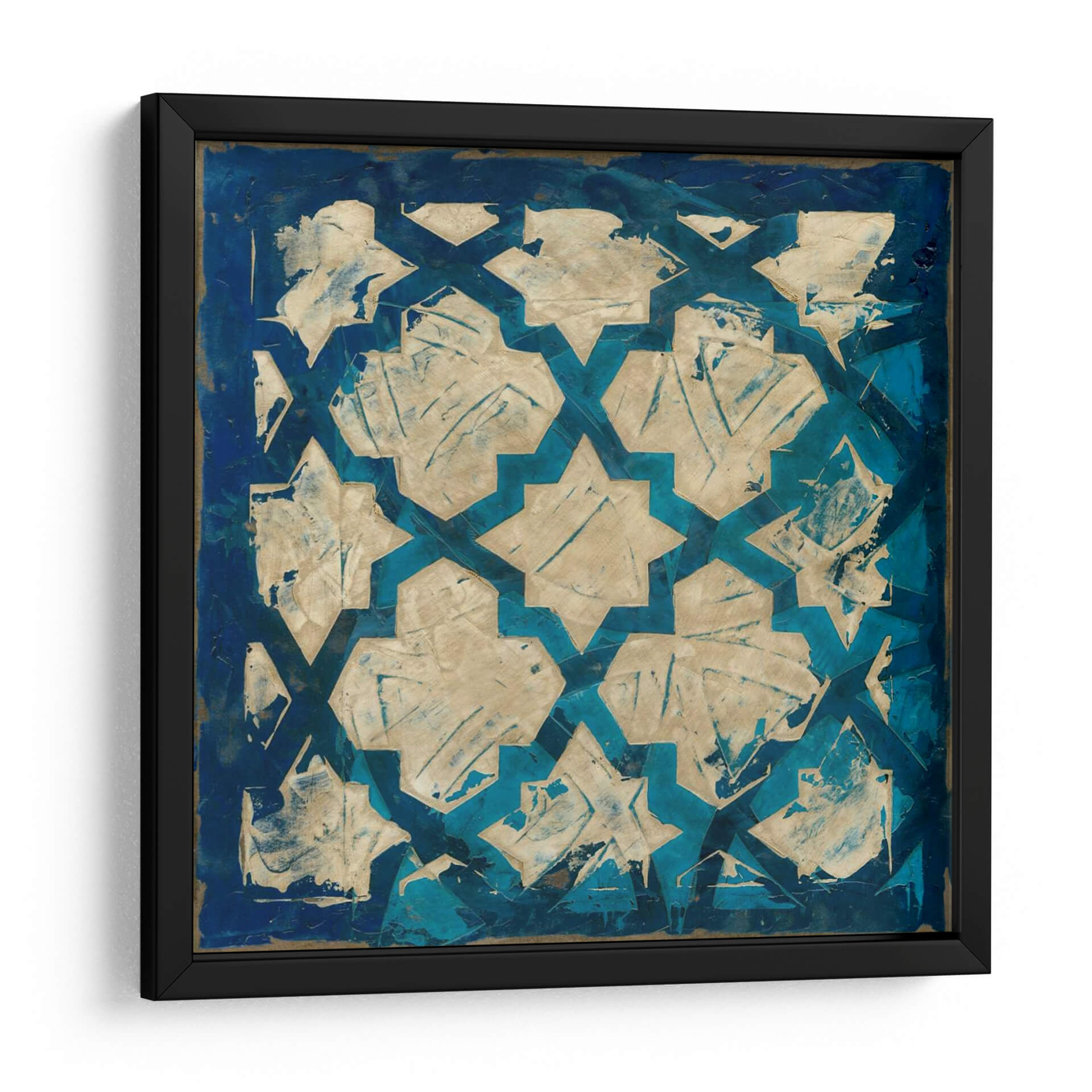 Sumérgete en la riqueza visual de "Stained Glass I Indigo", una obra de arte contemporáneo de Megan Meagher que evoca la belleza intrincada de los vitrales y los patrones geométricos islámicos. Este cuadro decorativo presenta un diseño hipnótico donde las formas estrelladas de ocho puntas se entrelazan sobre un vibrante fondo azul índigo y turquesa. La textura añade una capa de profundidad, con pinceladas que sugieren un acabado envejecido o desgastado, aportando carácter y calidez. Los tonos profundos de azul crean una atmósfera de serenidad y sofisticación, mientras que las áreas de color pálido, con sus sutiles marcas y variaciones tonales, capturan la luz y añaden interés visual. Ideal para espacios que buscan un toque de elegancia y un punto de conversación, este arte mural es perfecto para salones modernos, estudios o pasillos donde se desee infundir calma y un sentido de maravilla.