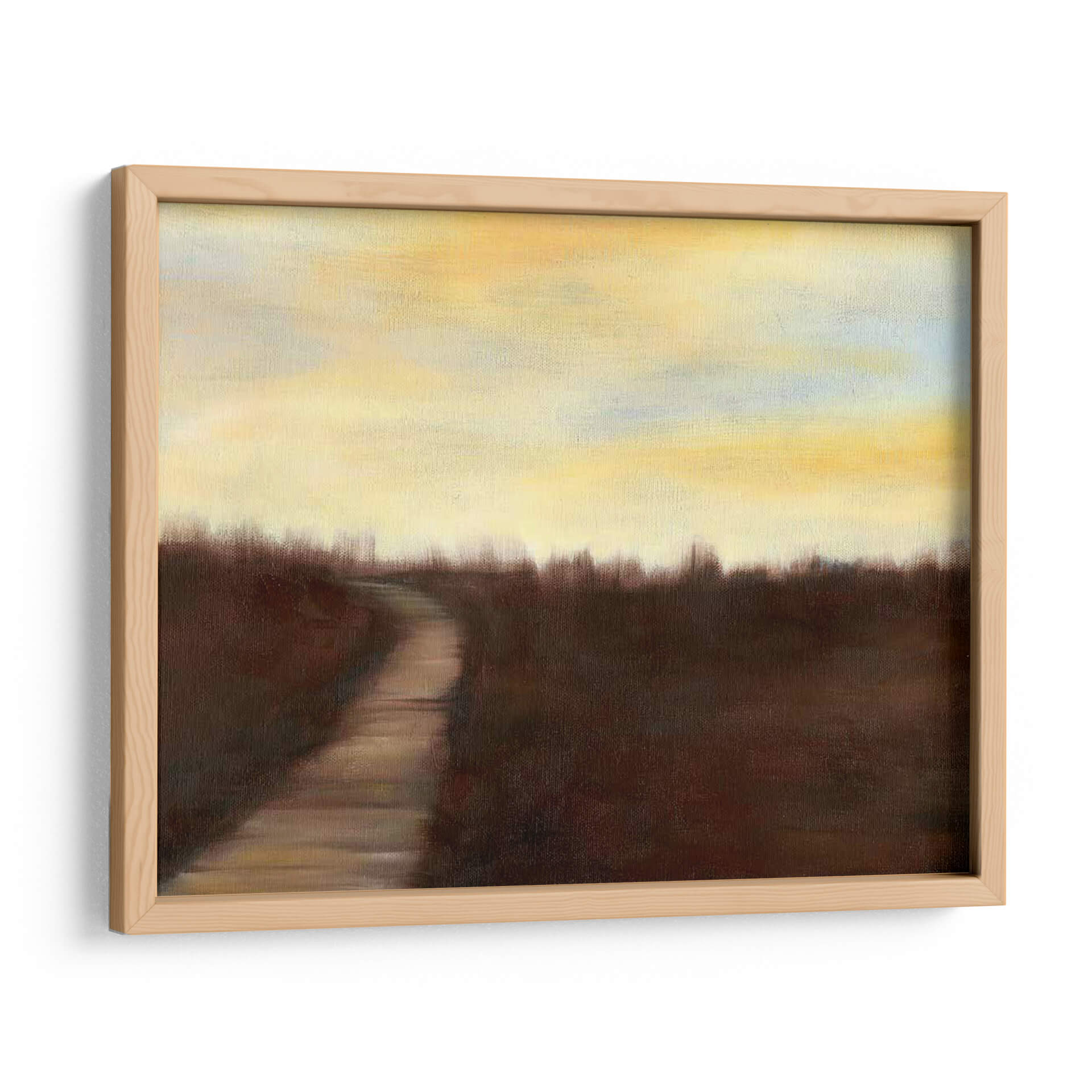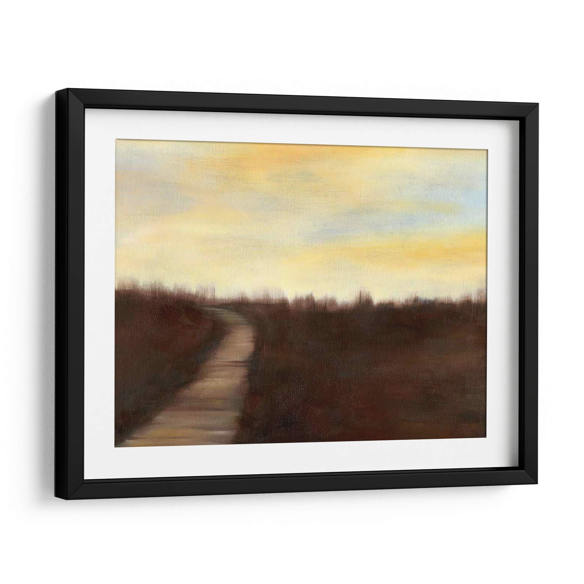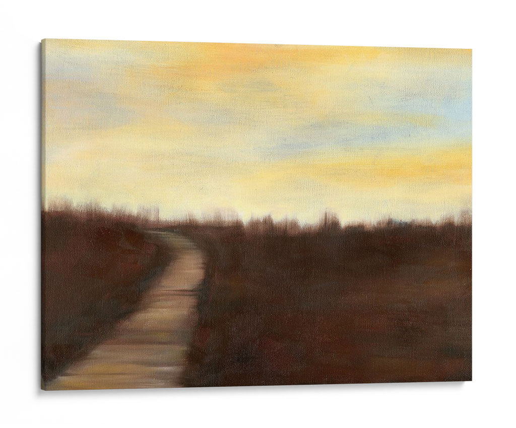 Sumérgete en la serena belleza de "Sunrise Stroll II" de Jennifer Goldberger, una obra de arte que captura la esencia de un amanecer tranquilo y un camino que se adentra en la naturaleza. Los tonos cálidos y dorados del cielo se funden con las sombras profundas de un paisaje terrenal, creando una atmósfera de paz y contemplación. La pincelada suelta y evocadora de Goldberger da vida a un sendero sinuoso que invita a la reflexión, mientras que las siluetas de los árboles en la distancia añaden un toque de misterio a la escena. Este cuadro decorativo es perfecto para infundir calma en cualquier espacio, ya sea en tu sala de estar, dormitorio o estudio. Su estilo contemporáneo y su paleta de colores versátil lo convierten en una adición excepcional a una decoración moderna o rústica. Imagina la luz suave de este amanecer bañando tu hogar, trayendo consigo una sensación de renovación y serenidad. "Sunrise Stroll II" no es solo una pieza de arte, sino una invitación a pausar y disfrutar de la belleza efímera de un nuevo día, transformando tu entorno en un refugio de tranquilidad y estilo.