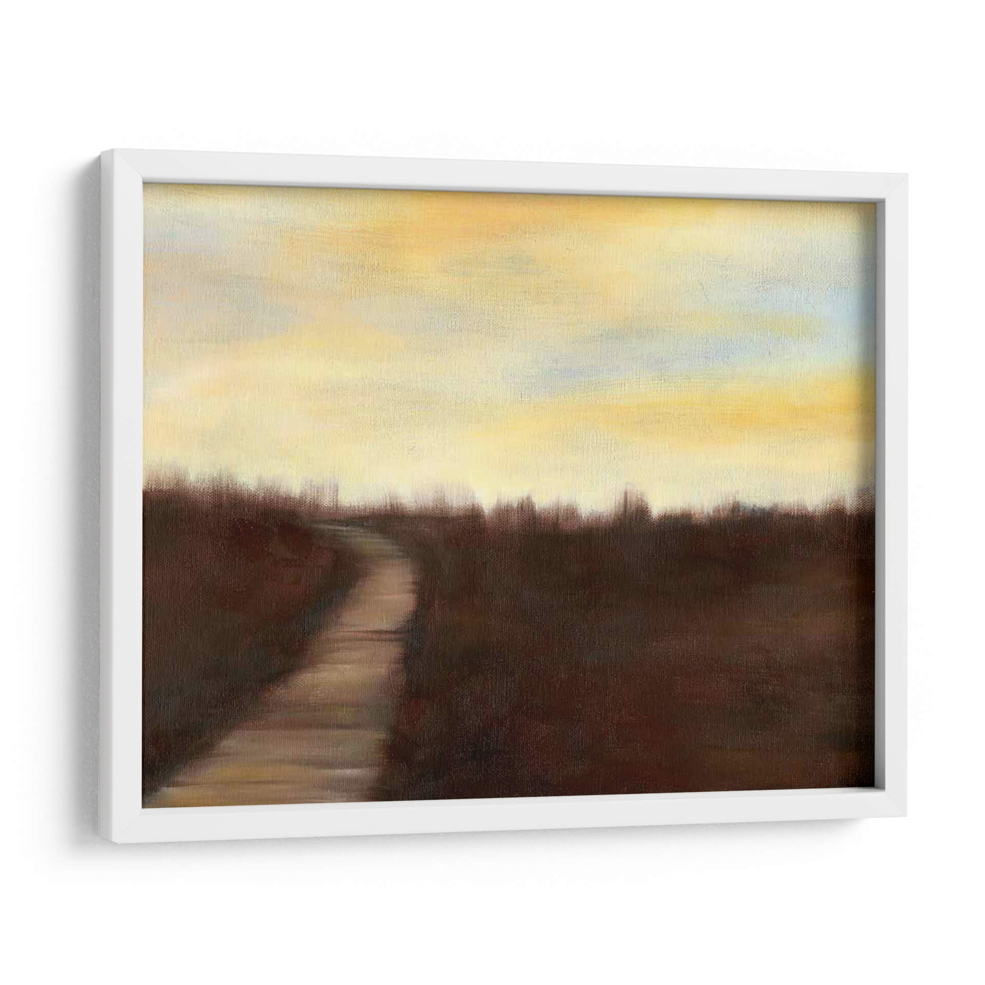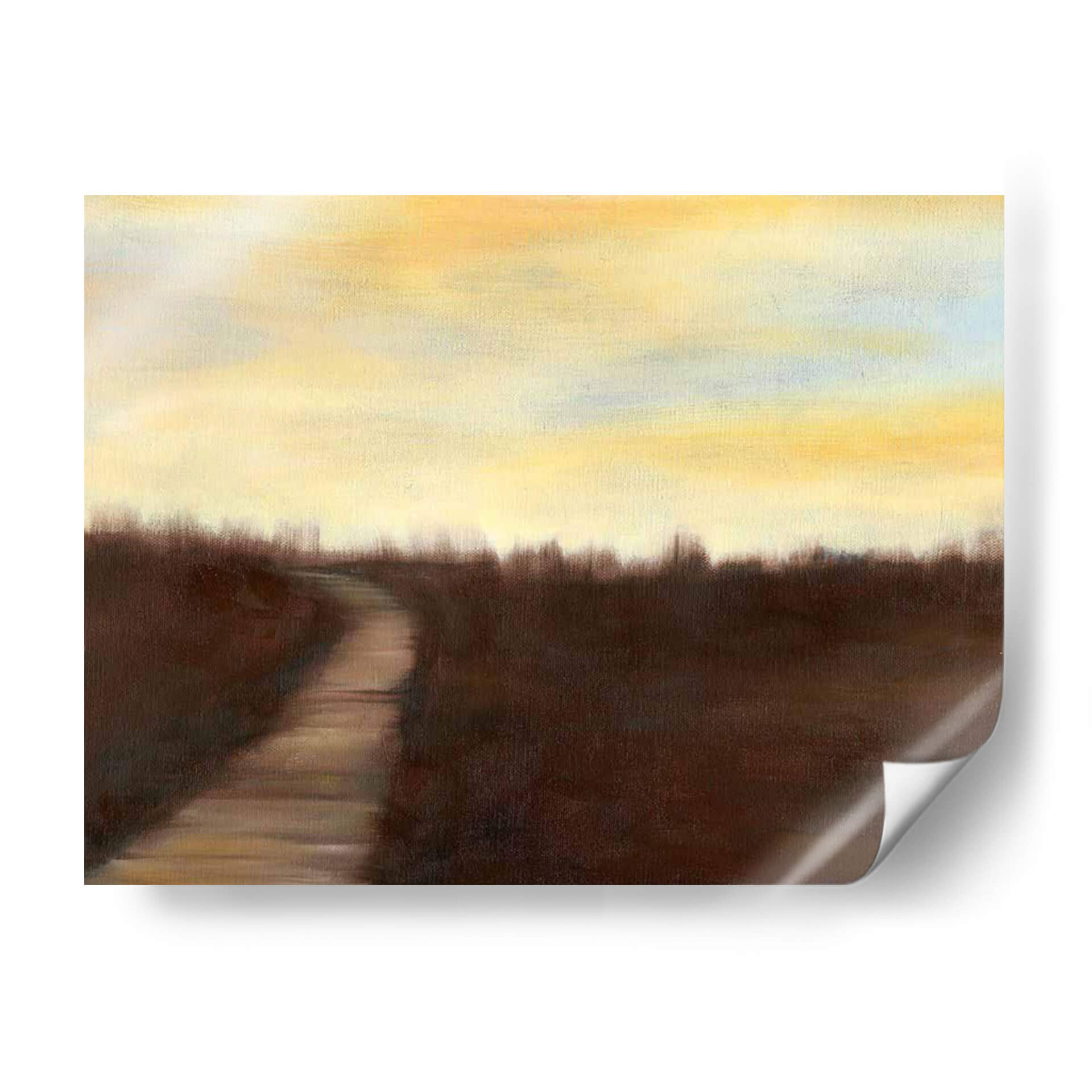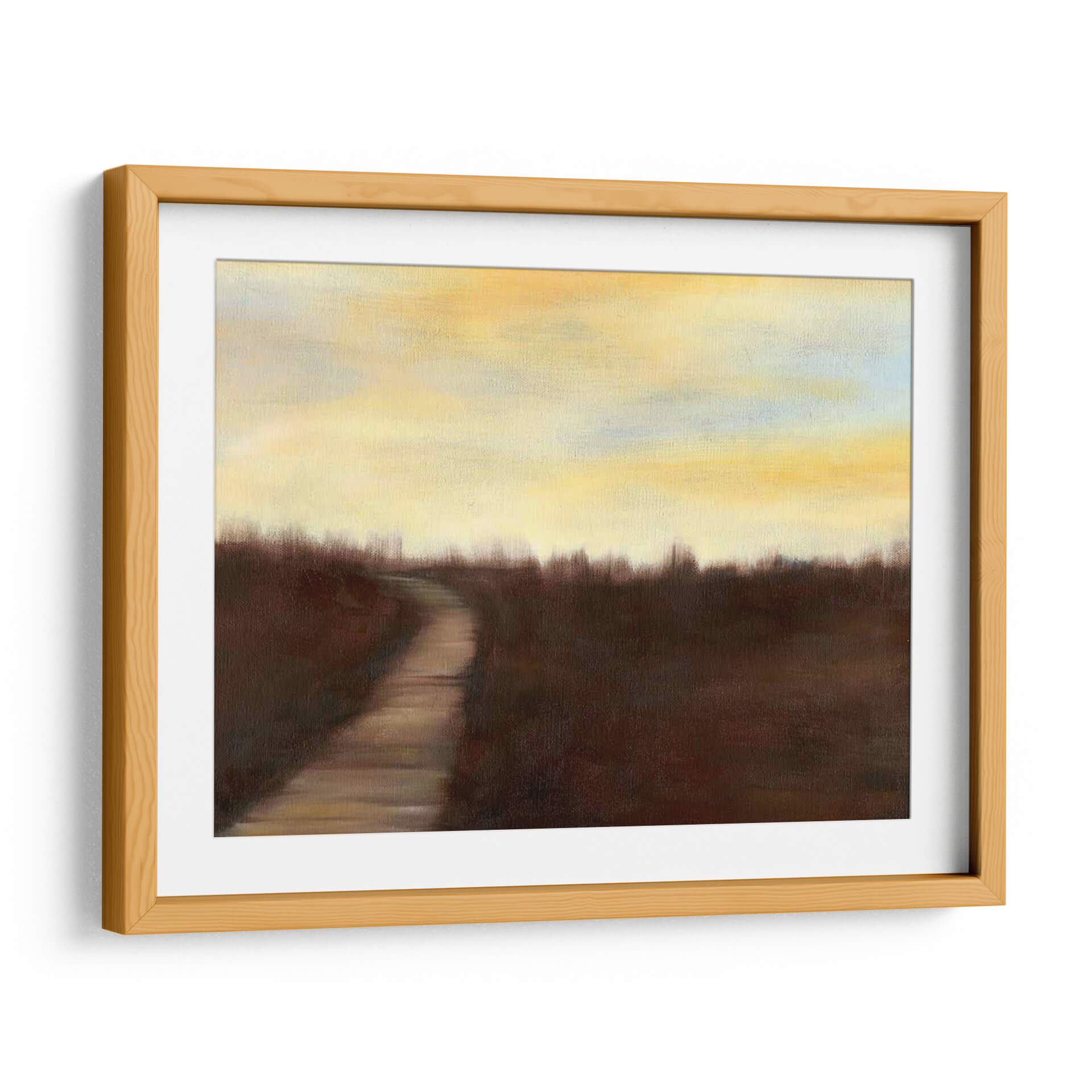 Sumérgete en la serena belleza de "Sunrise Stroll II" de Jennifer Goldberger, una obra de arte que captura la esencia de un amanecer tranquilo y un camino que se adentra en la naturaleza. Los tonos cálidos y dorados del cielo se funden con las sombras profundas de un paisaje terrenal, creando una atmósfera de paz y contemplación. La pincelada suelta y evocadora de Goldberger da vida a un sendero sinuoso que invita a la reflexión, mientras que las siluetas de los árboles en la distancia añaden un toque de misterio a la escena. Este cuadro decorativo es perfecto para infundir calma en cualquier espacio, ya sea en tu sala de estar, dormitorio o estudio. Su estilo contemporáneo y su paleta de colores versátil lo convierten en una adición excepcional a una decoración moderna o rústica. Imagina la luz suave de este amanecer bañando tu hogar, trayendo consigo una sensación de renovación y serenidad. "Sunrise Stroll II" no es solo una pieza de arte, sino una invitación a pausar y disfrutar de la belleza efímera de un nuevo día, transformando tu entorno en un refugio de tranquilidad y estilo.