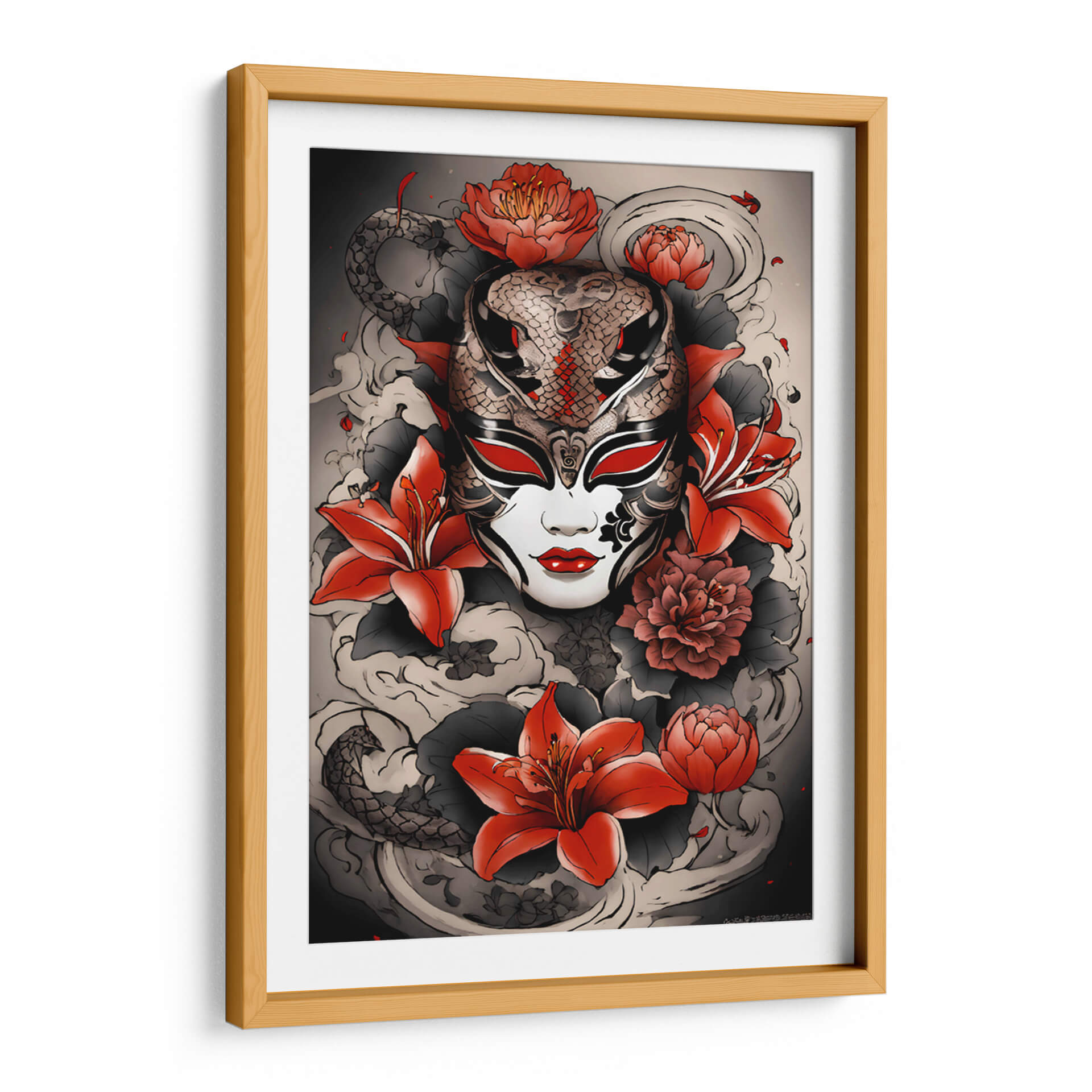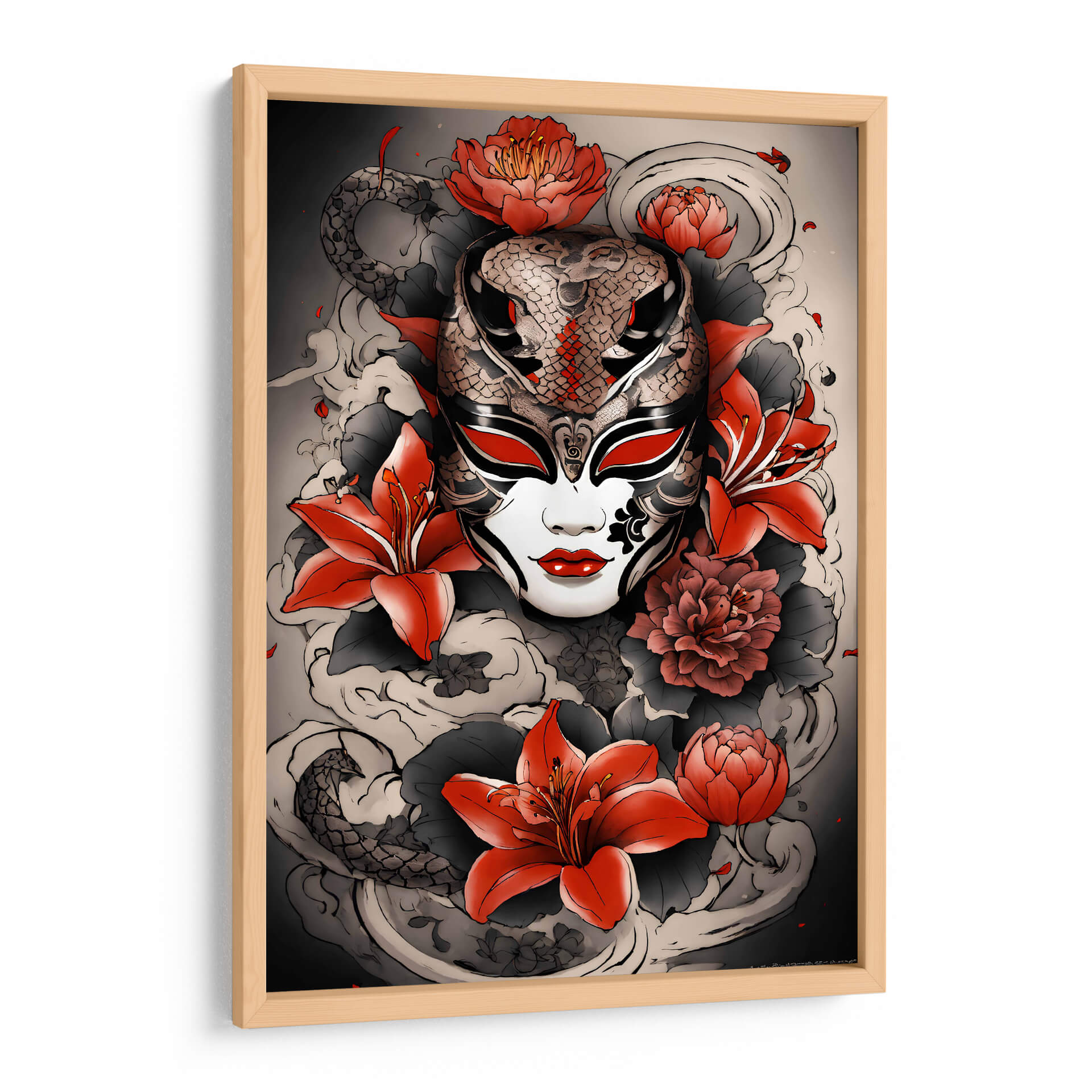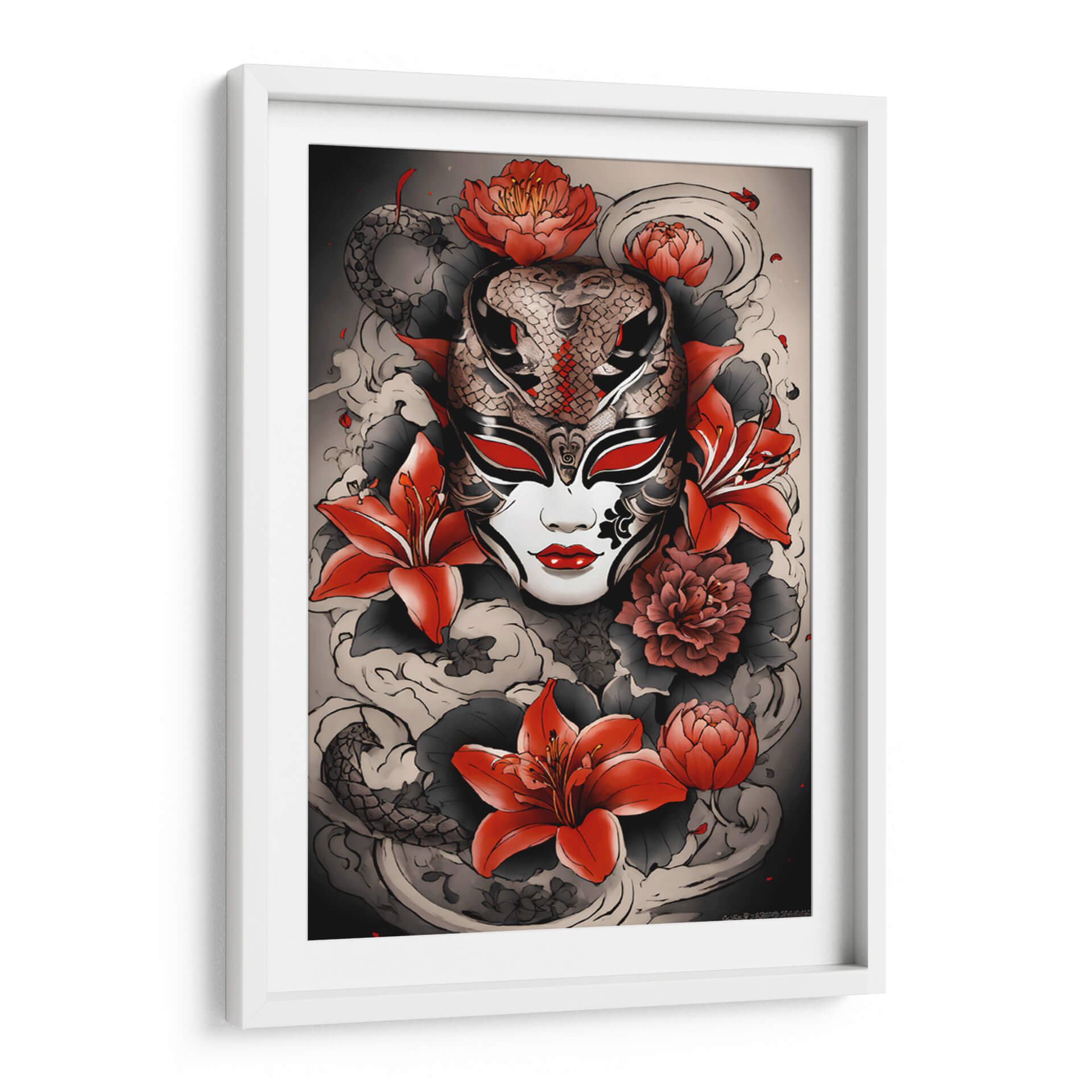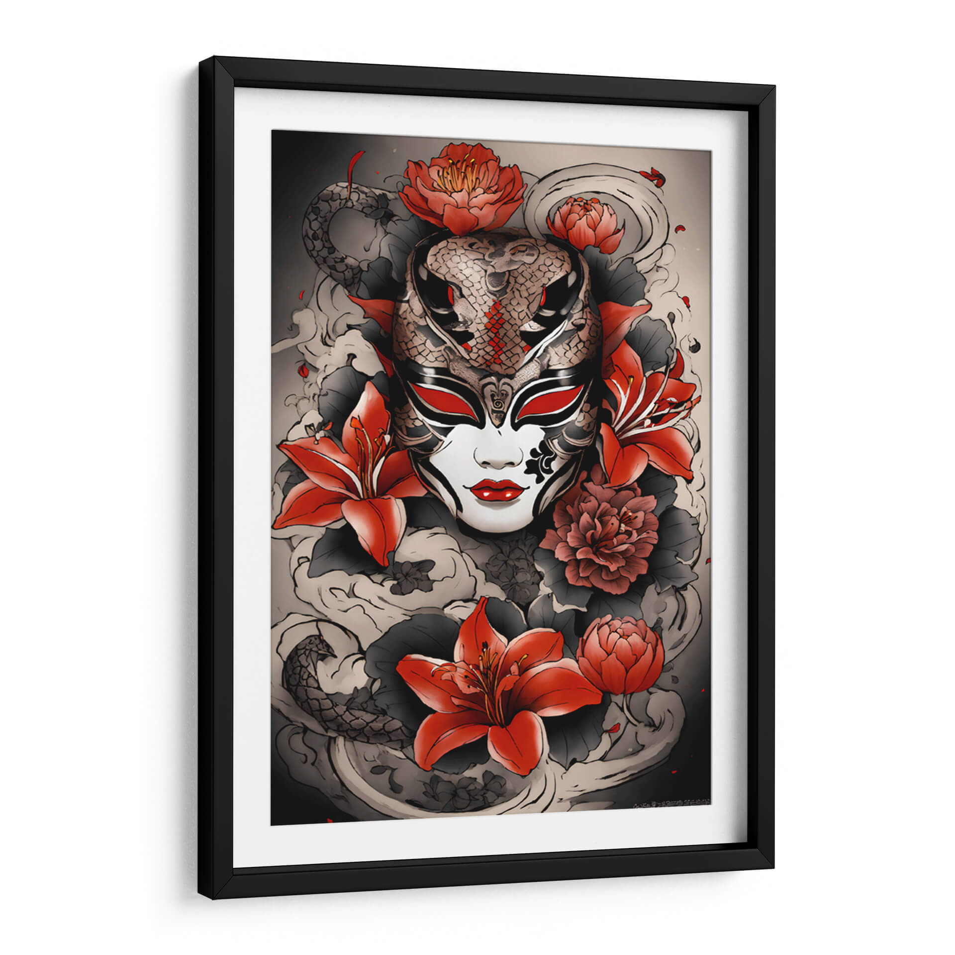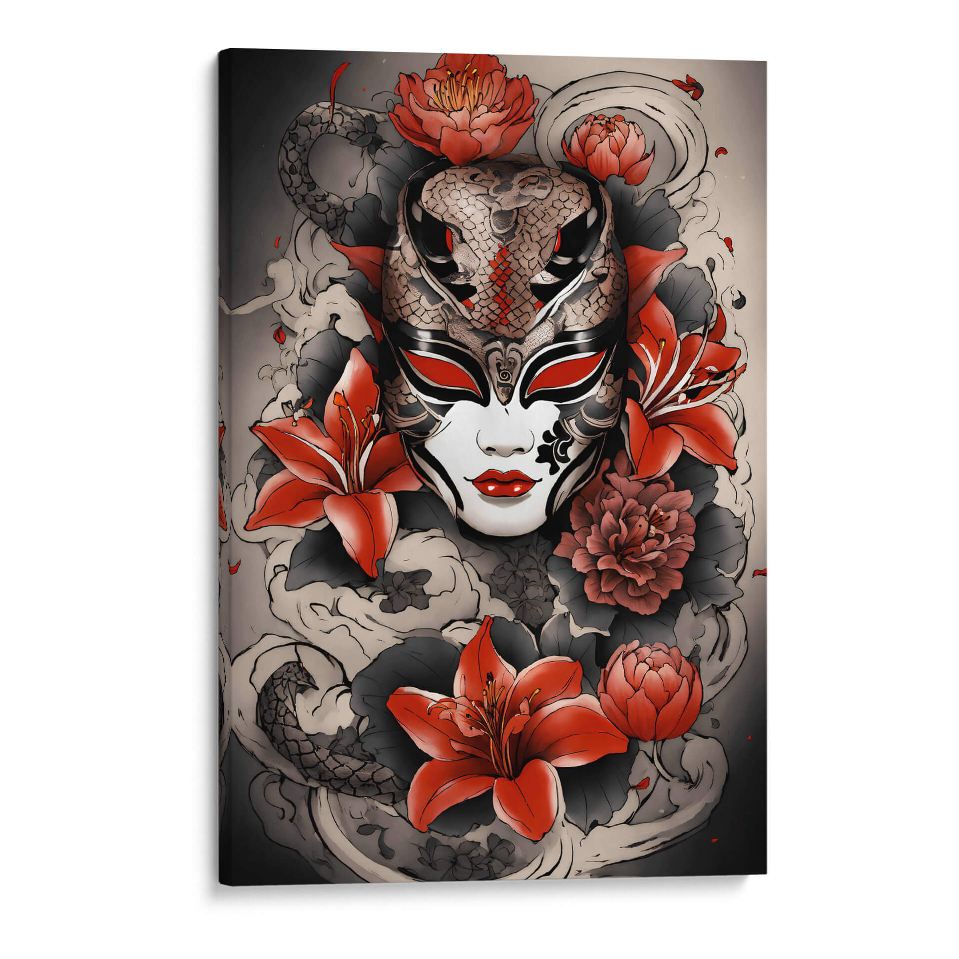 Sumérgete en la enigmática belleza de "Tattoo Art 009", una obra maestra digital del artista DEA Digital Esoteric Art que fusiona la tradición japonesa con un estilo contemporáneo audaz. Esta pieza cautivadora presenta una máscara ornamental intrincadamente detallada, evocando la mística de las geishas y los samuráis, con ojos penetrantes y labios carnosos que atraen la mirada. La máscara está rodeada por una cascada de elementos inspirados en el arte del tatuaje japonés: serpientes sinuosas y flores vibrantes, como lirios rojos y peonías, que añaden un toque de color y dinamismo a la composición. La paleta de colores, dominada por tonos oscuros, grises, rojos intensos y toques de blanco, crea un contraste dramático y una atmósfera de misterio y poder. "Tattoo Art 009" es ideal para quienes buscan añadir un toque de sofisticación exótica y un punto focal audaz a su hogar u oficina. Este cuadro decorativo es perfecto para salas de estar modernas, estudios de diseño, o cualquier espacio que desee una declaración de estilo única y con carácter, inspirando conversaciones y admiración.