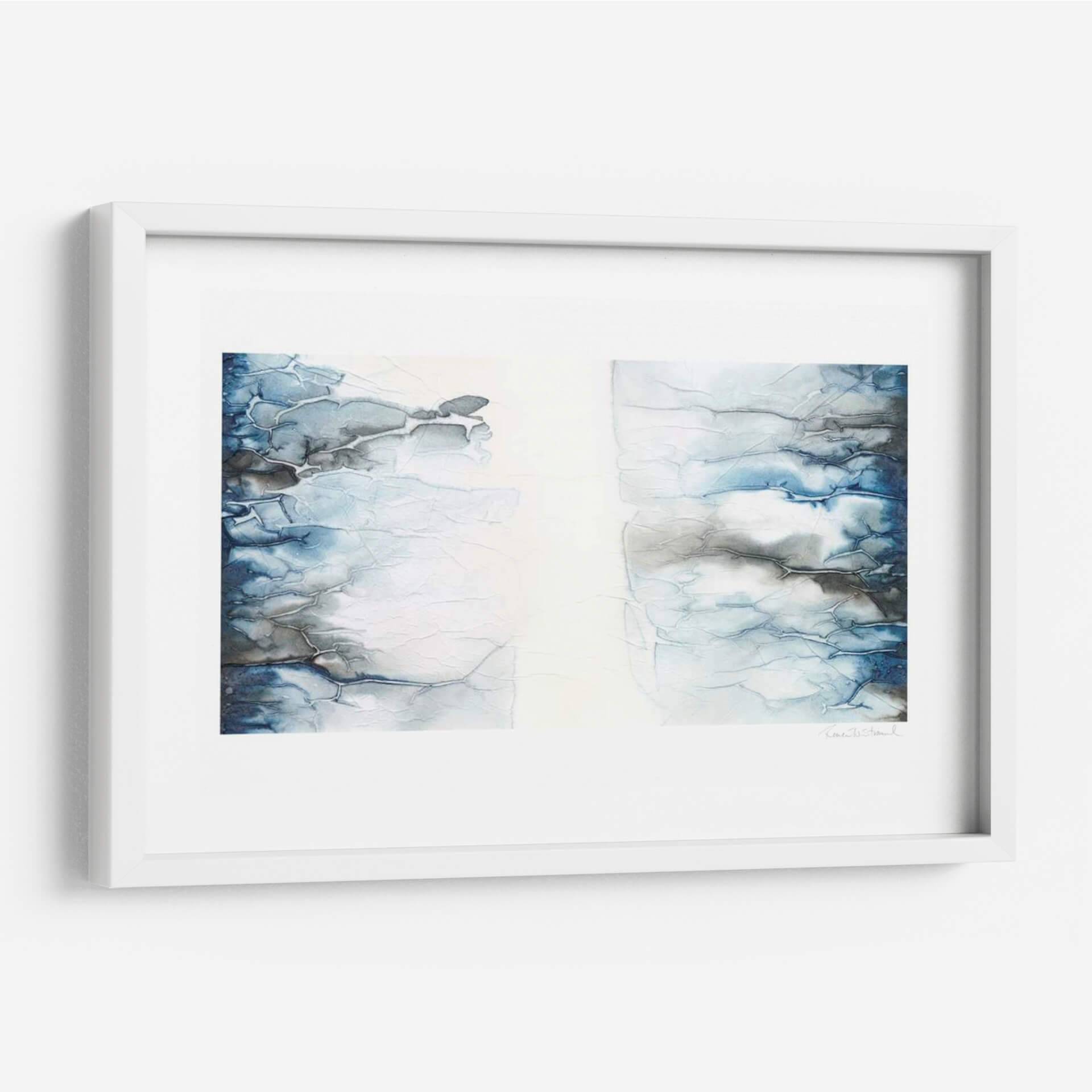 Sumérgete en la serenidad y la profundidad de "Transfijo II", una cautivadora obra de arte abstracta de Renee W. Stramel. Esta pieza evoca la majestuosidad de paisajes acuáticos o formaciones geológicas a través de una paleta de colores serena y texturas intrincadas. Las pinceladas fluidas y las líneas orgánicas se entrelazan, creando un efecto visual dinámico que invita a la contemplación. Los tonos predominantes de azul, gris y blanco se combinan para generar una atmósfera de calma y reflexión, perfecta para transformar cualquier espacio en un santuario de paz. "Transfijo II" es ideal para quienes buscan añadir un toque de elegancia contemporánea y una conexión con la naturaleza a su hogar u oficina. Su composición abstracta permite una interpretación personal, convirtiéndose en un punto focal único que inspira tranquilidad y sofisticación. Añade esta pieza a tu colección de arte de pared y experimenta una ventana a la serenidad abstracta.