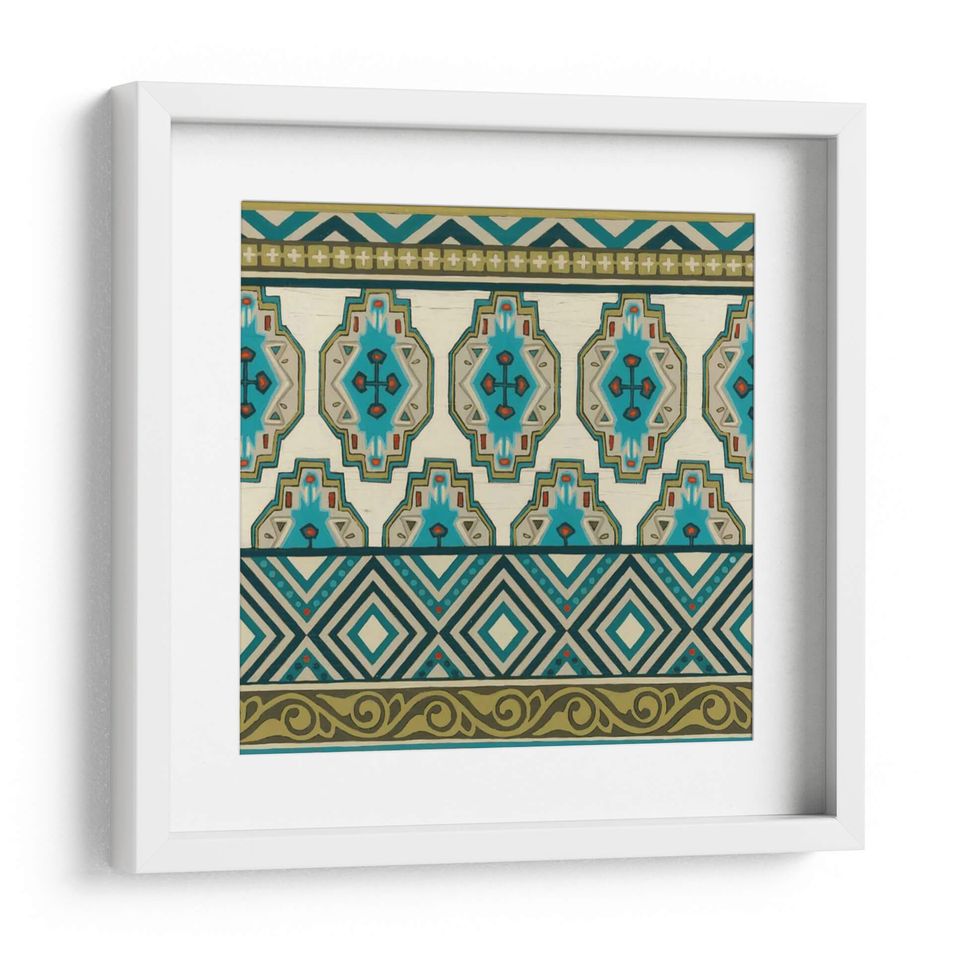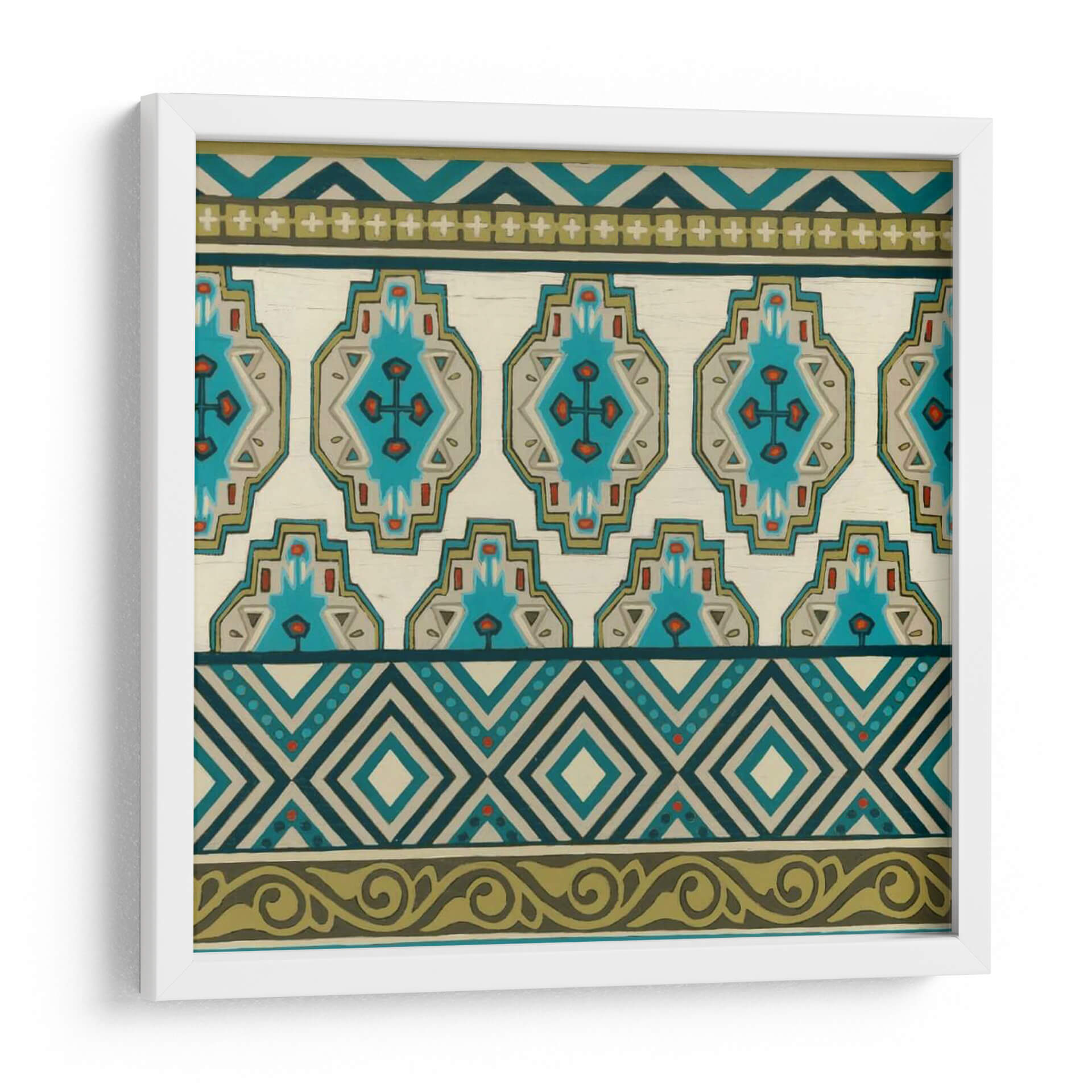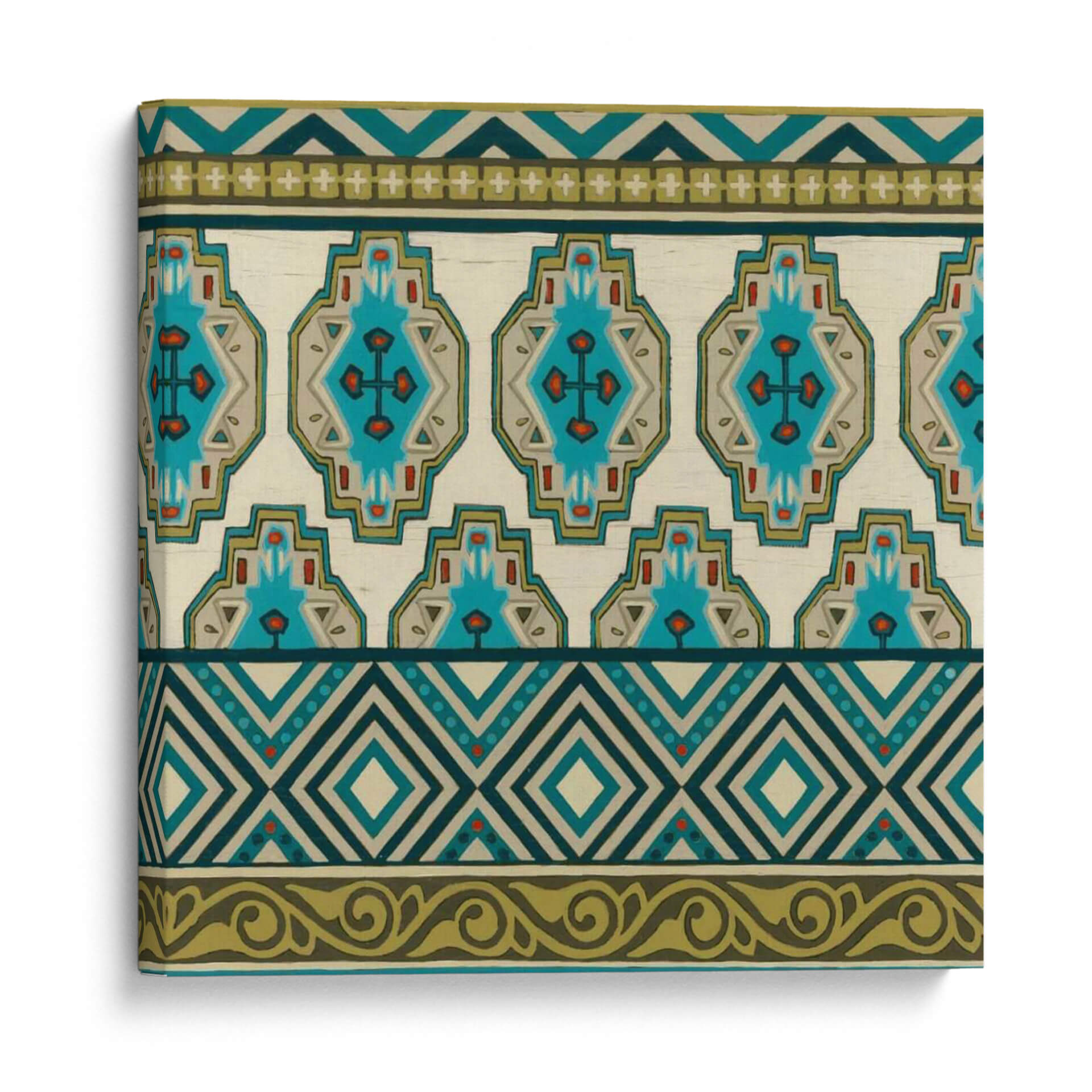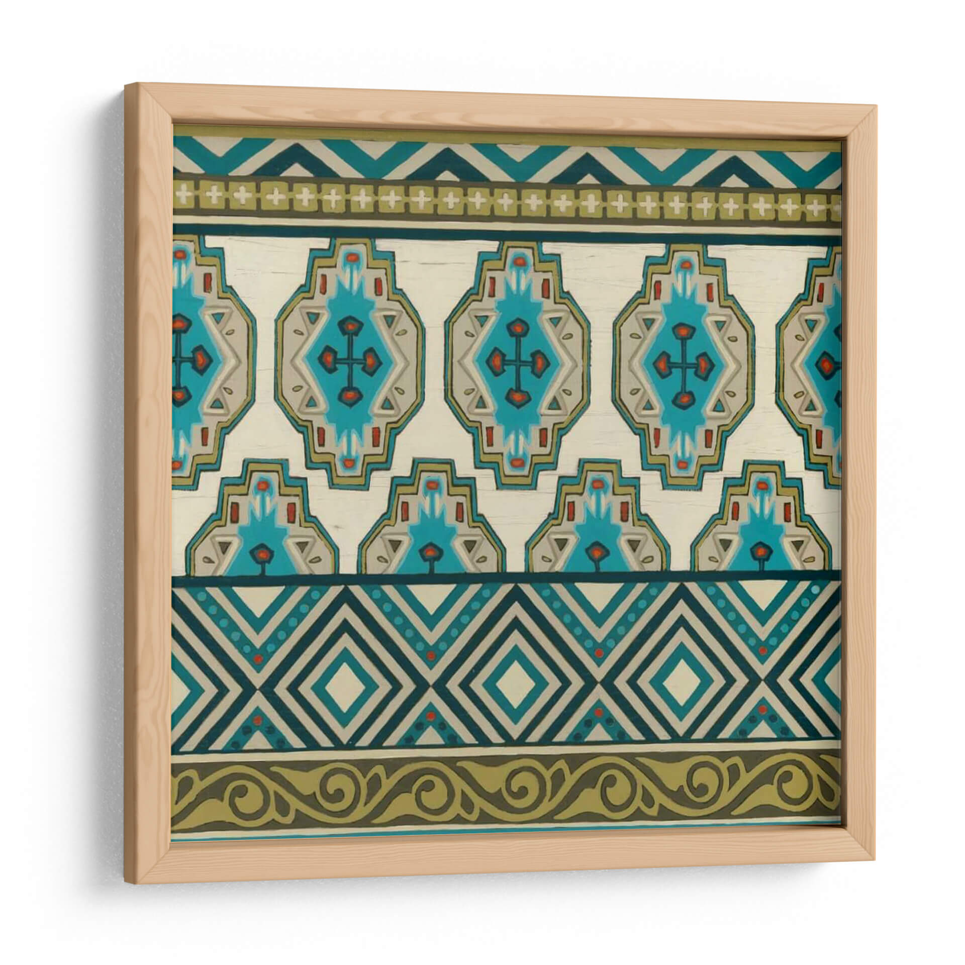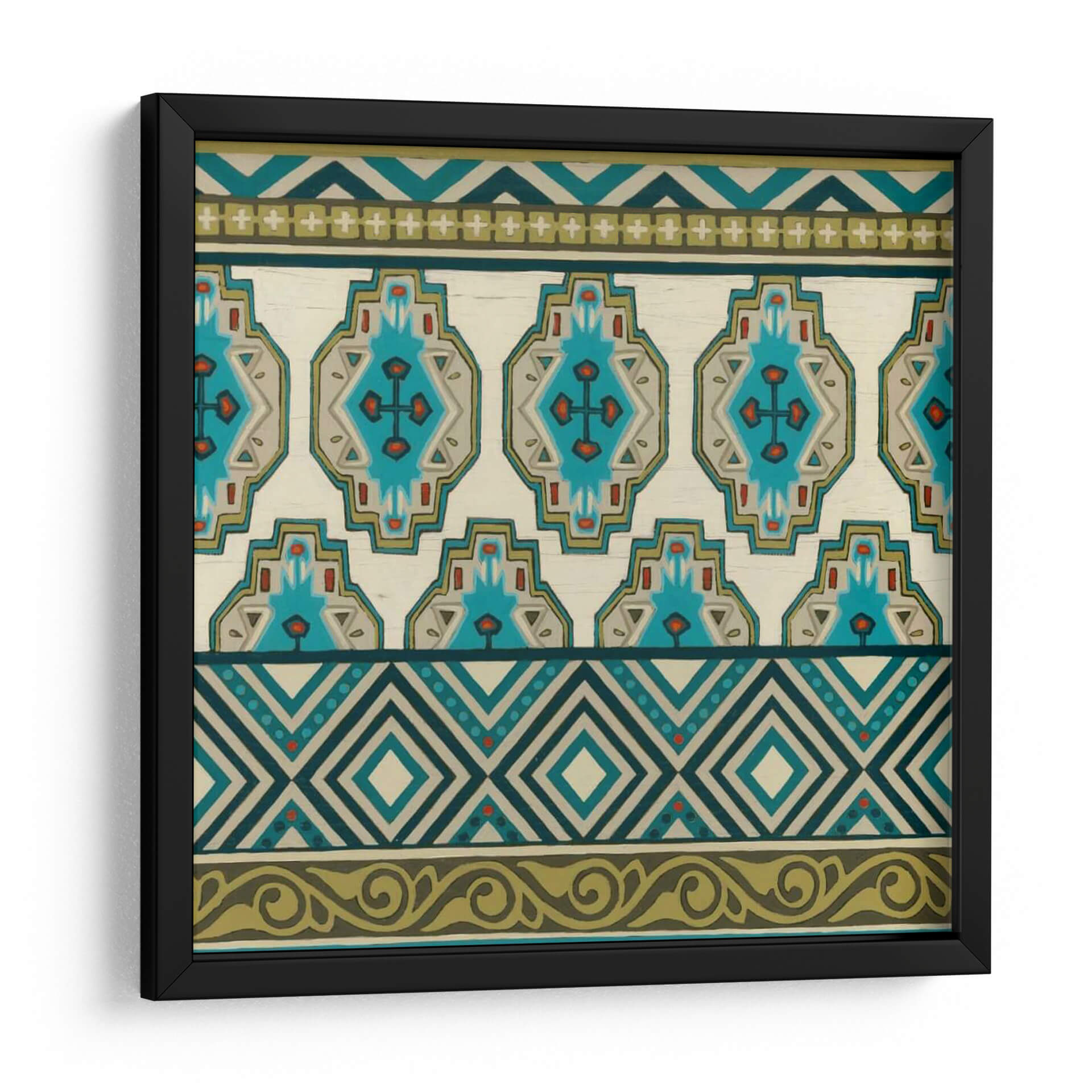 Sumérgete en la riqueza visual de "Turquesa Textiles IV", una obra de arte que evoca la artesanía y la tradición a través de un diseño abstracto cautivador. La pieza presenta un patrón repetitivo de formas geométricas intrincadas, dominado por vibrantes tonos turquesa, crema, ocre y toques de rojo, que crean una atmósfera sofisticada y étnica. Cada elemento se entrelaza con precisión, sugiriendo la complejidad y la belleza de los textiles antiguos, pero con una sensibilidad moderna. La composición simétrica y el uso audaz del color invitan a la contemplación, aportando una sensación de orden y calidez a cualquier espacio. Ideal para salones, comedores o estudios que buscan un acento de color distintivo y un aire de refinamiento cultural. "Turquesa Textiles IV" es más que un cuadro decorativo; es una declaración de estilo que fusiona lo ancestral con lo contemporáneo, perfecto para quienes aprecian el arte con historia y personalidad. Añade un toque de elegancia atemporal y un punto focal único a tu decoración con este impresionante diseño.