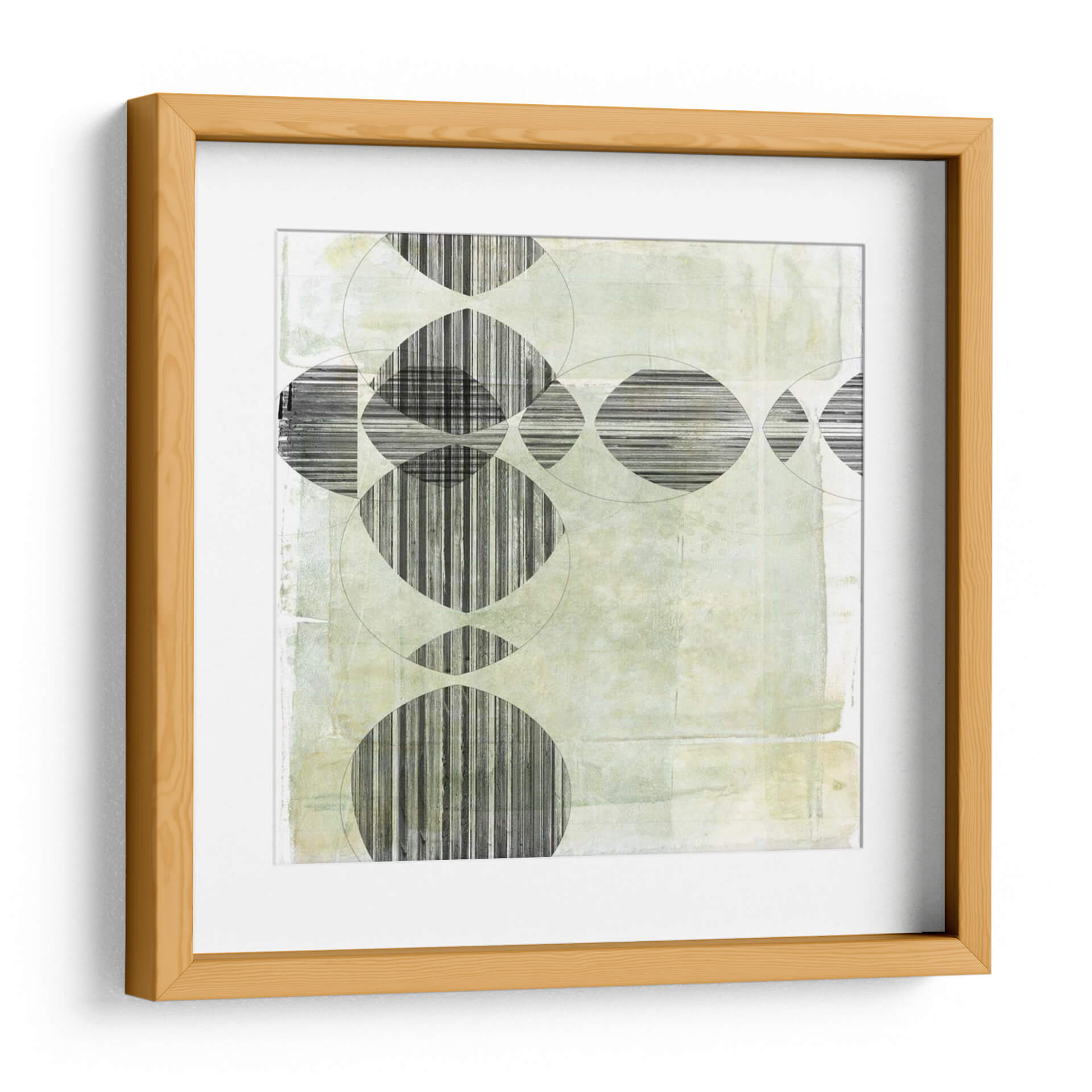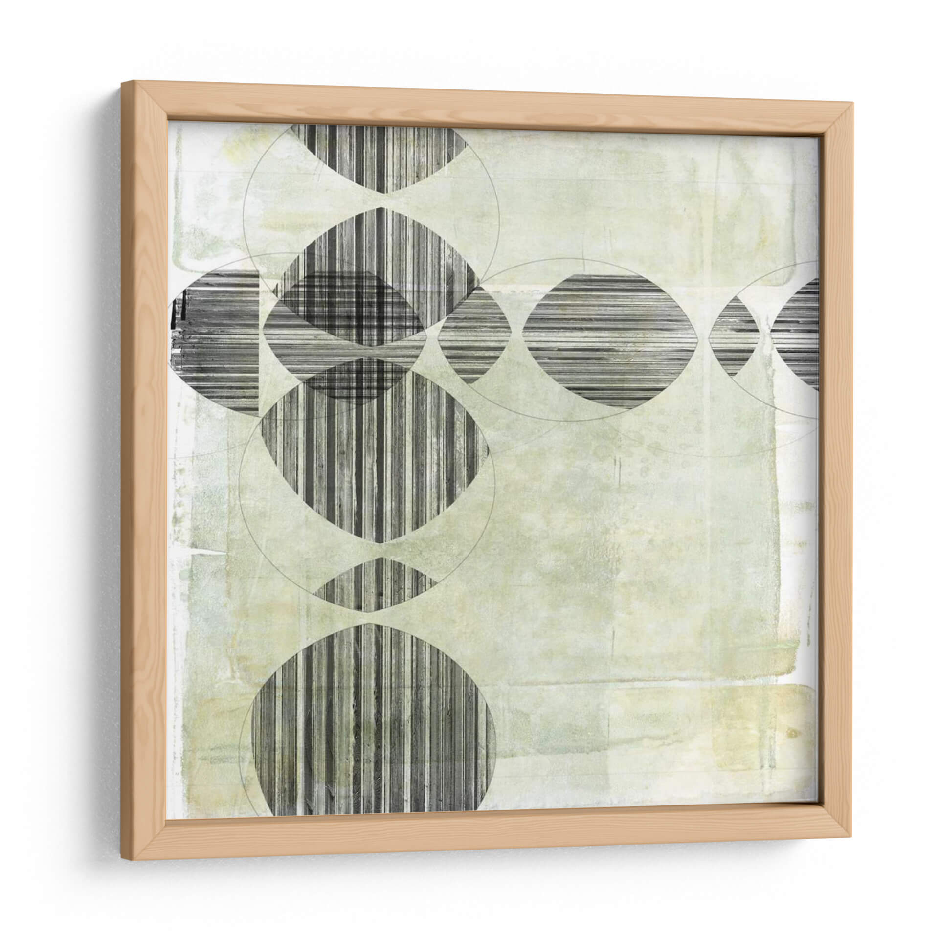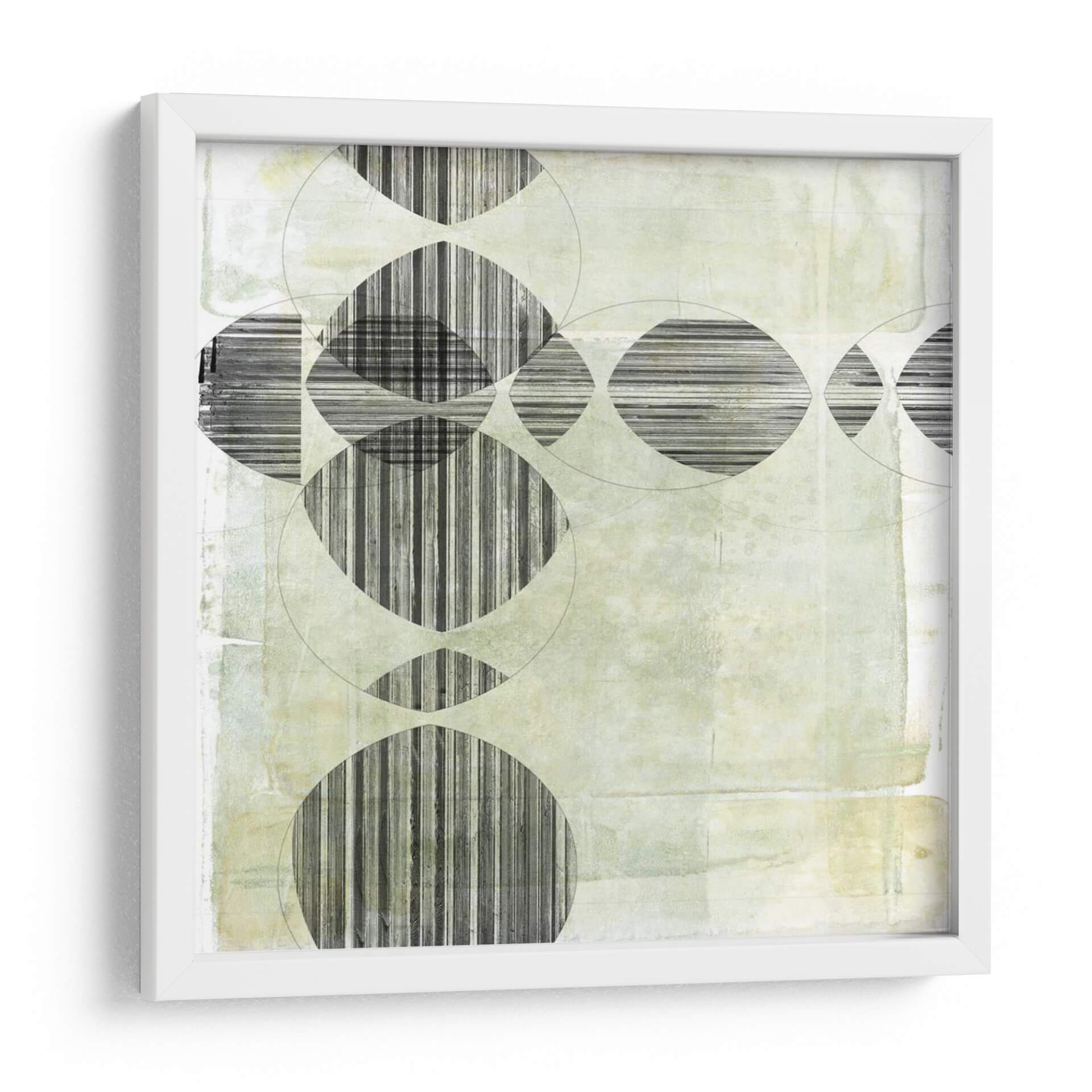 Sumérgete en la fascinante obra abstracta "Unnatural Selection II" de Jennifer Goldberger, un cuadro decorativo que desafía las percepciones y evoca una profunda reflexión. Esta pieza se caracteriza por su intrincada composición geométrica, donde círculos superpuestos y formas ovaladas interactúan con patrones de líneas verticales y horizontales en blanco y negro. La paleta de colores se centra en tonos suaves y etéreos de verde pálido y beige, creando una atmósfera de calma serena con sutiles texturas que añaden profundidad y un toque orgánico a la estructura moderna. El contraste entre las formas definidas y el fondo texturizado genera un equilibrio visual cautivador, invitando al espectador a explorar los detalles y la narrativa implícita de la obra. "Unnatural Selection II" es ideal para espacios que buscan un acento de sofisticación contemporánea y contemplación, como oficinas, salas de estar modernas o estudios. Su diseño versátil y su evocadora presencia la convierten en una adición perfecta para quienes aprecian el arte que combina la precisión geométrica con una sensibilidad estética única y un aire de misterio.