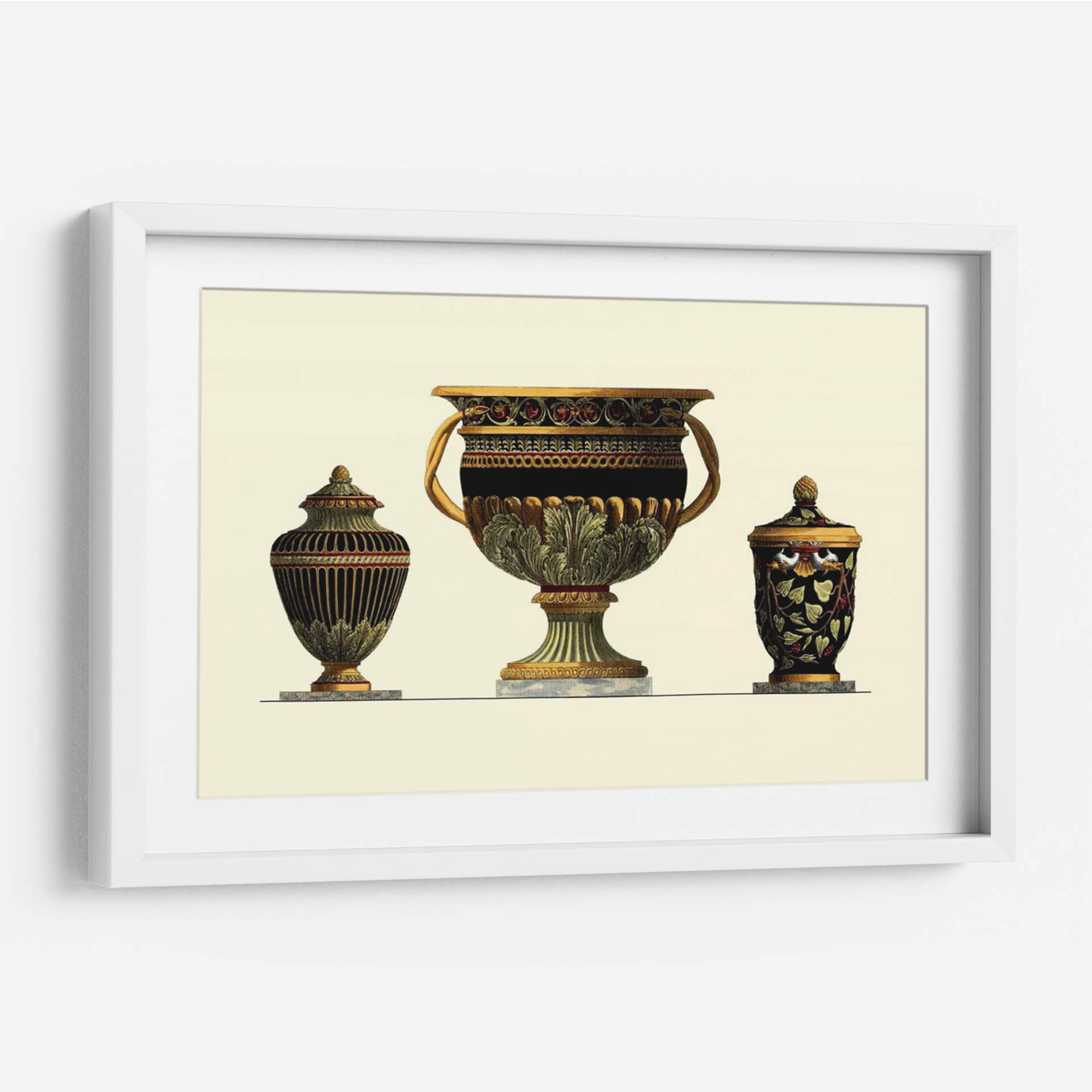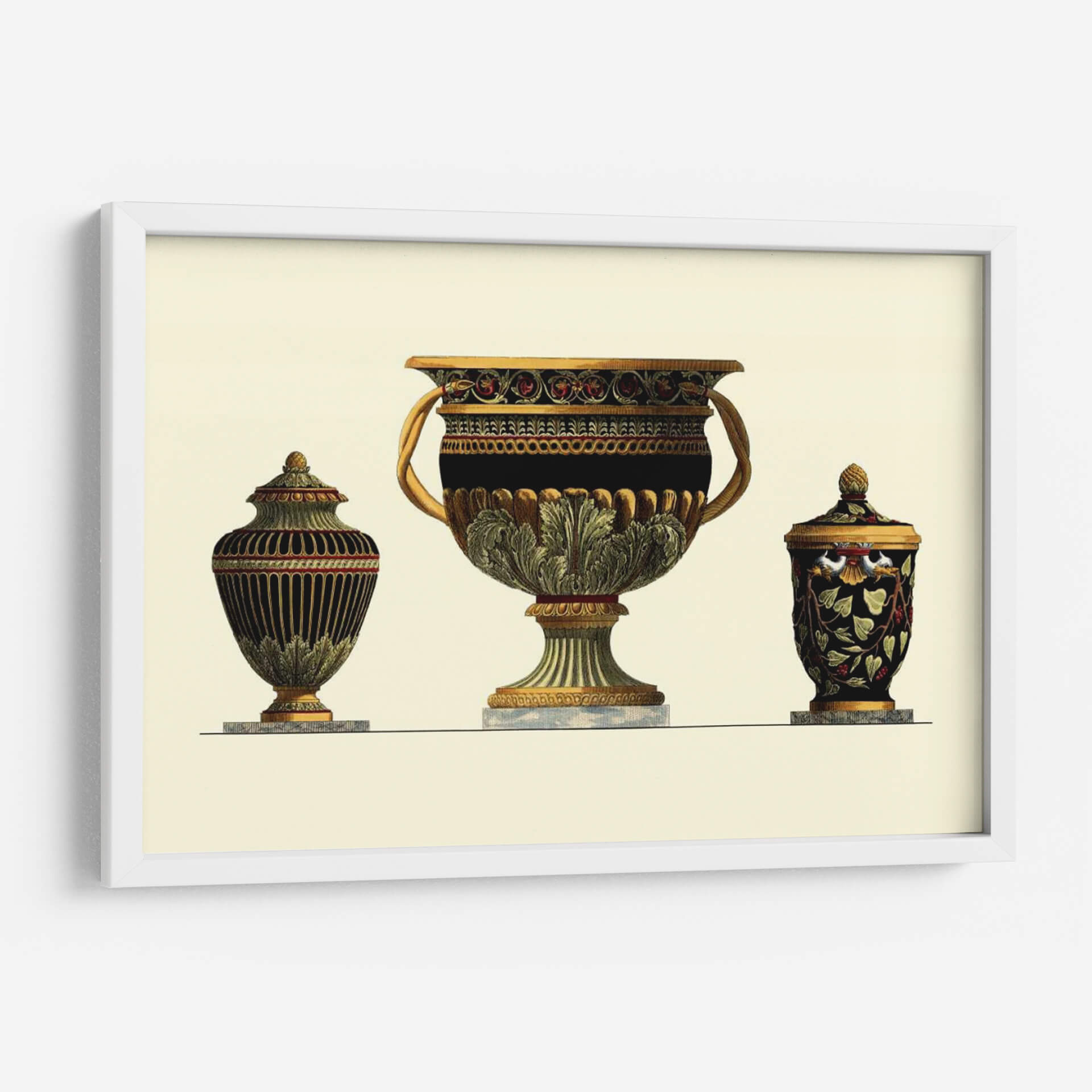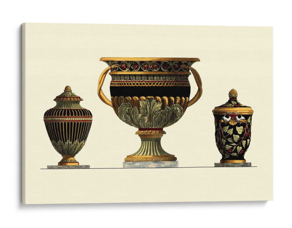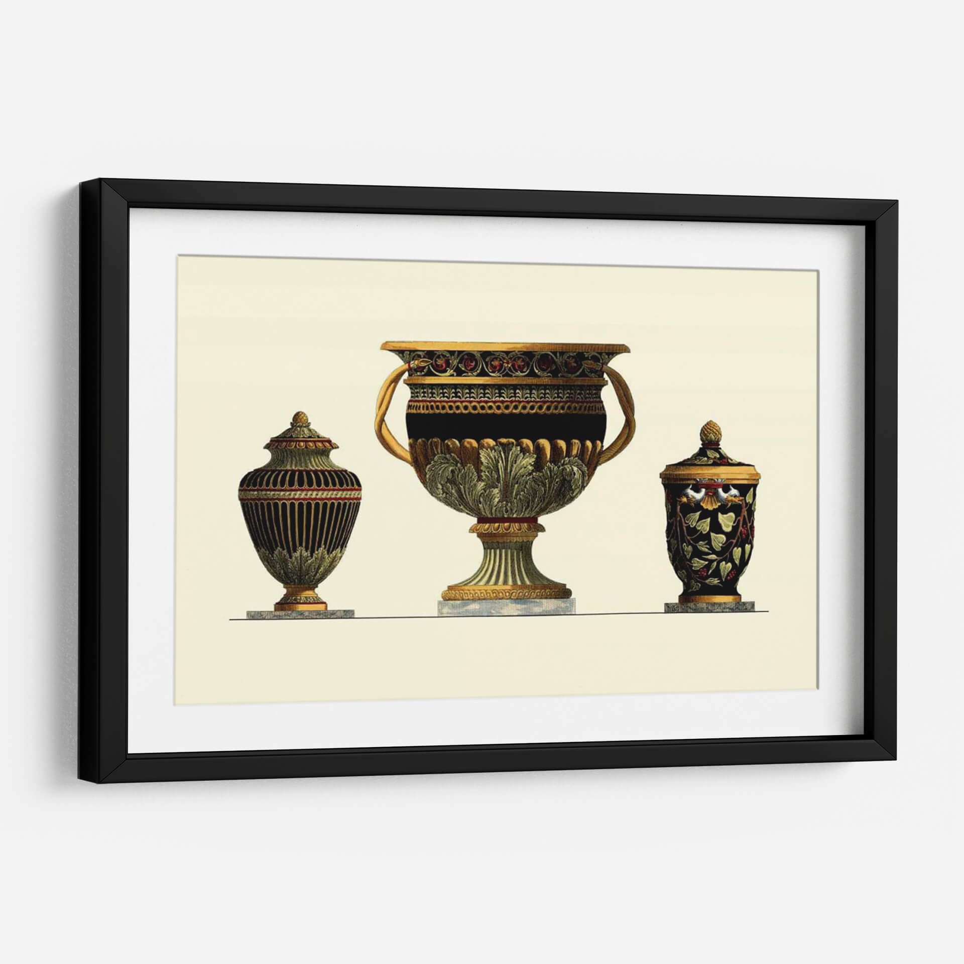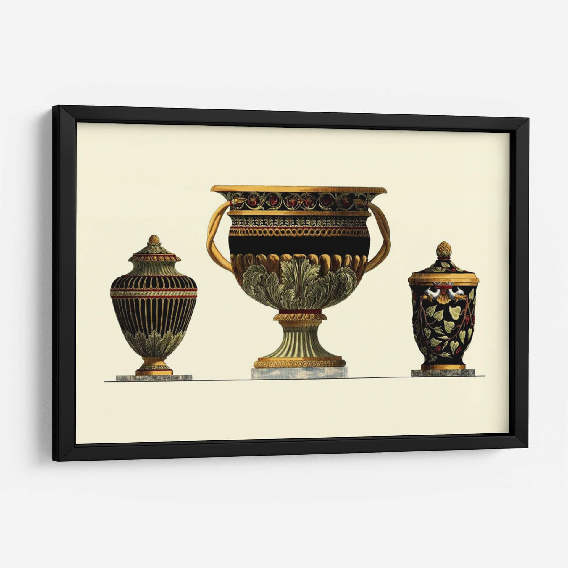 Transforma tu espacio con 'Urna Triad IV' de Giardini, una obra de arte decorativo que evoca la majestuosidad de la antigüedad clásica. Este cuadro decorativo presenta un trío de urnas ornamentadas, cada una con un diseño intrincado y detalles dorados que capturan la luz y añaden un toque de opulencia. La paleta de colores, dominada por ricos tonos negros, dorados y verdes, crea una atmósfera de elegancia atemporal y sofisticación. La composición, centrada en estas piezas escultóricas, ofrece una sensación de orden y equilibrio, perfecta para complementar tanto interiores clásicos como modernos que buscan un aire de distinción. La figura central, una gran urna con asas doradas y un borde adornado con motivos circulares, se complementa con dos urnas laterales, una flanqueada por franjas rojas y negras y la otra adornada con delicadas hojas y pájaros. Ideal para un salón, estudio o comedor, 'Urna Triad IV' es más que una simple decoración de pared; es una declaración de estilo y buen gusto, invitando a la contemplación y añadiendo profundidad a cualquier ambiente. Descubre la belleza atemporal y el detalle exquisito que esta pieza aportará a tu hogar u oficina, convirtiéndose en un punto focal de conversación.