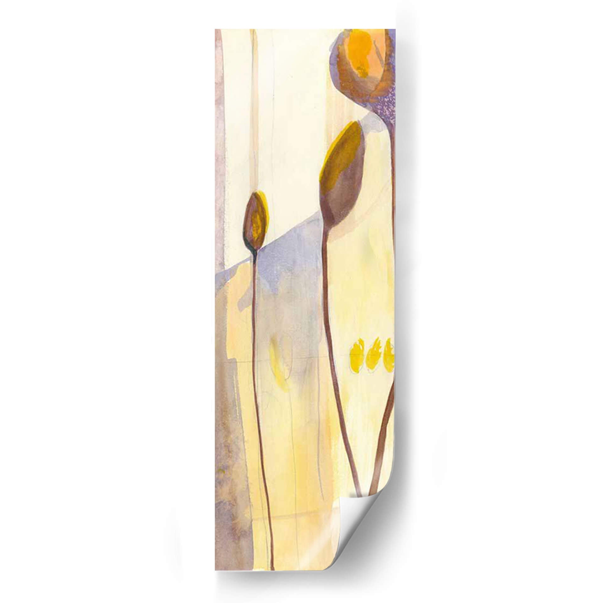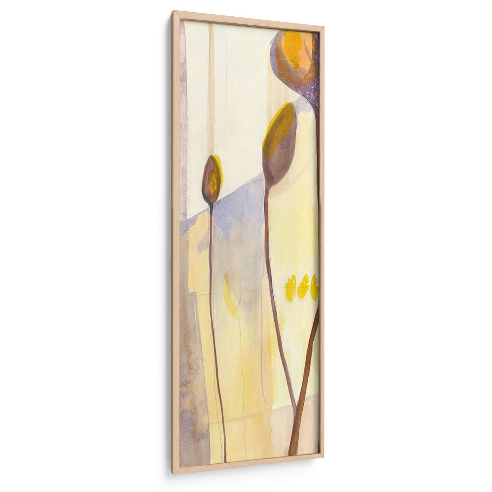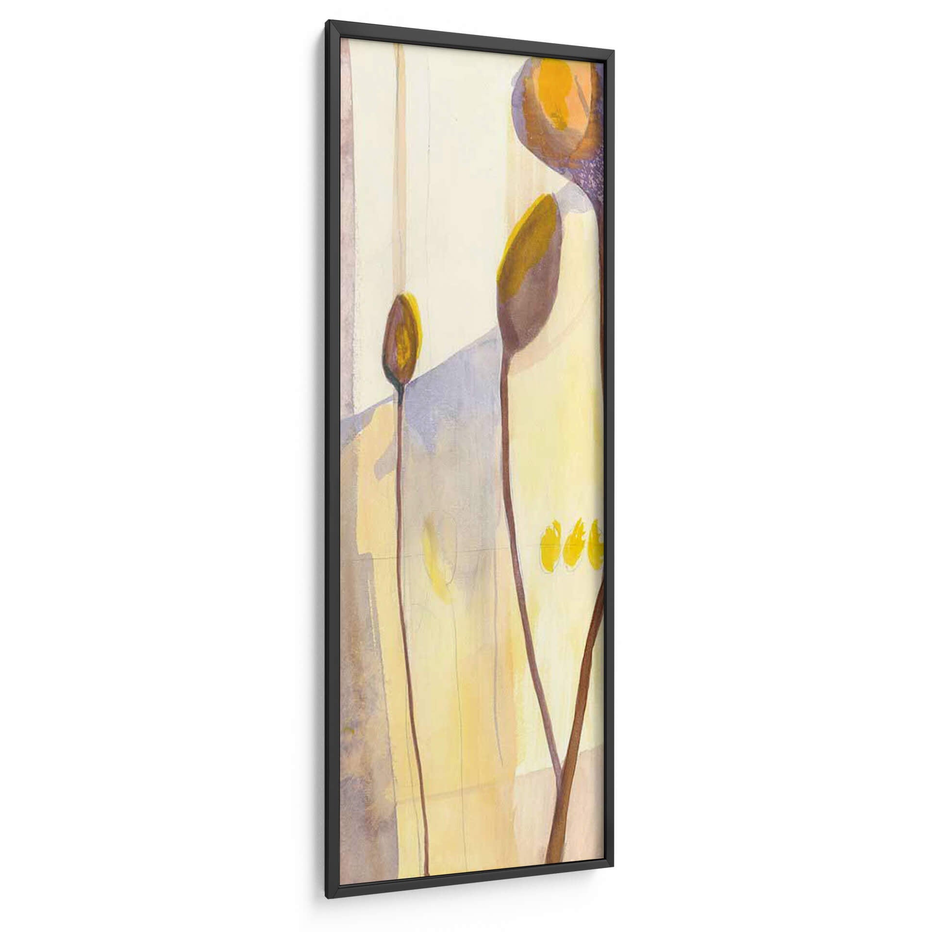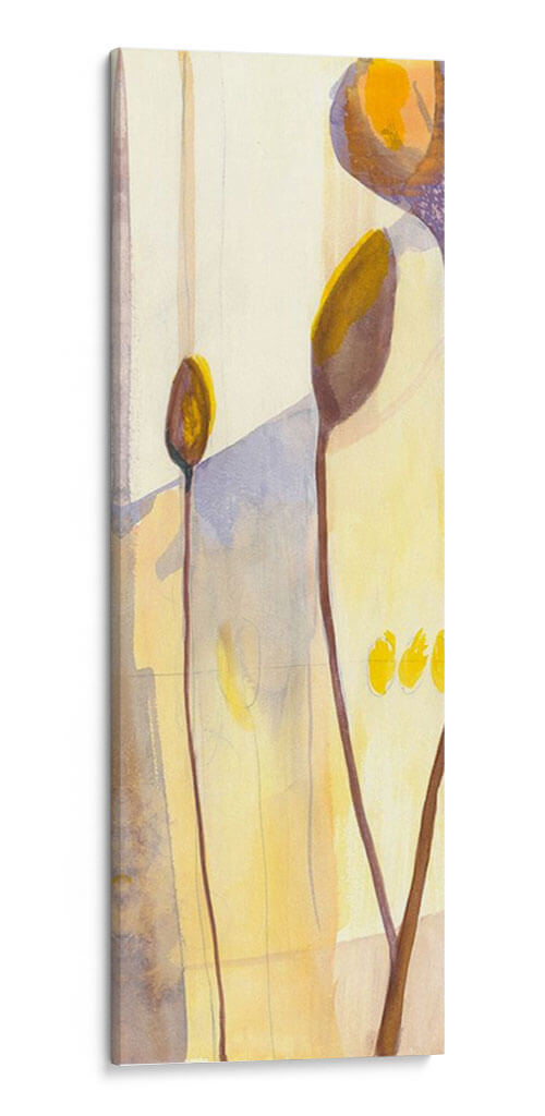 Sumérgete en la delicadeza botánica con "Vainas de Semillas I", una obra de arte que captura la sutil belleza de la naturaleza en un lienzo vertical. Jennifer Goldberger nos presenta una composición abstracta y etérea, donde formas orgánicas se funden con un fondo luminoso en tonos pastel y ocres. Las delgadas líneas marrones que se elevan, como tallos estilizados, sostienen delicadas vainas en tonos tierra y dorados, evocando la promesa de vida y crecimiento. La paleta de colores, dominada por amarillos suaves, beiges y toques de lavanda y morado, crea una atmósfera de calma y serenidad, perfecta para infundir tranquilidad en cualquier espacio. Este cuadro decorativo abstracto es ideal para quienes buscan añadir un toque de sofisticación y conexión con la naturaleza a su hogar u oficina. Su estilo contemporáneo y su composición minimalista lo convierten en una pieza versátil, capaz de complementar desde una decoración moderna hasta una más rústica o bohemia. "Vainas de Semillas I" no es solo una imagen, es una invitación a la contemplación, un recordatorio de la elegancia que reside en las formas más simples y en los ciclos naturales. Añade esta pieza única a tu colección y transforma tu pared en un oasis de paz y estilo.