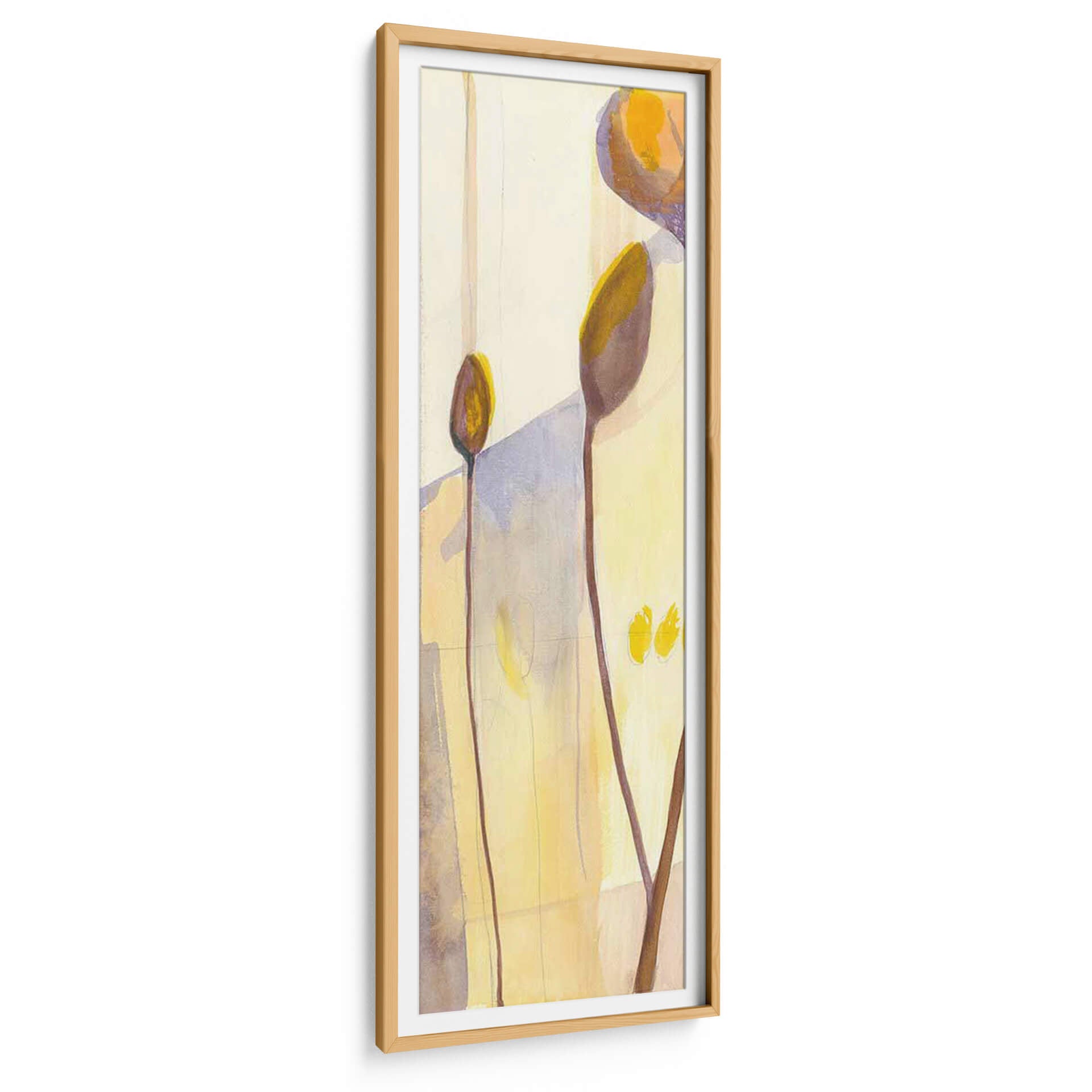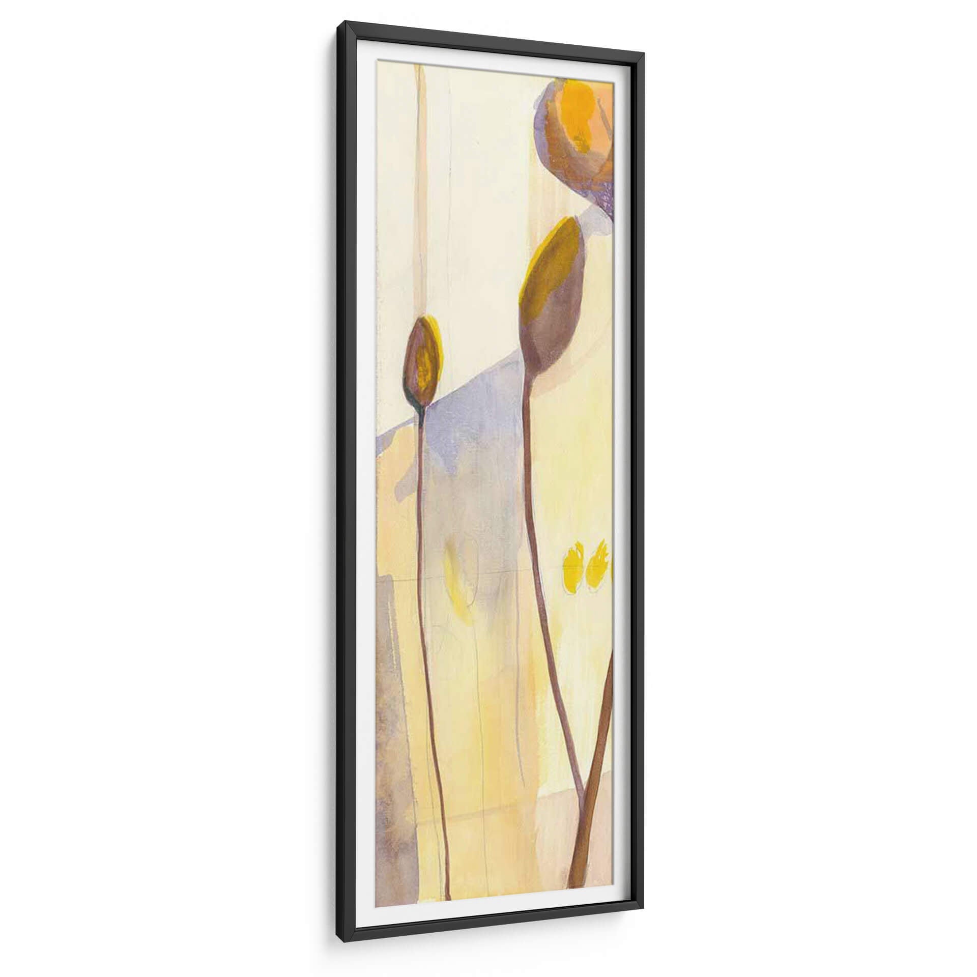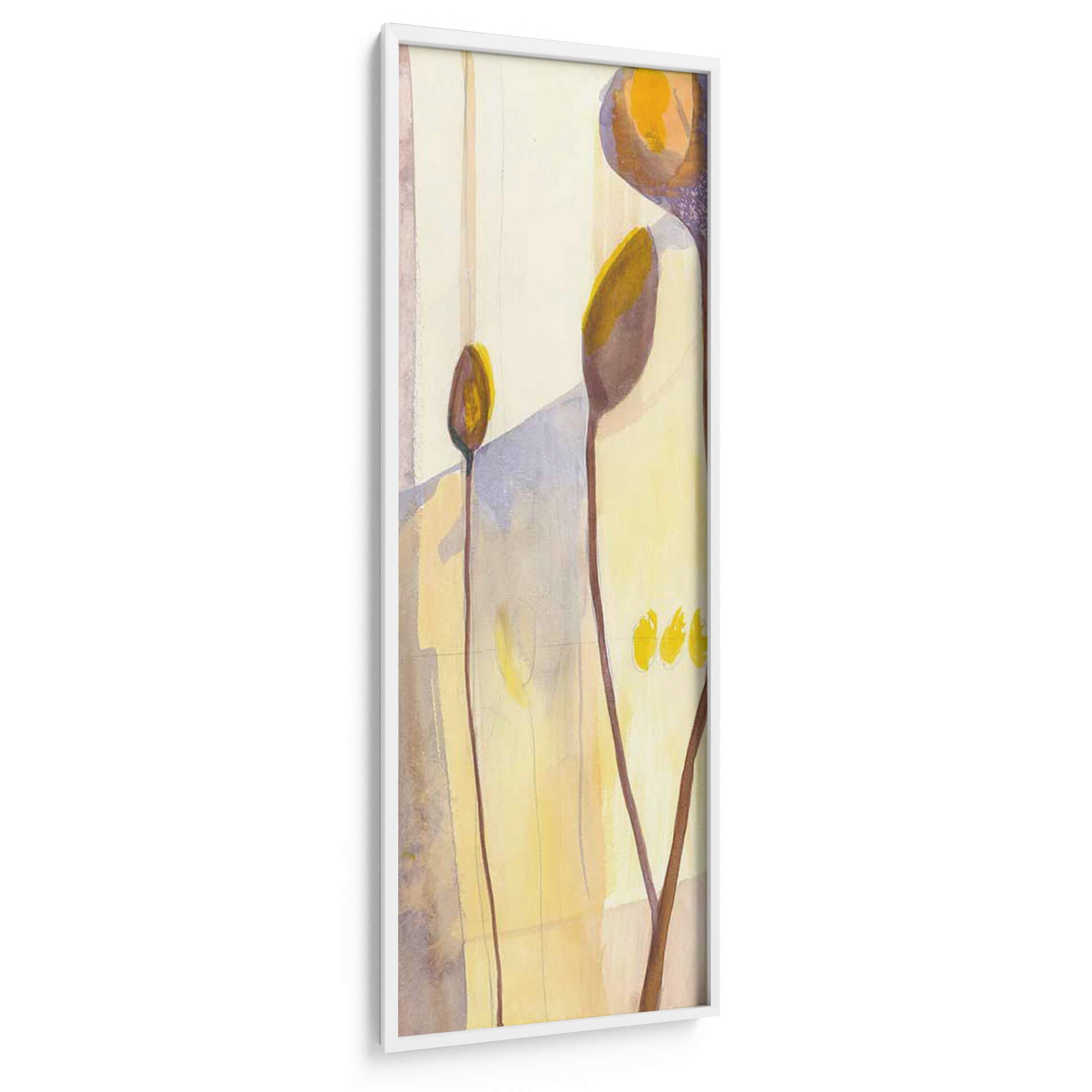 Sumérgete en la delicadeza botánica con "Vainas de Semillas I", una obra de arte que captura la sutil belleza de la naturaleza en un lienzo vertical. Jennifer Goldberger nos presenta una composición abstracta y etérea, donde formas orgánicas se funden con un fondo luminoso en tonos pastel y ocres. Las delgadas líneas marrones que se elevan, como tallos estilizados, sostienen delicadas vainas en tonos tierra y dorados, evocando la promesa de vida y crecimiento. La paleta de colores, dominada por amarillos suaves, beiges y toques de lavanda y morado, crea una atmósfera de calma y serenidad, perfecta para infundir tranquilidad en cualquier espacio. Este cuadro decorativo abstracto es ideal para quienes buscan añadir un toque de sofisticación y conexión con la naturaleza a su hogar u oficina. Su estilo contemporáneo y su composición minimalista lo convierten en una pieza versátil, capaz de complementar desde una decoración moderna hasta una más rústica o bohemia. "Vainas de Semillas I" no es solo una imagen, es una invitación a la contemplación, un recordatorio de la elegancia que reside en las formas más simples y en los ciclos naturales. Añade esta pieza única a tu colección y transforma tu pared en un oasis de paz y estilo.