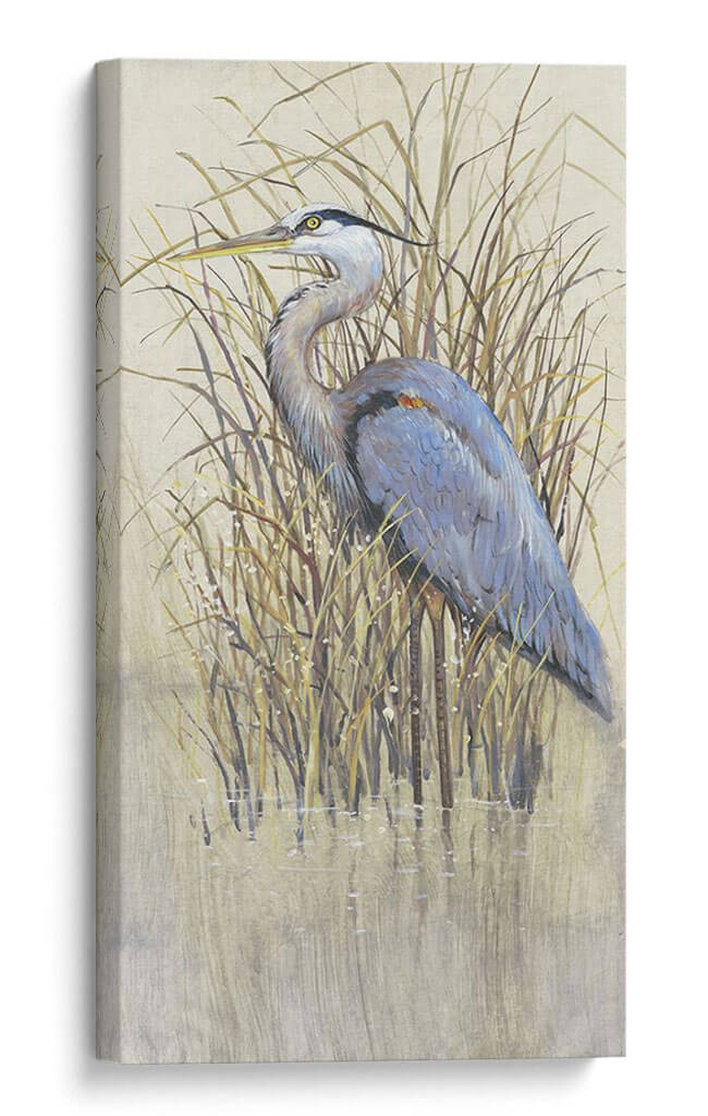 Sumérgete en la serenidad de la naturaleza con "Wading Ii", una cautivadora obra de arte de Tim O'Toole. Este cuadro decorativo captura la majestuosa presencia de una garza azul entre la vegetación de juncias y cañas, reflejando sutilmente en las aguas tranquilas. La paleta de colores, dominada por tonos tierra, azules empolvados y verdes suaves, crea una atmósfera de calma y contemplación, ideal para transformar cualquier espacio en un santuario de paz. El estilo realista con toques impresionistas añade profundidad y textura a la pieza, invitando a la observación detallada de las plumas y el entorno natural. "Wading Ii" es perfecto para quienes buscan añadir un elemento de la vida silvestre y la tranquilidad a su hogar u oficina, evocando la quietud de un amanecer o atardecer en un humedal. Este cuadro decorativo es una ventana a la belleza serena del mundo natural, diseñada para resonar con aquellos que aprecian la delicadeza y la elegancia de la fauna en su hábitat. Añade un toque de naturaleza sofisticada y calma a tu decoración.
