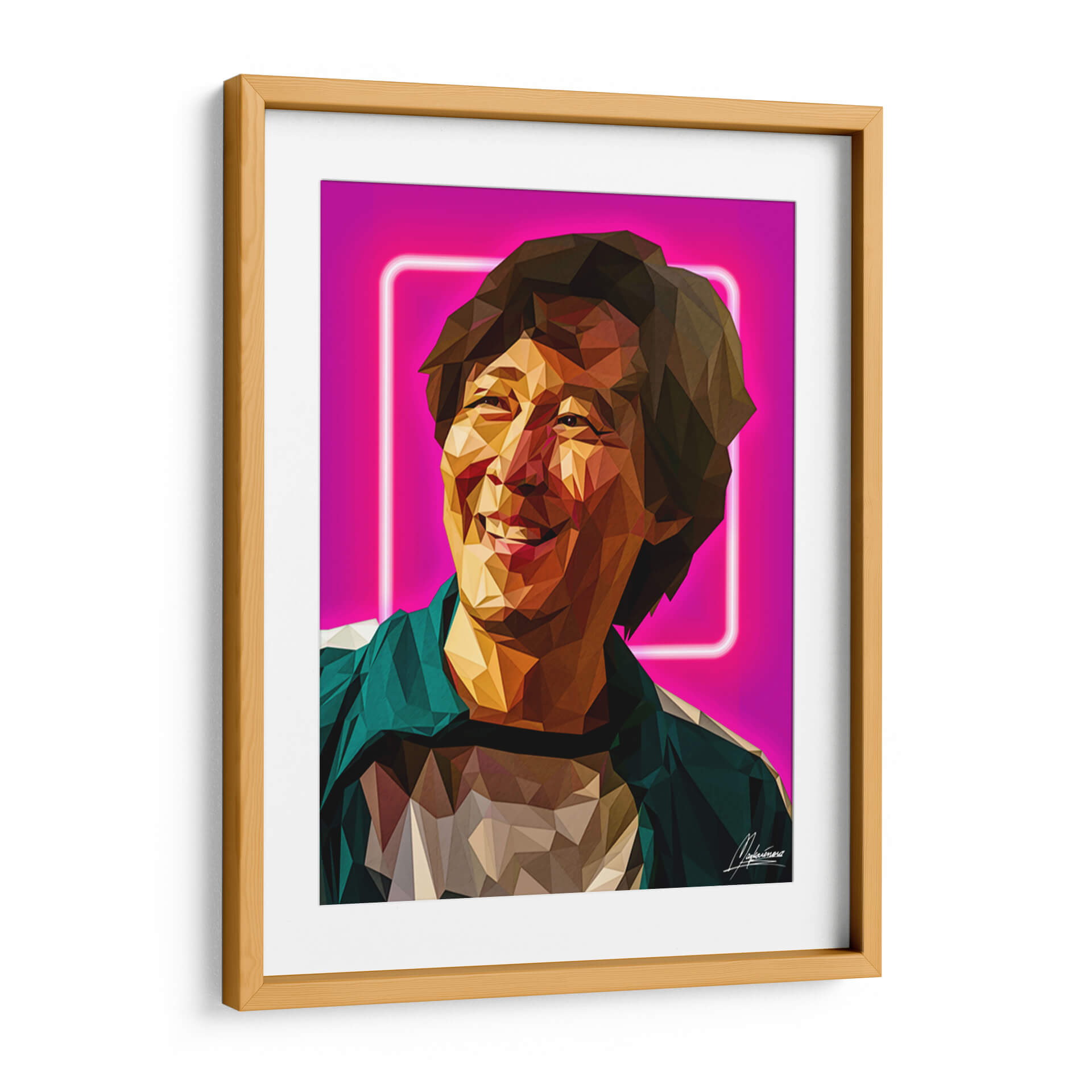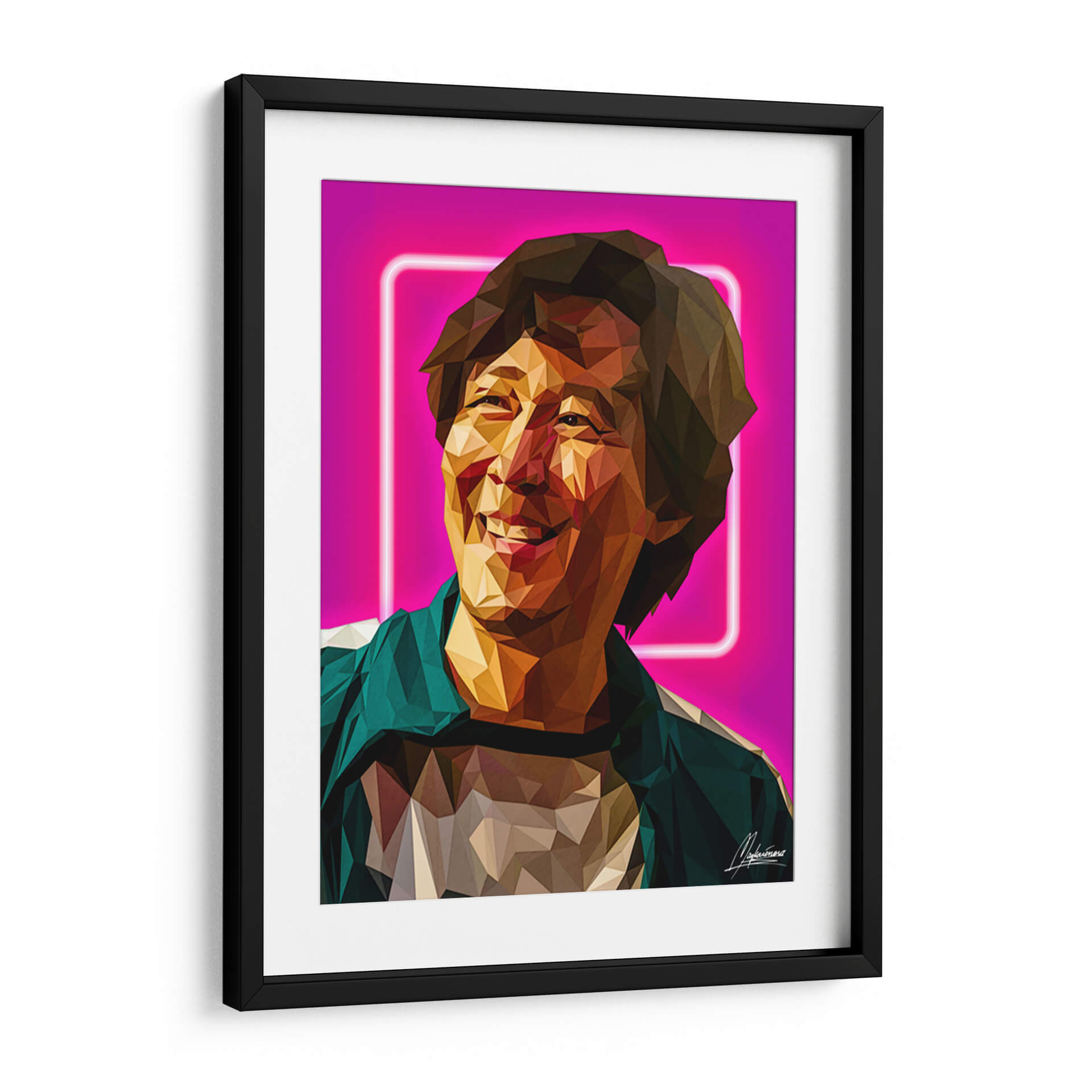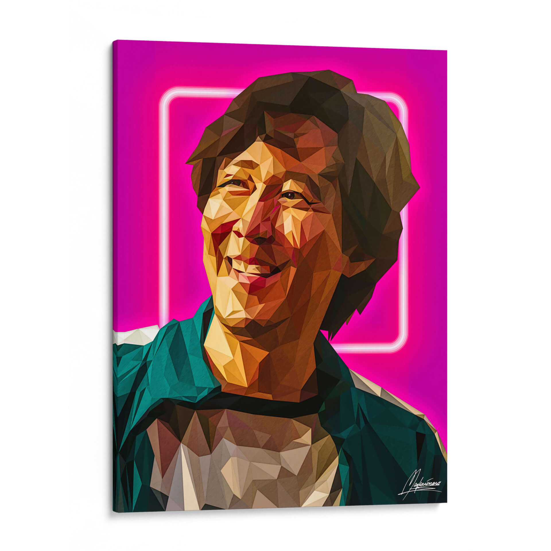 Captura la esencia de la modernidad y el estilo con este impactante cuadro decorativo "GI HUN" del artista Mayka ienova. Esta obra de arte digital se caracteriza por su audaz representación geométrica, utilizando una técnica de low poly que descompone el rostro en una serie de facetas poligonales. La paleta de colores es vibrante y contrastante, dominada por un fondo magenta intenso que se ilumina con un sutil marco de neón blanco, creando una atmósfera energética y contemporánea. Los tonos tierra, ocres y verdes oscuros que conforman el retrato principal aportan profundidad y un toque de calidez a la composición, haciendo de esta pieza un punto focal cautivador. El estilo artístico, moderno y distintivo, evoca una sensación de intriga y carisma, ideal para espacios que buscan una declaración audaz. "GI HUN" es perfecto para añadir personalidad a una sala de estar, un estudio o una oficina, transformando cualquier pared en una galería de arte personal. Su diseño contemporáneo y su ejecución geométrica lo convierten en una adición única para coleccionistas de arte moderno y amantes del diseño vanguardista, aportando un aire de sofisticación y originalidad a tu decoración.