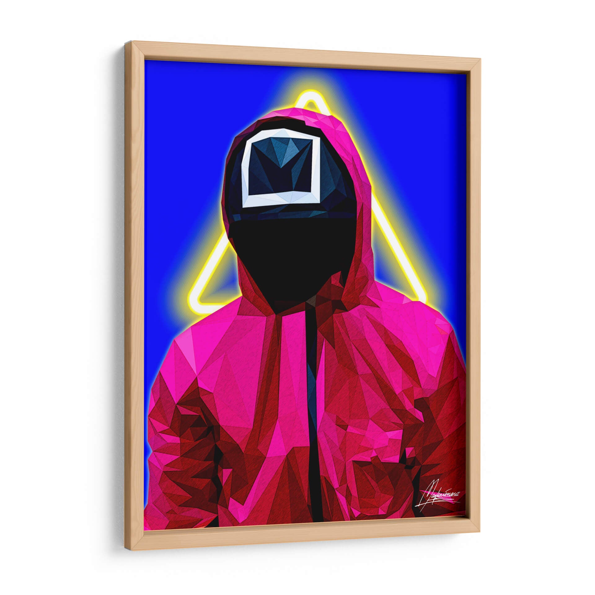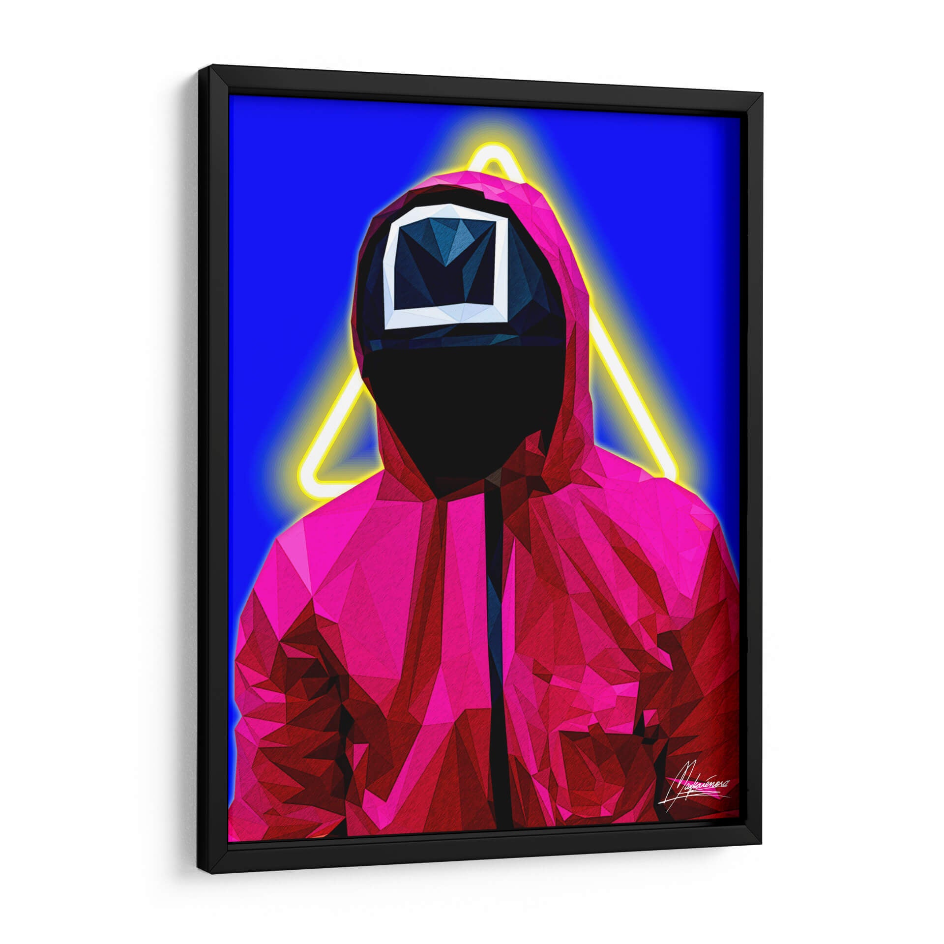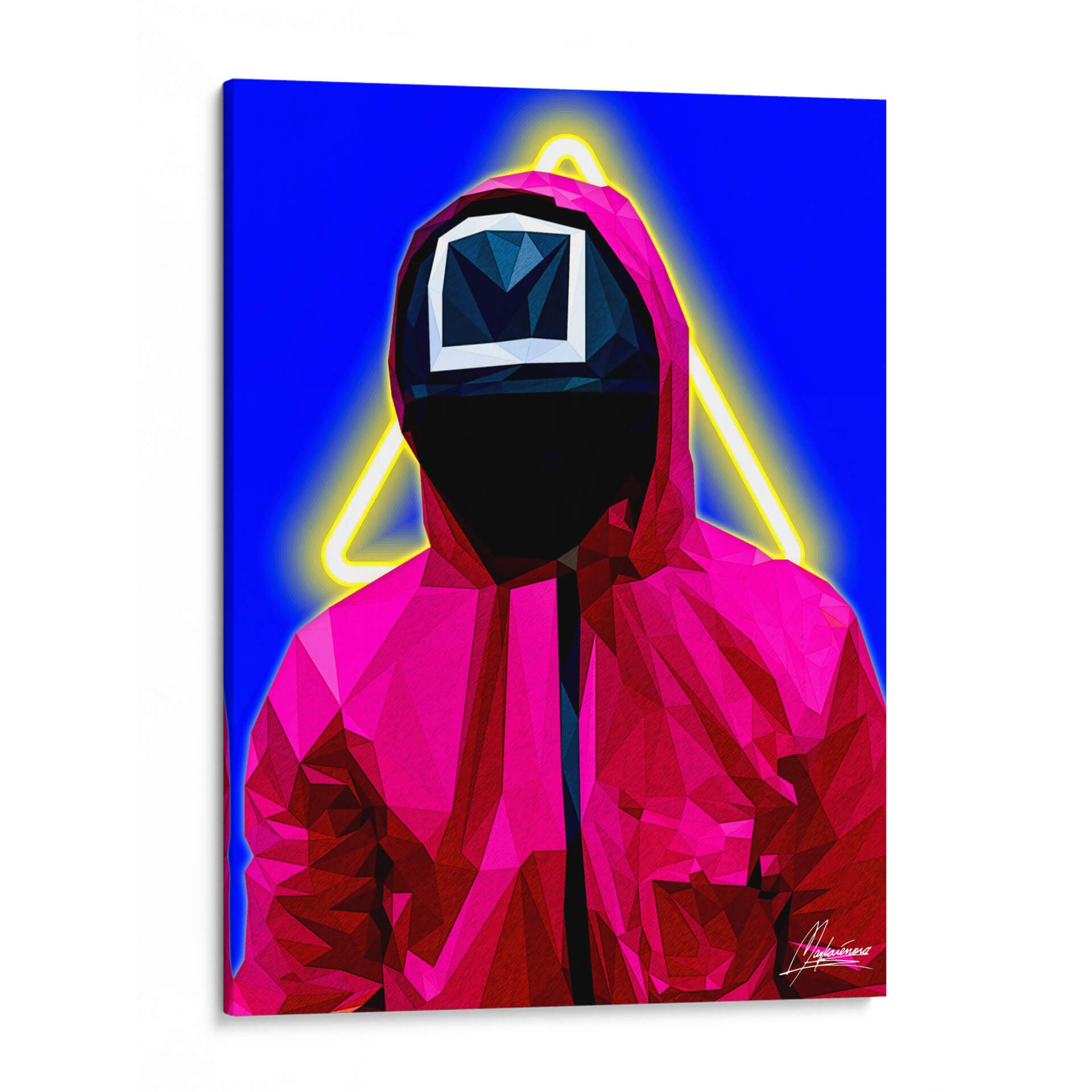 Sumérgete en la enigmática presencia de "RED SUIT", una obra de arte contemporáneo que captura la esencia de la intriga y la modernidad. Esta pieza, creada por Mayka Ienova, presenta una figura con un traje de un vibrante color rosa y una máscara geométrica que oculta su identidad, enmarcada por un halo de luz amarilla y un fondo azul eléctrico. El estilo low-poly, con sus facetas angulares y la audaz paleta de colores, crea un impacto visual dinámico y contemporáneo. La composición, centrada en el enigmático personaje, invita a la reflexión sobre la identidad y la presencia en el espacio digital y físico. "RED SUIT" es una elección perfecta para añadir un toque de misterio y audacia a tu sala de estar, oficina o cualquier espacio que busque una declaración de estilo única. Su fuerte contraste de colores y su diseño geométrico la convierten en un punto focal intrigante que estimulará conversaciones y capturará la imaginación de tus invitados. Ideal para amantes del arte moderno y piezas con carácter.