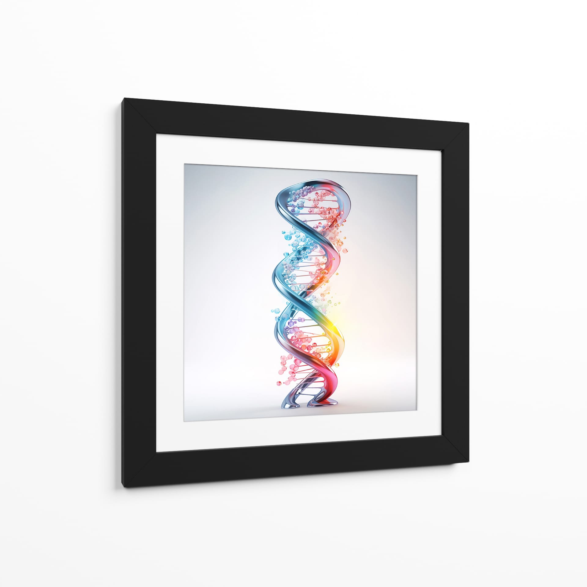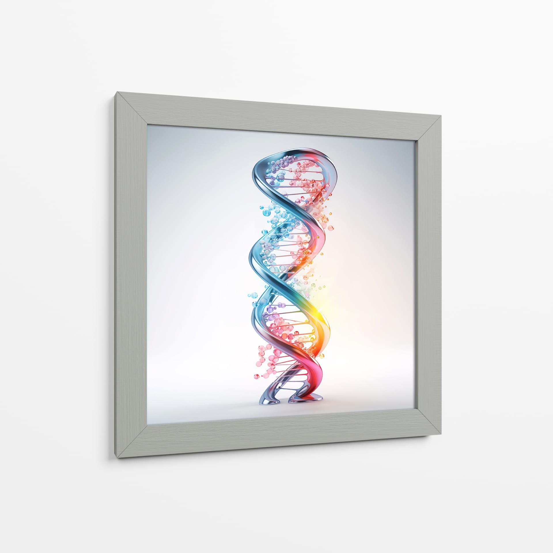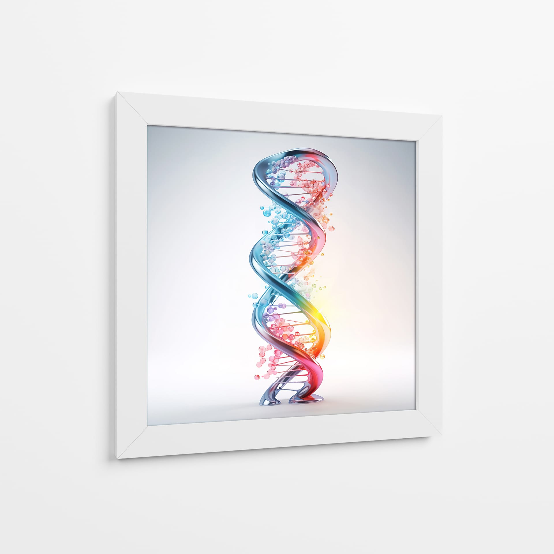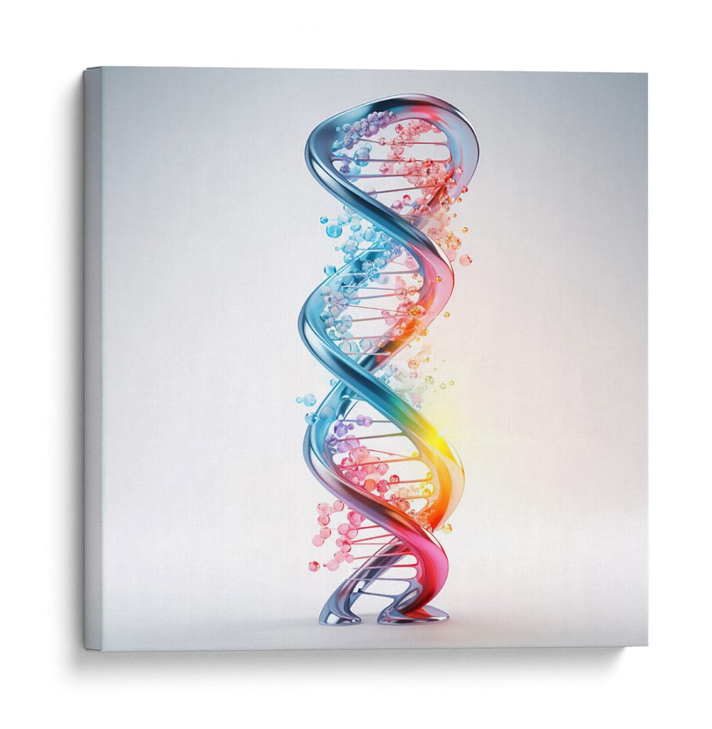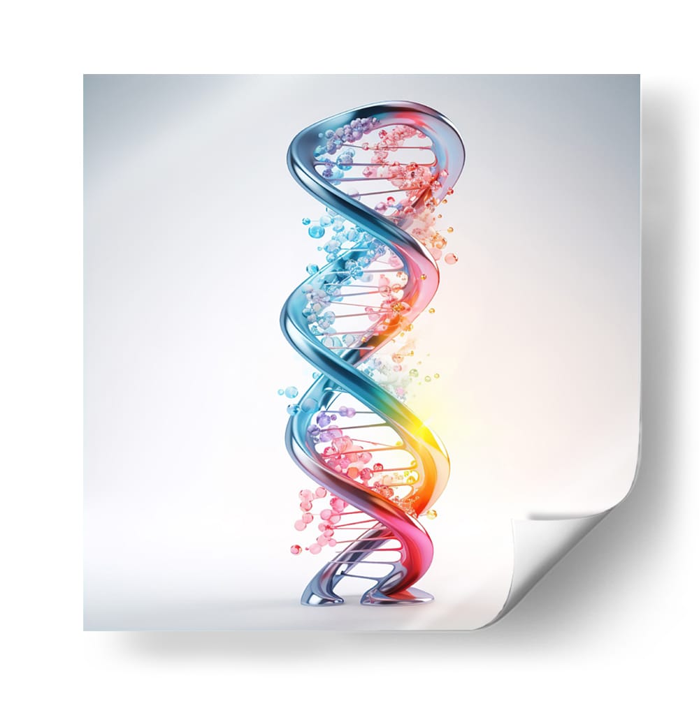 Adéntrate en el fascinante mundo de la ciencia y la vida con el cuadro decorativo "ADN" de Cecilia Flores. Esta obra de arte digital captura la icónica doble hélice, representando la esencia misma de la existencia en una explosión de color y forma. La espiral tridimensional, detallada con esferas que simulan las bases nitrogenadas, irradia un brillo cautivador. Una paleta de colores vibrantes, que transita del azul profundo al rojo ardiente a través de tonos rosados y naranjas, evoca dinamismo y energía, mientras que las pequeñas burbujas dispersas añaden un toque etéreo y de misterio. El fondo sutil y luminoso permite que la estructura del ADN sea el foco principal, creando un contraste visual impactante. Este cuadro decorativo es perfecto para espacios que buscan un toque de inspiración científica o un elemento moderno y conceptual. Ideal para oficinas, estudios de investigación, o como un punto focal educativo y estético en salas de estar y dormitorios contemporáneos. Añade una pieza que celebra el intrincado diseño de la vida, generando conversaciones y admiración.