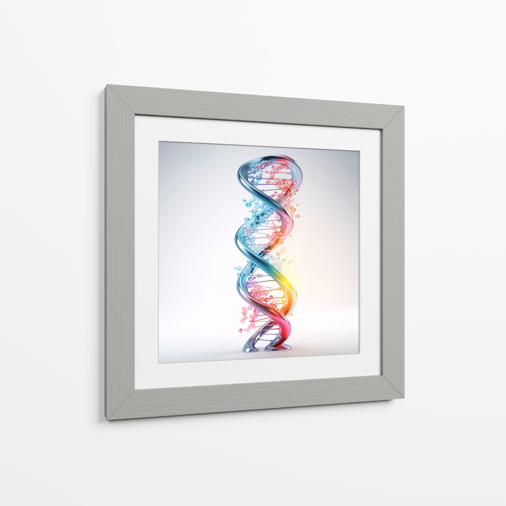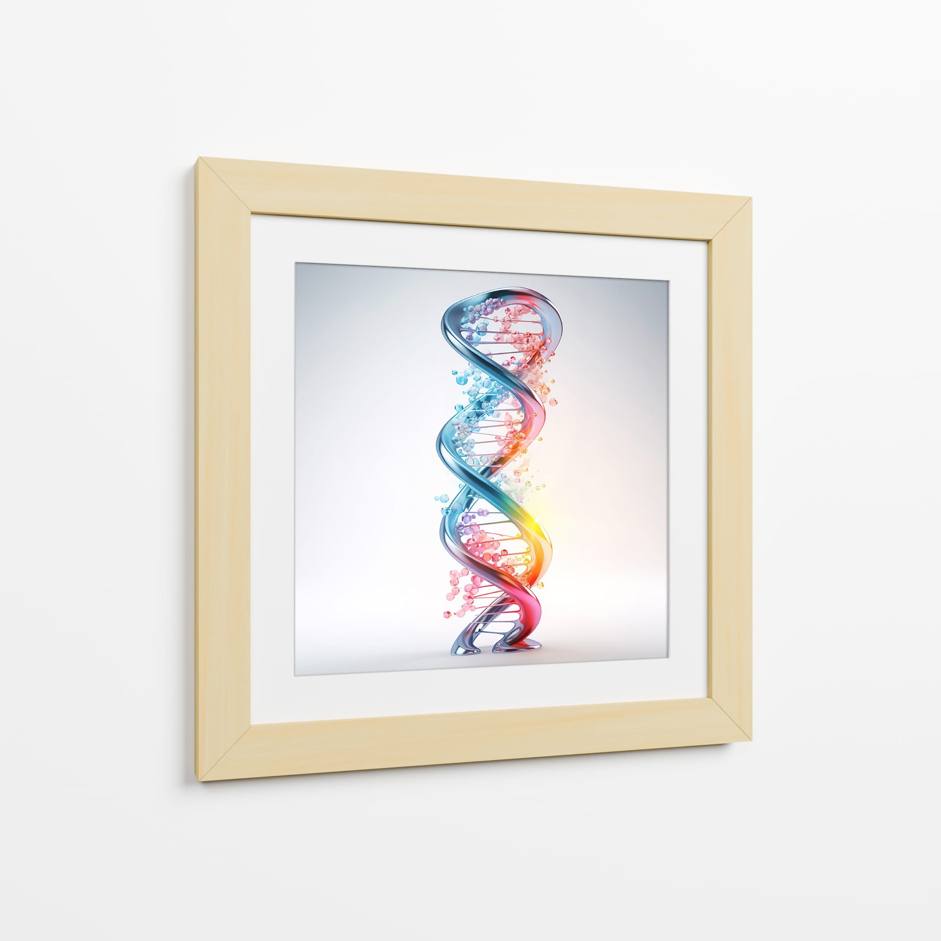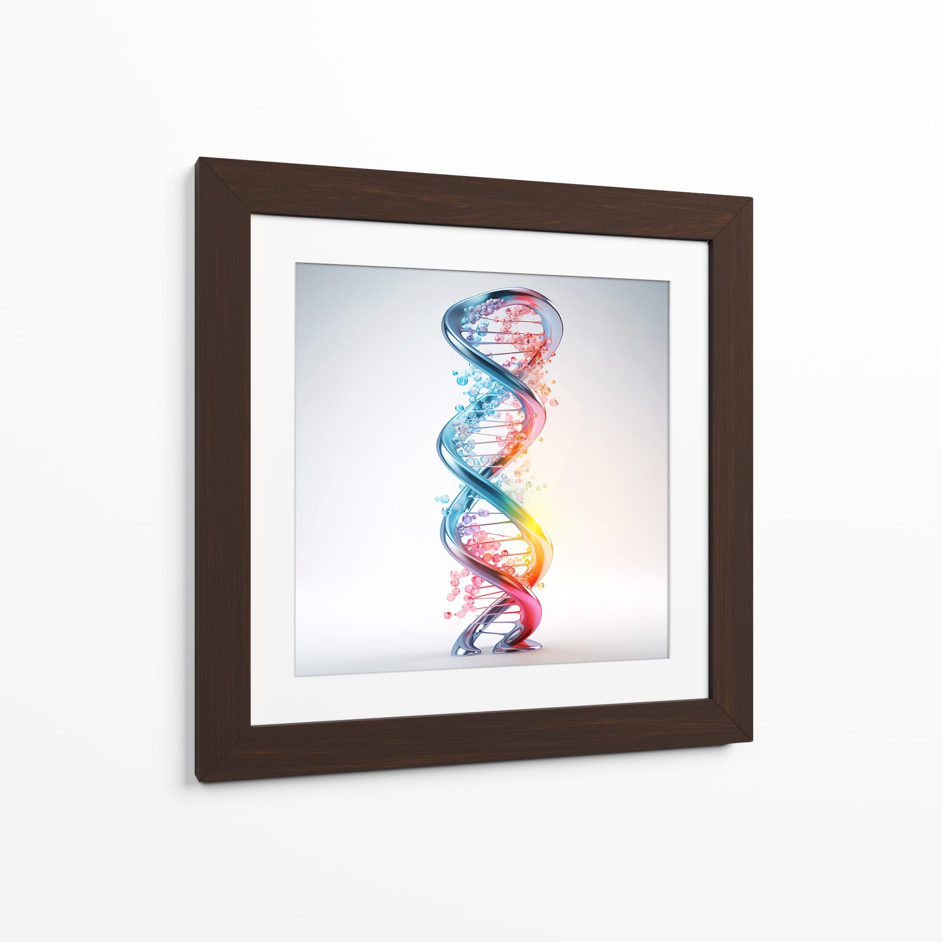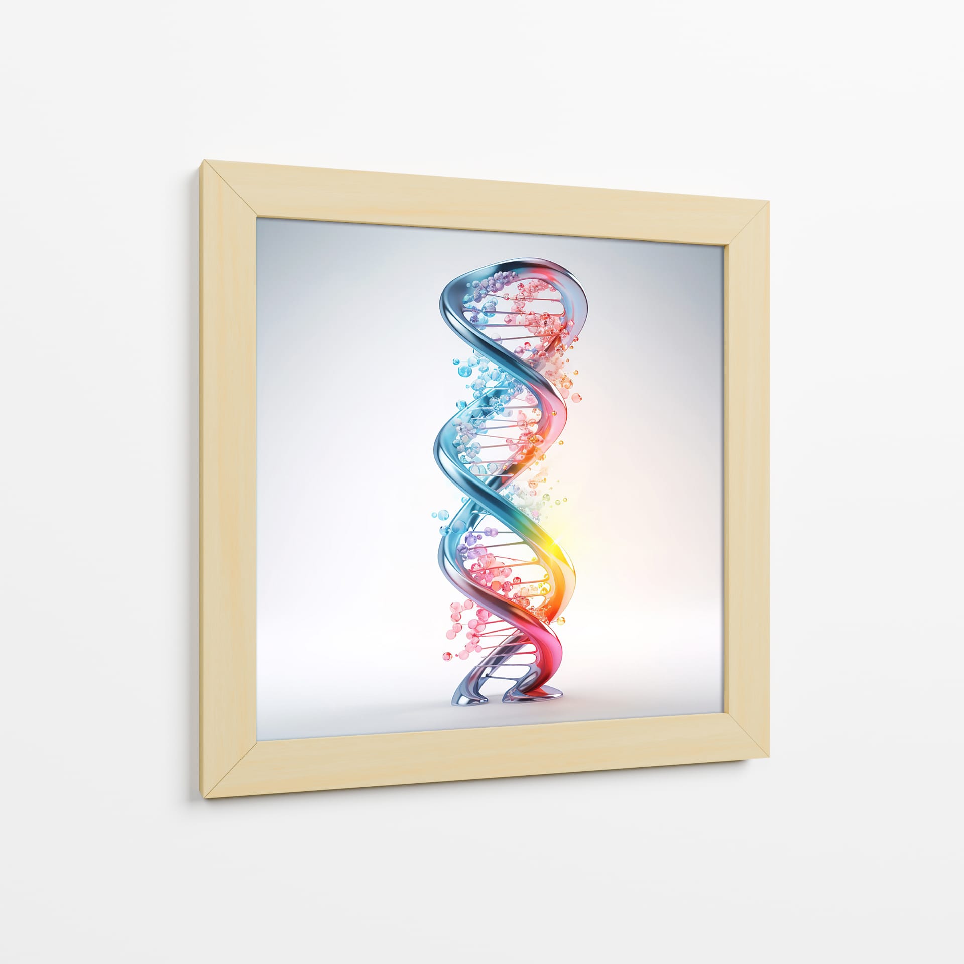 Adéntrate en el fascinante mundo de la ciencia y la vida con el cuadro decorativo "ADN" de Cecilia Flores. Esta obra de arte digital captura la icónica doble hélice, representando la esencia misma de la existencia en una explosión de color y forma. La espiral tridimensional, detallada con esferas que simulan las bases nitrogenadas, irradia un brillo cautivador. Una paleta de colores vibrantes, que transita del azul profundo al rojo ardiente a través de tonos rosados y naranjas, evoca dinamismo y energía, mientras que las pequeñas burbujas dispersas añaden un toque etéreo y de misterio. El fondo sutil y luminoso permite que la estructura del ADN sea el foco principal, creando un contraste visual impactante. Este cuadro decorativo es perfecto para espacios que buscan un toque de inspiración científica o un elemento moderno y conceptual. Ideal para oficinas, estudios de investigación, o como un punto focal educativo y estético en salas de estar y dormitorios contemporáneos. Añade una pieza que celebra el intrincado diseño de la vida, generando conversaciones y admiración.
