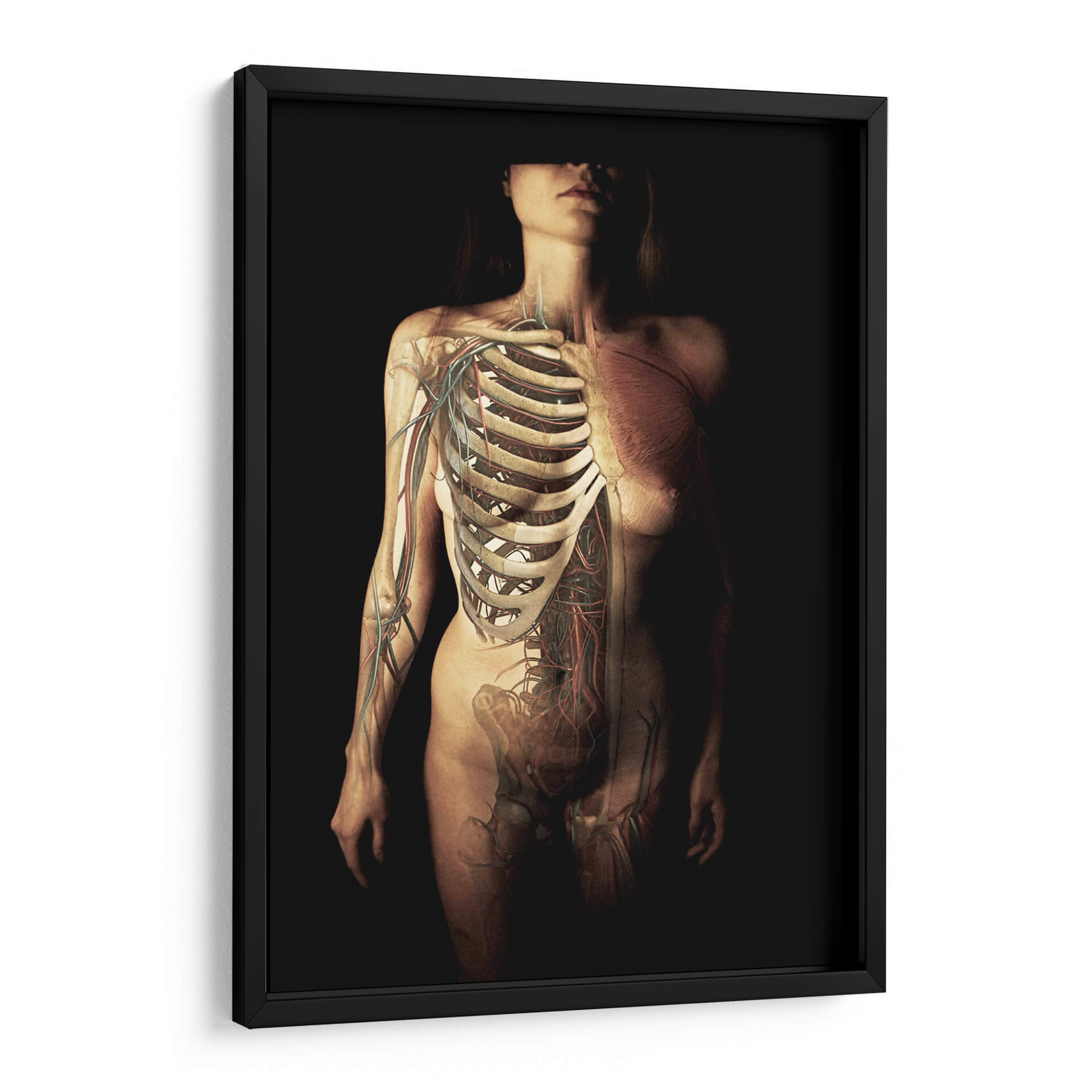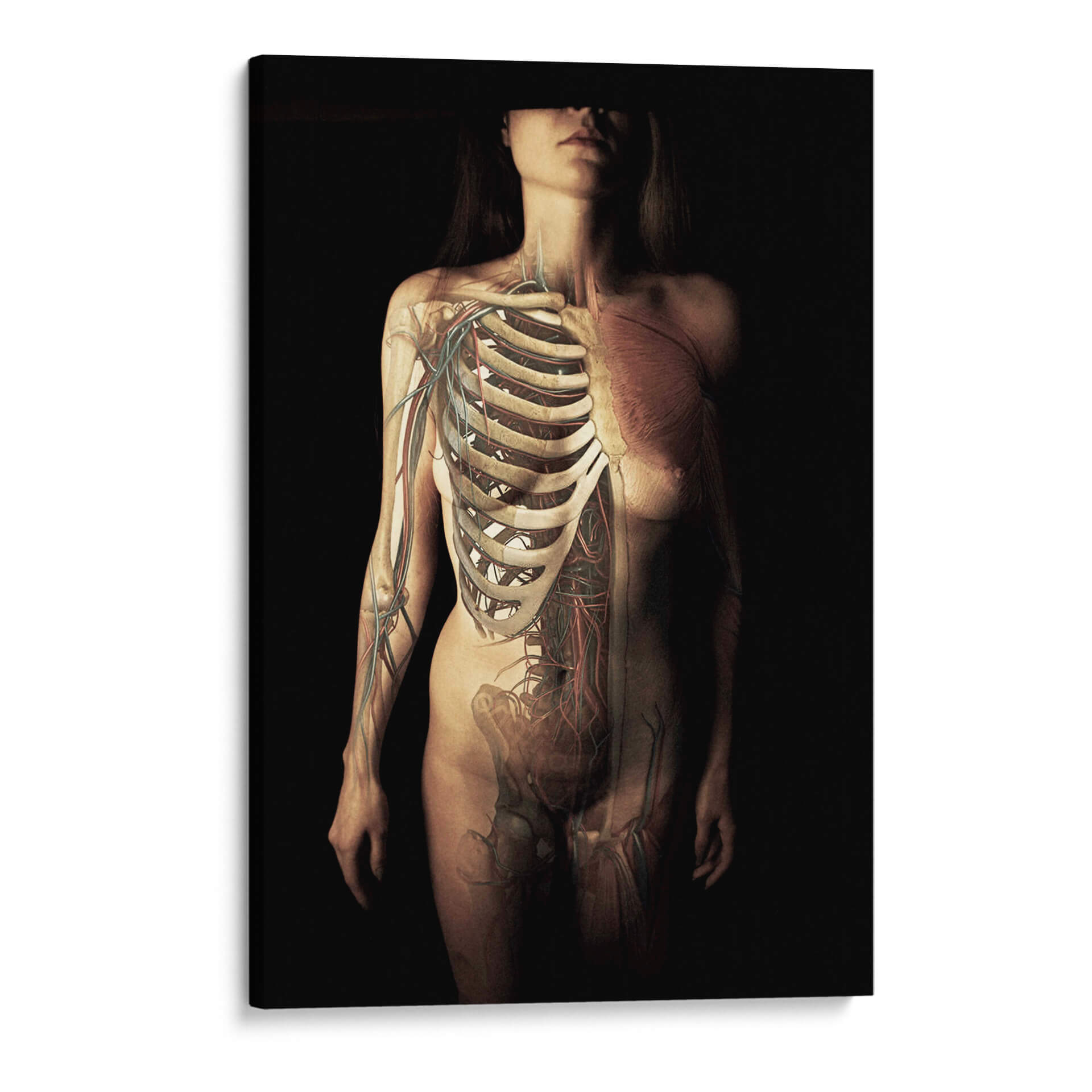 Sumérgete en la fascinante dualidad de la existencia humana con este impactante cuadro decorativo de Bogdan Bouşcă, titulado "Intitulado". Esta obra maestra visual trasciende la mera representación para explorar la intrincada arquitectura del cuerpo, superponiendo la delicada red de venas y la robusta estructura ósea sobre la forma femenina. El contraste entre lo vulnerable y lo fuerte, lo visible y lo oculto, crea una atmósfera de profunda reflexión y admiración por la complejidad de la vida. La paleta de colores, dominada por tonos terrosos y sutiles matices de rojo y azul, aporta una sensación de realismo y dramatismo, mientras que la iluminación selectiva resalta los detalles anatómicos, generando un juego de luces y sombras que añade profundidad y misterio. Es una pieza que invita a la contemplación, ideal para espacios que buscan un toque de sofisticación intelectual y una conexión con la ciencia y el arte. Perfecto para una oficina, estudio o sala de estar moderna, este cuadro decorativo estimulará la conversación y la apreciación de la forma humana en su máxima expresión.