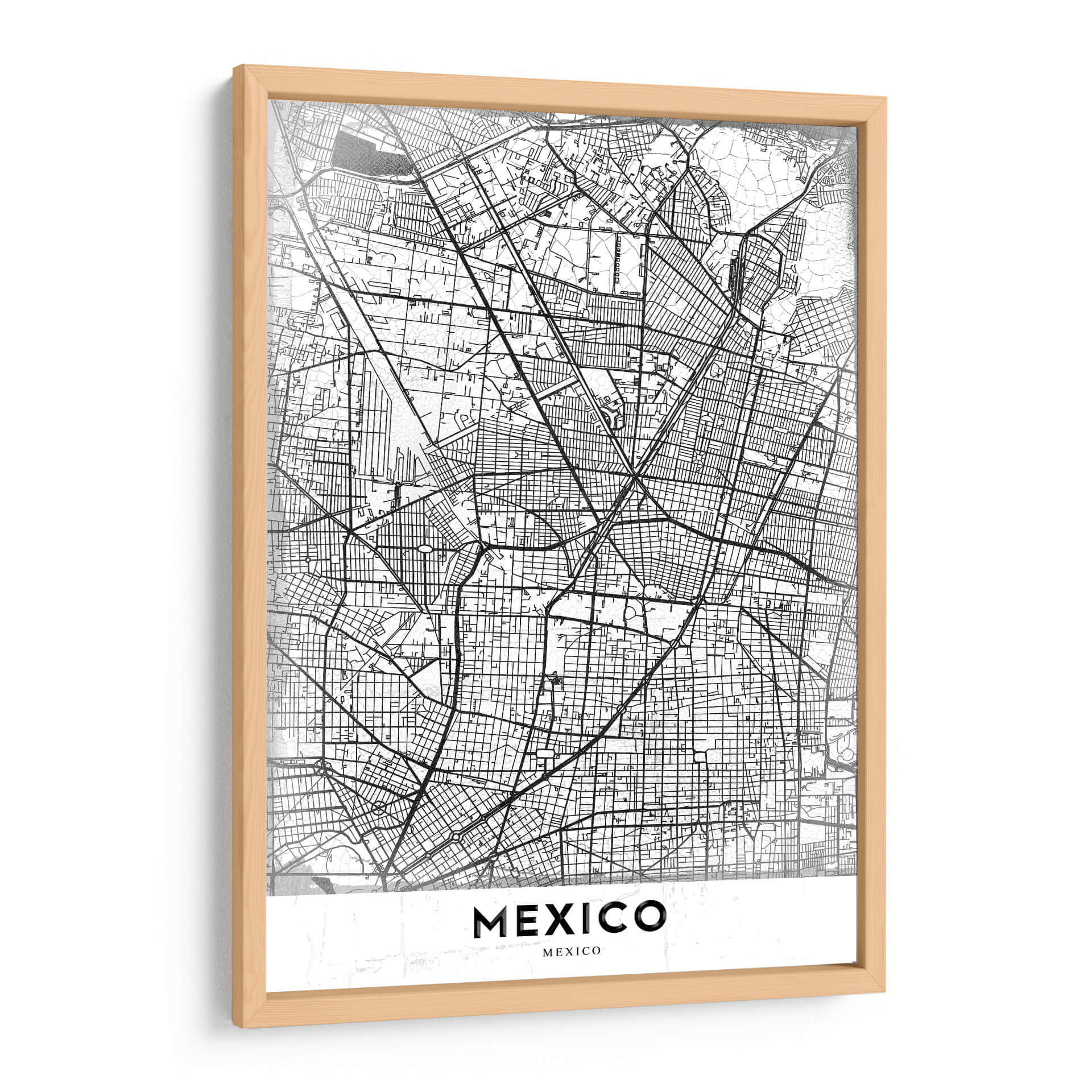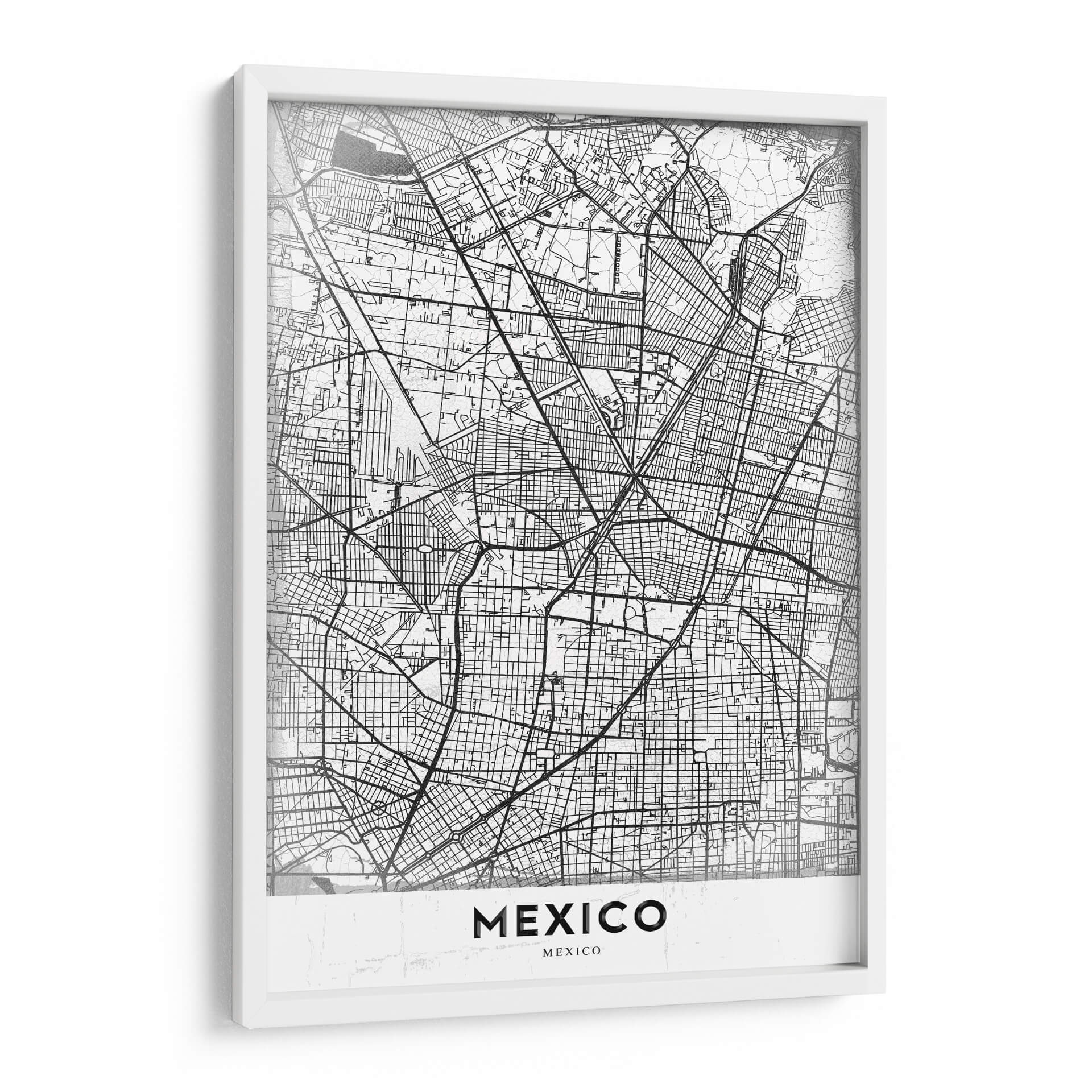 Este cuadro decorativo de México en blanco y negro, titulado "México, Blanco" por StudioSix, es una obra de arte contemporánea que captura la intrincada red urbana de la Ciudad de México. El diseño se asemeja a un mapa detallado, con finas líneas negras que delinean calles, avenidas y barrios, creando un patrón visualmente fascinante. La paleta monocromática aporta una sensación de sofisticación y modernidad, permitiendo que esta pieza se integre a la perfección en una amplia variedad de estilos de decoración, desde el minimalista hasta el industrial. La composición centralizada y la claridad del diseño lo convierten en un punto focal atractivo para cualquier espacio. Ideal para aquellos que aprecian la arquitectura, la cartografía o que tienen una conexión personal con la vibrante capital mexicana. Este cuadro decorativo es perfecto para añadir un toque de elegancia urbana a tu sala de estar, oficina o cualquier habitación que busque una declaración de estilo distintiva y contemporánea. La ausencia de color permite que la textura y la estructura del diseño tomen protagonismo, ofreciendo una experiencia visual rica y detallada que invita a la contemplación.