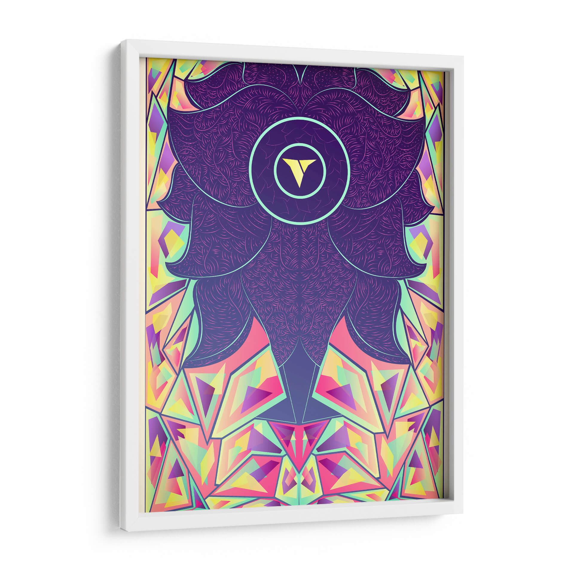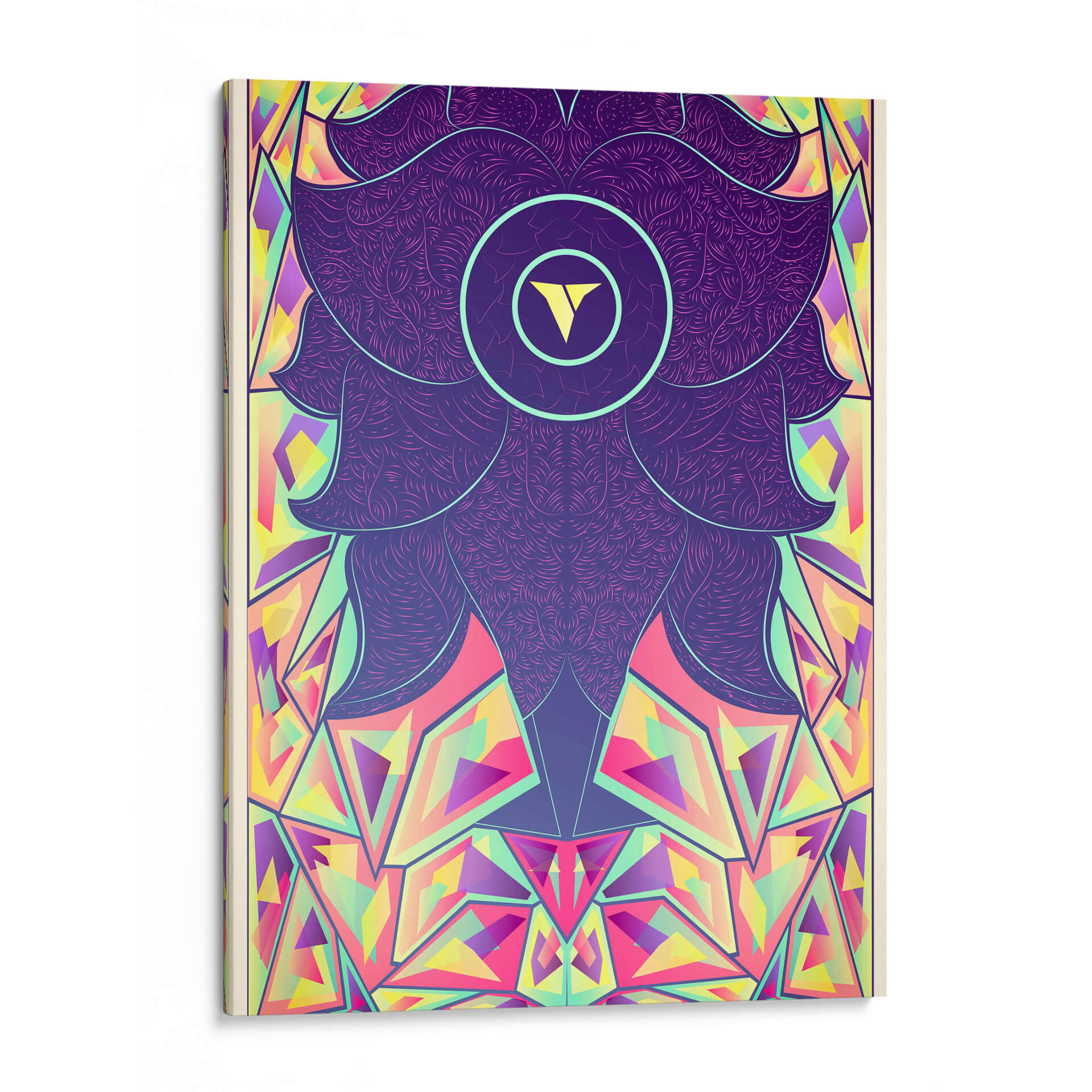 Sumérgete en un universo de color y forma con "LEAVES 714", una obra de arte digital vibrante del artista Nix. Esta pieza cautiva con su intrincado diseño simétrico, dominado por una paleta de colores audaces que fusiona púrpuras profundos con toques eléctricos de rosa, amarillo, verde menta y azul. La composición evoca una sensación de energía y modernidad, con formas geométricas entrelazadas que crean patrones hipnotizantes. La sección superior presenta un diseño orgánico y estilizado, reminiscente de hojas o plumas, enmarcado por un círculo brillante, mientras que la parte inferior se descompone en una cascada de cristales facetados y poligonales. "LEAVES 714" es ideal para espacios que buscan un toque contemporáneo y vanguardista, como salas de estar, oficinas o estudios creativos. Su complejidad visual y su vibrante cromatismo lo convierten en un punto focal que inspira conversación y estimula la imaginación. Añade un toque de audacia artística a tu decoración con este cuadro decorativo único, perfecto para quienes aprecian el arte abstracto y las explosiones de color. Transforma tu pared en una declaración de estilo y modernidad con esta pieza excepcional.
