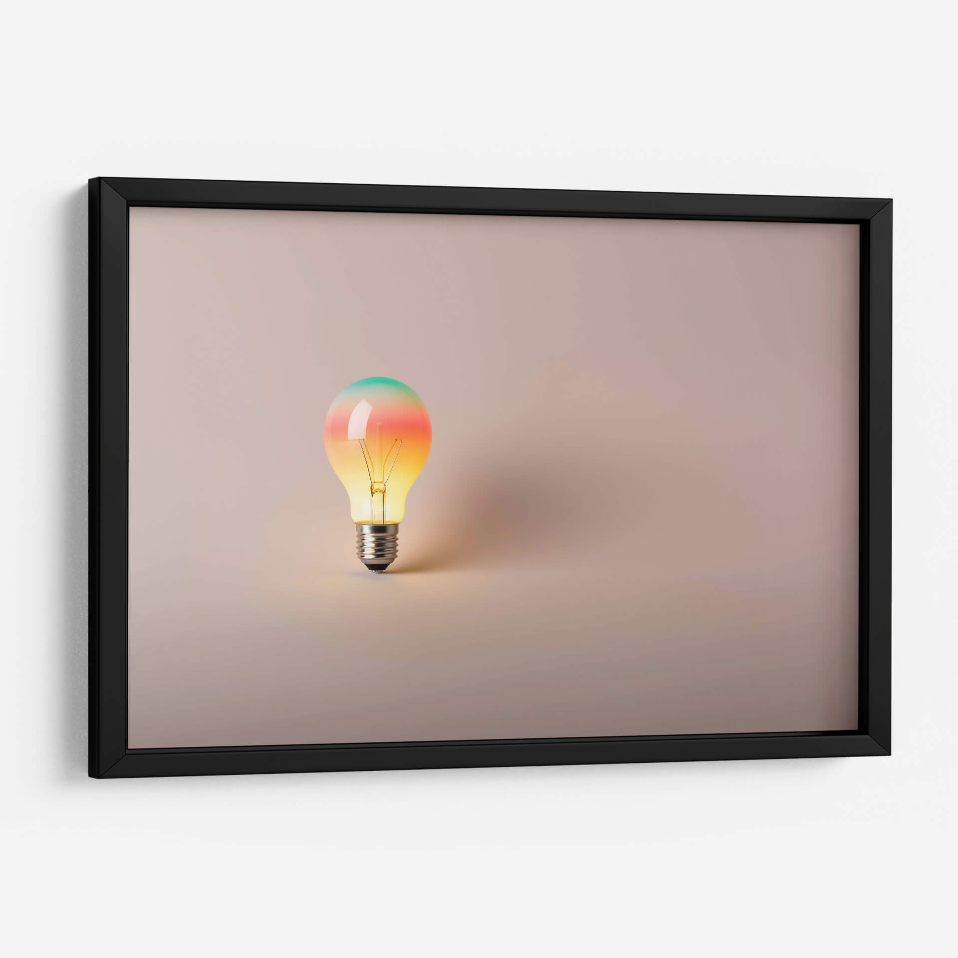 Ilumina tu espacio con 'Mi Idea - 10', una obra de arte digital que captura la esencia de la creatividad y la inspiración. Este cuadro decorativo presenta una bombilla clásica, un símbolo universal de las nuevas ideas, bañada en una gradación de colores vibrantes que transitan del cálido amarillo y naranja a un refrescante verde y turquesa. La composición minimalista, con la bombilla como protagonista sobre un fondo neutro y suave, permite que la explosión de color sea el foco principal, evocando una atmósfera de optimismo y dinamismo. Es una pieza perfecta para añadir un toque moderno y conceptual a cualquier habitación, ya sea en tu hogar u oficina. Imagina cómo esta imagen inspiradora puede transformar tu sala de estar, estudio o dormitorio, recordándote constantemente el poder de una idea brillante. Ideal para aquellos que buscan arte contemporáneo que sea a la vez estéticamente agradable y conceptualmente rico, 'Mi Idea - 10' es más que una simple decoración; es una invitación a la innovación y la reflexión.