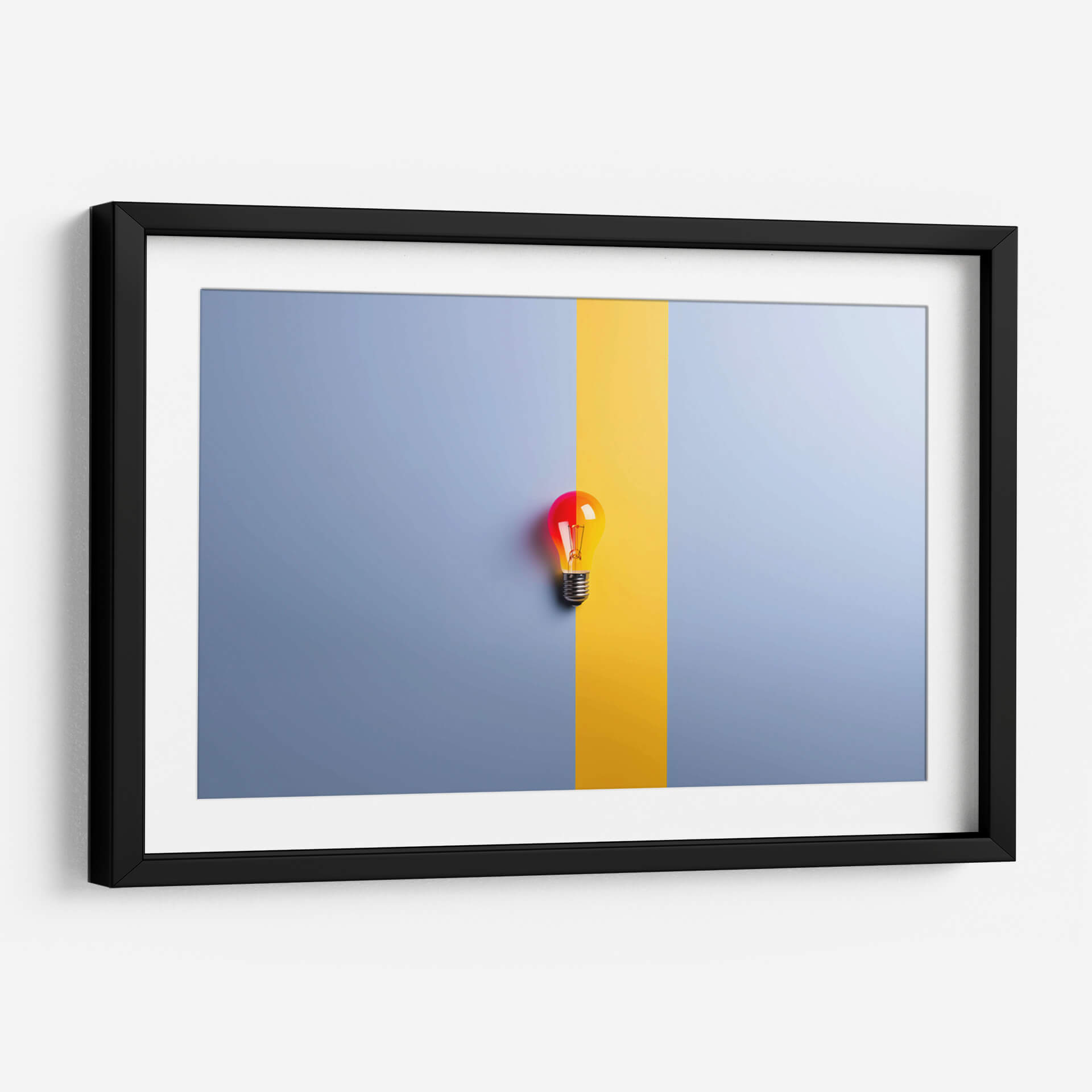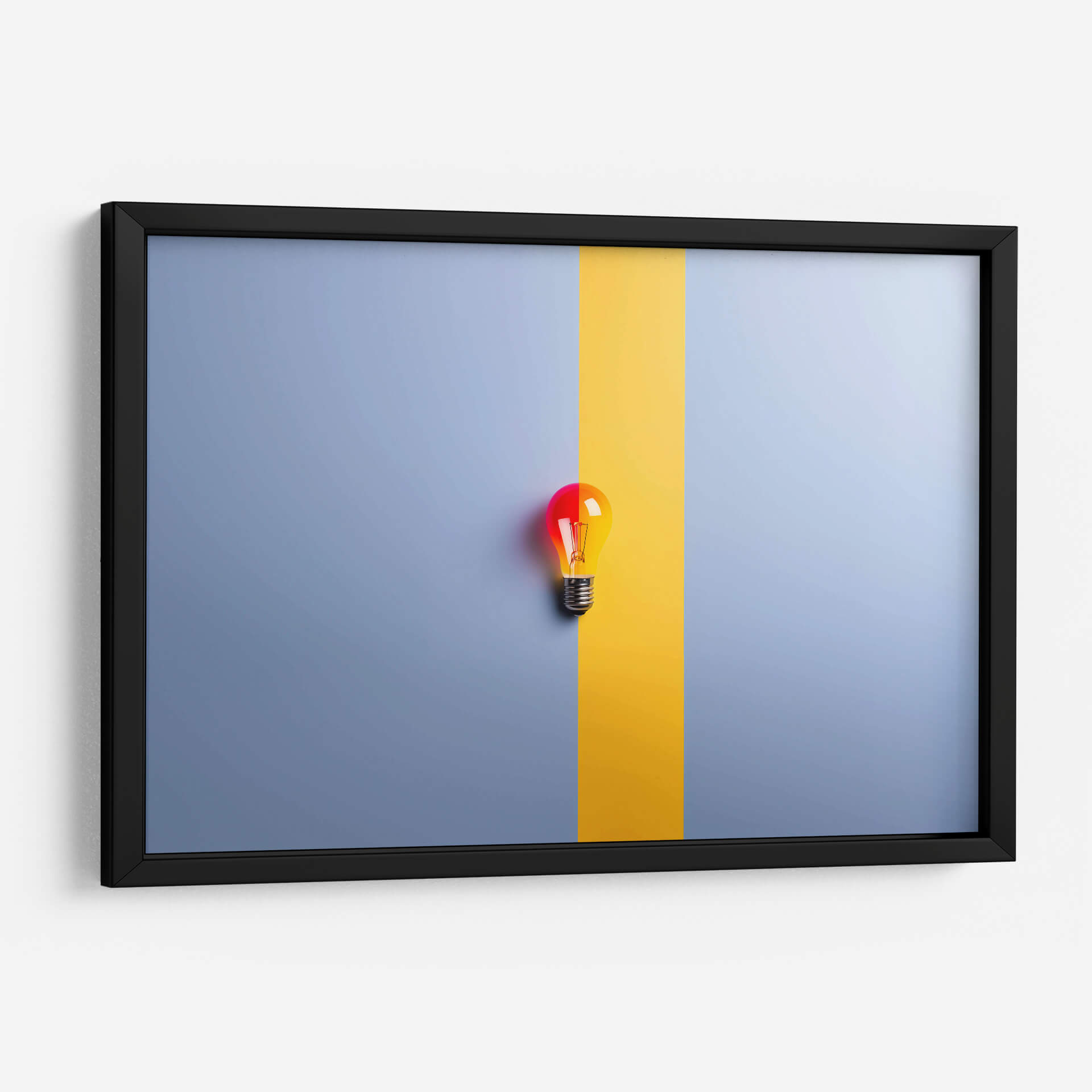 Captura la esencia de la innovación y la originalidad con "Mi Idea - 6", una obra de arte contemporáneo que redefine el concepto de inspiración. Esta pieza visualmente impactante presenta una bombilla icónica, dividida en vibrantes tonos de rojo y amarillo, suspendida contra un fondo minimalista de suaves tonos grises y una audaz franja central de color amarillo mostaza. La composición, deliberadamente simple pero poderosa, invita a la reflexión sobre la chispa creativa y el nacimiento de nuevas ideas. Los colores, ricos y contrastantes, generan una energía dinámica que atrae la mirada y estimula la imaginación, haciendo de este cuadro decorativo un punto focal cautivador para cualquier espacio. Su estilo moderno y conceptual lo convierte en la elección perfecta para oficinas, estudios creativos o cualquier rincón de tu hogar que busque un toque de originalidad y optimismo. "Mi Idea - 6" no es solo una decoración, es un recordatorio visual del potencial ilimitado de la mente humana y la belleza de la singularidad. Ideal para quienes buscan arte que hable de progreso, creatividad y la búsqueda constante de la excelencia, esta obra de DeLaVegaGaming infundirá tu entorno con una atmósfera de inspiración y determinación.