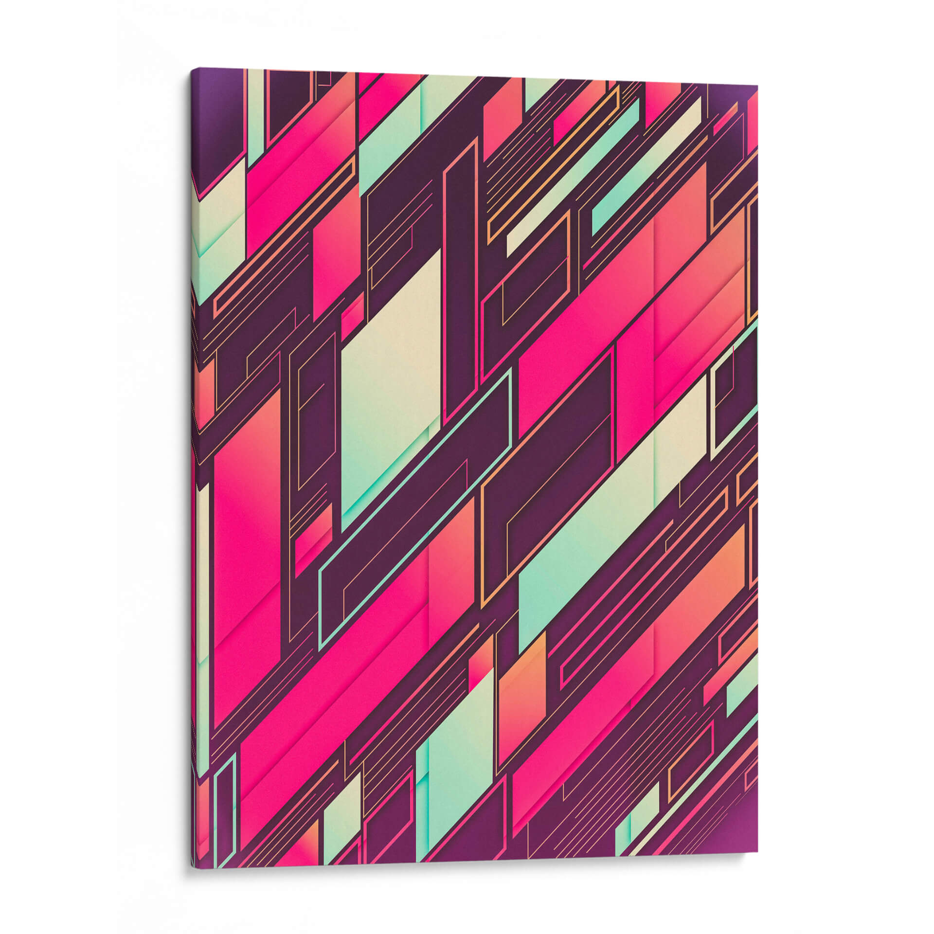 Sumérgete en la vibrante y geométrica composición de "RAIN II" de Nix, una obra de arte contemporáneo que desafía la percepción con su audaz uso del color y la forma. Este cuadro decorativo abstracto presenta un intrincado patrón de líneas y planos diagonales que se entrelazan, creando una sensación de movimiento y profundidad dinámica. La paleta de colores, dominada por intensos tonos de fucsia, violeta y toques de verde menta y naranja pálido, genera una atmósfera energética y moderna. Cada elemento está delineado con precisión, aportando un aire de sofisticación y orden al diseño, a pesar de su complejidad visual. La obra evoca una sensación de modernidad y vanguardia, ideal para espacios que buscan una declaración audaz y artística. "RAIN II" es perfecto para añadir un toque de color y carácter a una sala de estar contemporánea, un estudio de diseño o una oficina moderna, transformando cualquier pared en un punto focal cautivador. Su diseño abstracto y geométrico lo convierte en una pieza versátil que complementa una amplia gama de estilos decorativos, desde el minimalista hasta el ecléctico, invitando a la contemplación y la admiración.