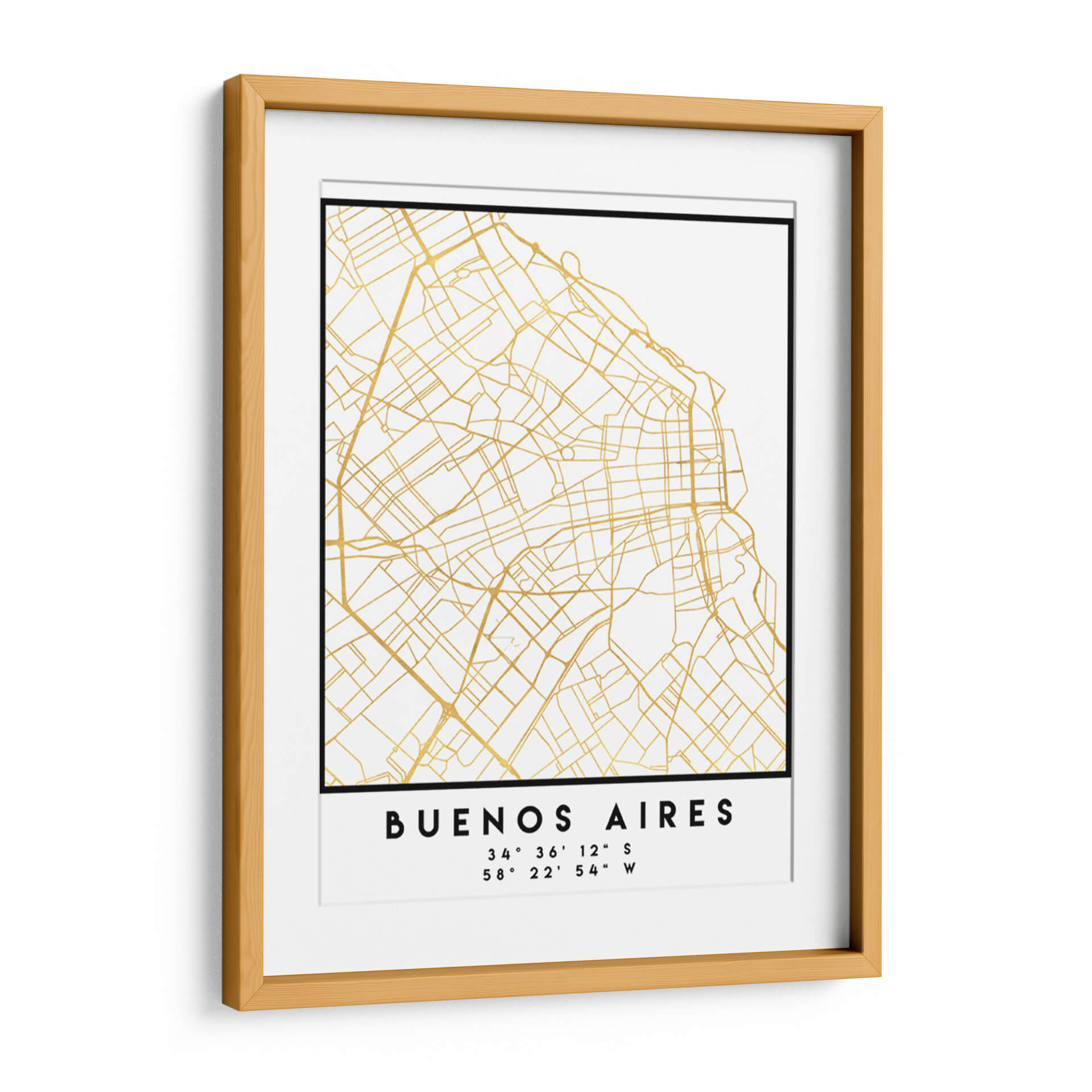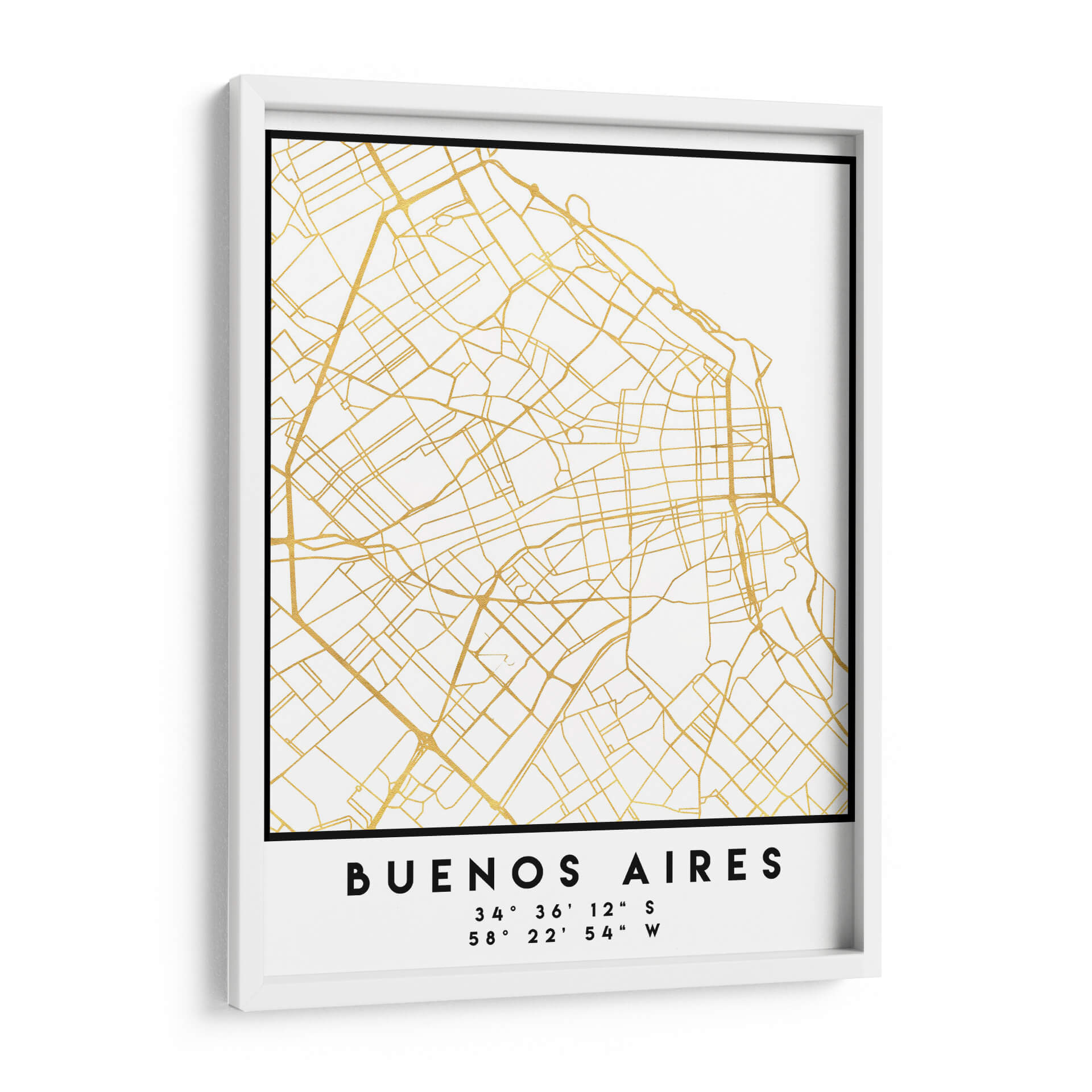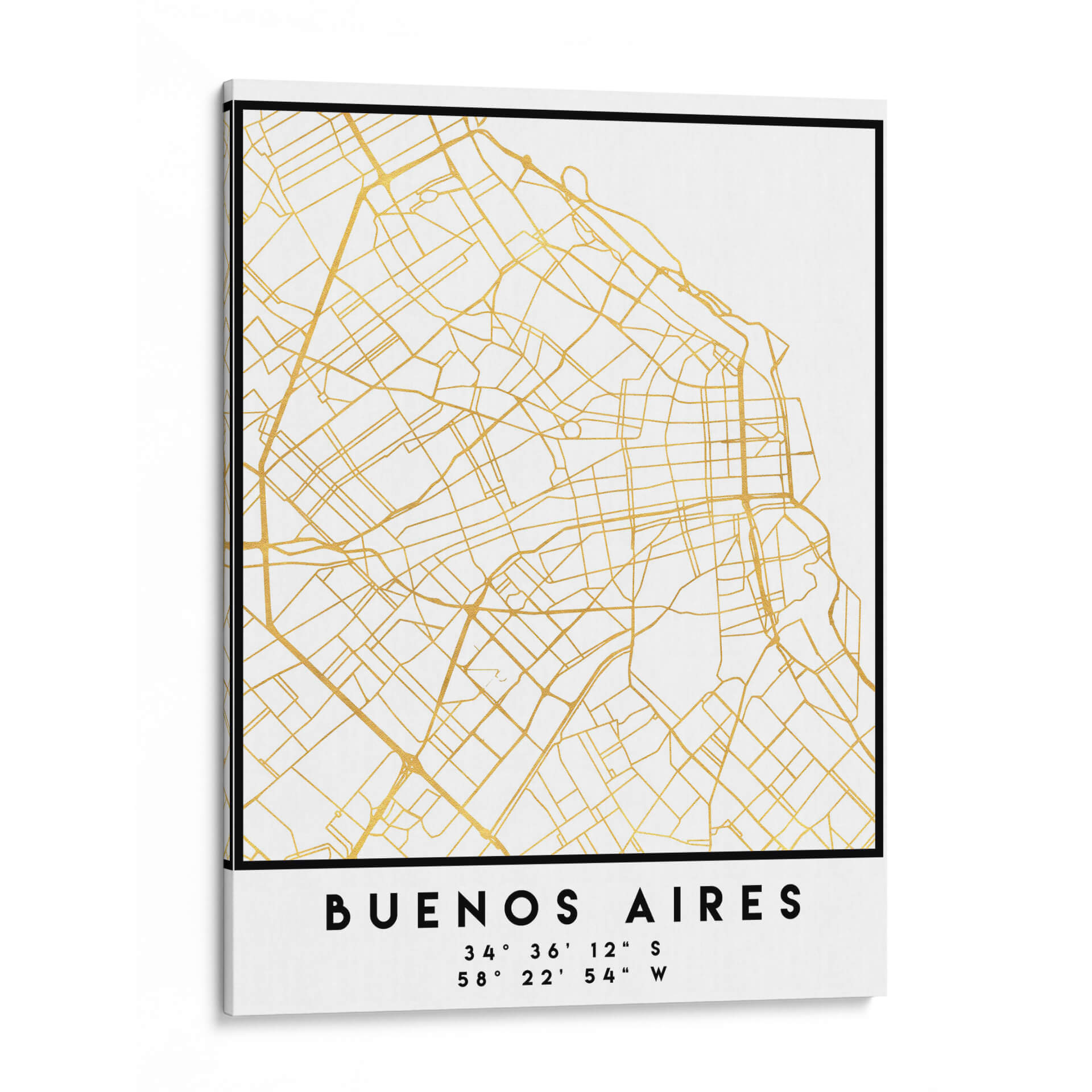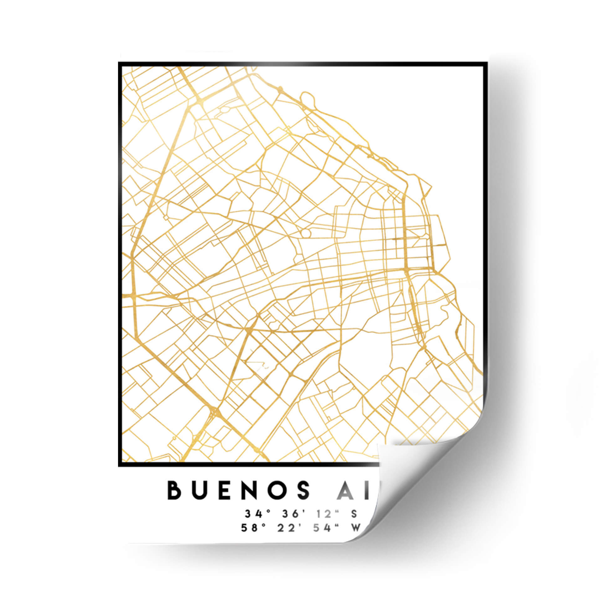 Captura la esencia de la vibrante capital argentina con este elegante cuadro decorativo de Buenos Aires. La obra presenta un detallado mapa de la ciudad, con sus calles y avenidas trazadas en un sofisticado color dorado sobre un fondo blanco nítido. Este diseño minimalista y contemporáneo, titulado 'Buenos Aires, 1 Mapas 06' por el artista Emiliano Deificus, evoca una sensación de orden y conexión urbana. Las líneas doradas, que simulan las arterias de la ciudad, añaden un toque de lujo y distinción, creando un punto focal sofisticado para cualquier espacio. Perfecto para quienes aman los viajes, la geografía o simplemente aprecian el diseño moderno, este cuadro es ideal para añadir un aire de intriga y elegancia a tu sala de estar, oficina o cualquier rincón que necesite un toque cosmopolita. Su paleta de colores neutros lo hace increíblemente versátil, combinando sin esfuerzo con una amplia gama de estilos decorativos, desde el escandinavo hasta el industrial. Este mapa estilizado de Buenos Aires no es solo una pieza decorativa, sino una declaración de estilo y un homenaje a una de las ciudades más fascinantes del mundo.