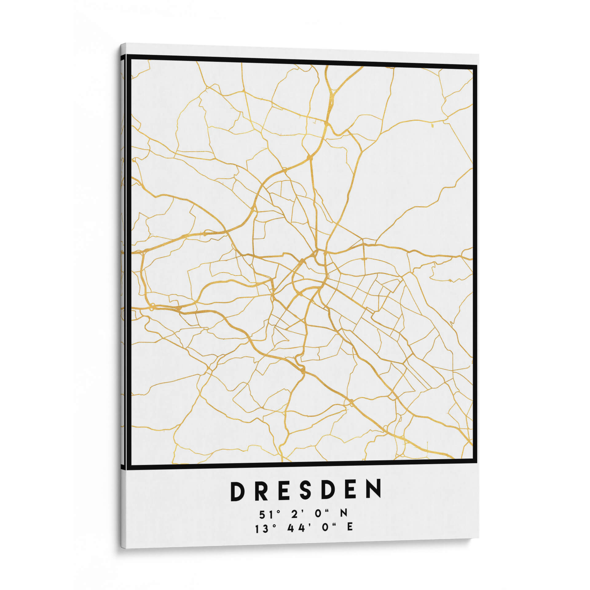 Transforma tu espacio con este cautivador cuadro decorativo de Dresden, una obra de arte contemporáneo que combina la elegancia del diseño cartográfico con un toque de sofisticación. La composición presenta un mapa estilizado de la ciudad de Dresden, delineado con intrincadas líneas doradas sobre un fondo blanco nítido. Este contraste crea un efecto visual dinámico y moderno, atrayendo la mirada hacia los detalles de la red urbana. El estilo minimalista y abstracto de la pieza la hace increíblemente versátil, capaz de integrarse a la perfección en una amplia gama de decoraciones, desde interiores modernos y minimalistas hasta espacios más clásicos que buscan un acento contemporáneo. Las coordenadas geográficas grabadas en la parte inferior añaden un toque de autenticidad y personalidad, rindiendo homenaje a la ciudad de una manera única. Este cuadro decorativo es ideal para infundir un sentido de orden, exploración y conexión en tu hogar u oficina. Imagina cómo este mapa de Dresden, con su lujoso detalle dorado, se convertiría en un punto focal de conversación, aportando un aire de aventura y cultura a tus paredes. Es una pieza que habla de viajes, de la belleza intrínseca de la planificación urbana y de la conexión humana a través de las redes de la vida.
