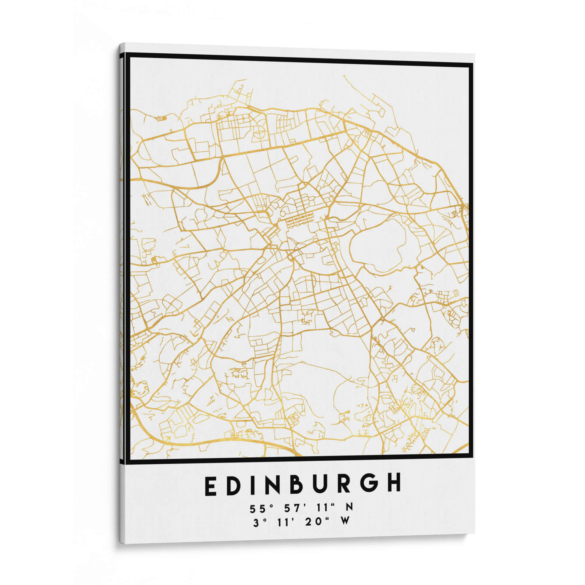 Sumérgete en la esencia de la capital escocesa con este cautivador cuadro decorativo que representa un mapa estilizado de Edimburgo. La obra, titulada "Edimburgo, 1 Mapas 2 37" y creada por el artista Emiliano Deificus, presenta un diseño minimalista y elegante donde las calles de la ciudad se trazan con líneas doradas sobre un fondo blanco inmaculado. Esta representación cartográfica abstracta evoca una sensación de orden y exploración, perfecta para quienes aprecian la arquitectura urbana y la belleza de la planificación de ciudades. Los detalles intrincados de las vías y los contornos de los edificios se despliegan como un intrincado tapiz, invitando a la contemplación. La paleta de colores, dominada por el contraste del dorado brillante con el blanco puro, aporta un toque de lujo y sofisticación, haciendo que esta pieza sea ideal para cualquier espacio que busque un acento moderno y refinado. Ya sea en una sala de estar, una oficina o un estudio, este cuadro decorativo de Edimburgo servirá como un punto focal intelectual y estético, celebrando la conexión con lugares significativos o el simple amor por el diseño gráfico contemporáneo. Su estilo limpio y contemporáneo asegura que complementará una amplia gama de decoraciones interiores, desde lo más minimalista hasta lo más ecléctico.