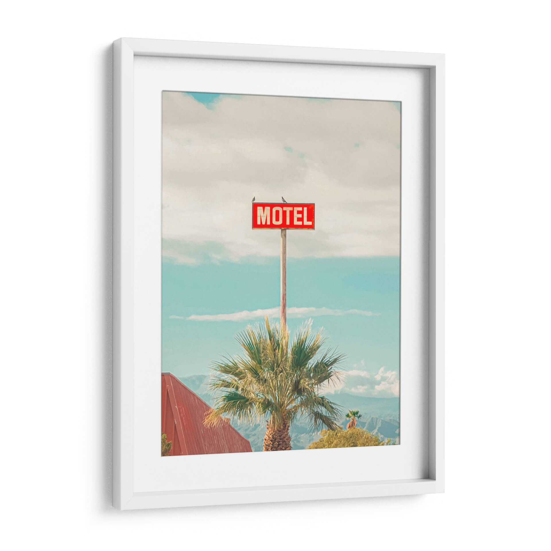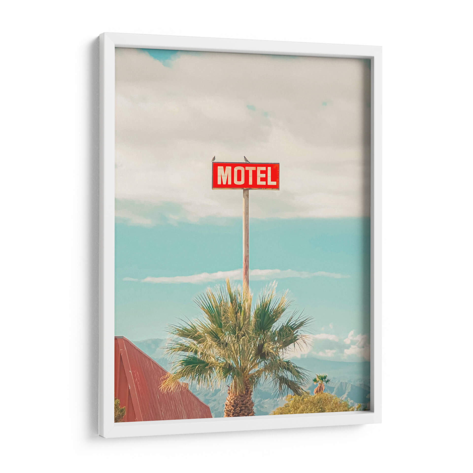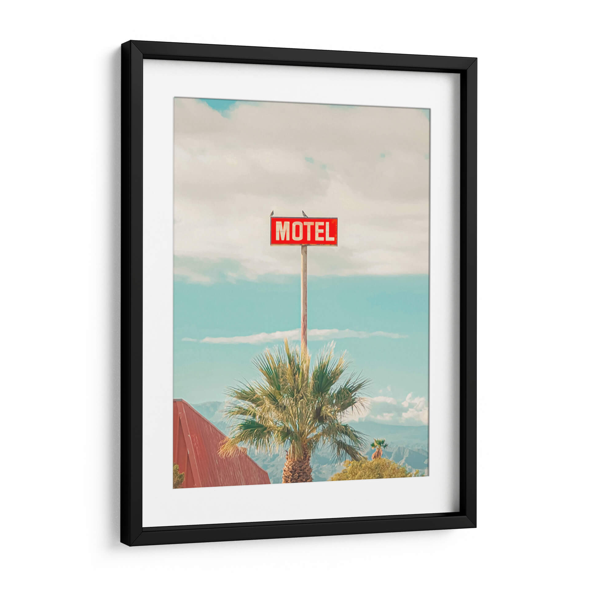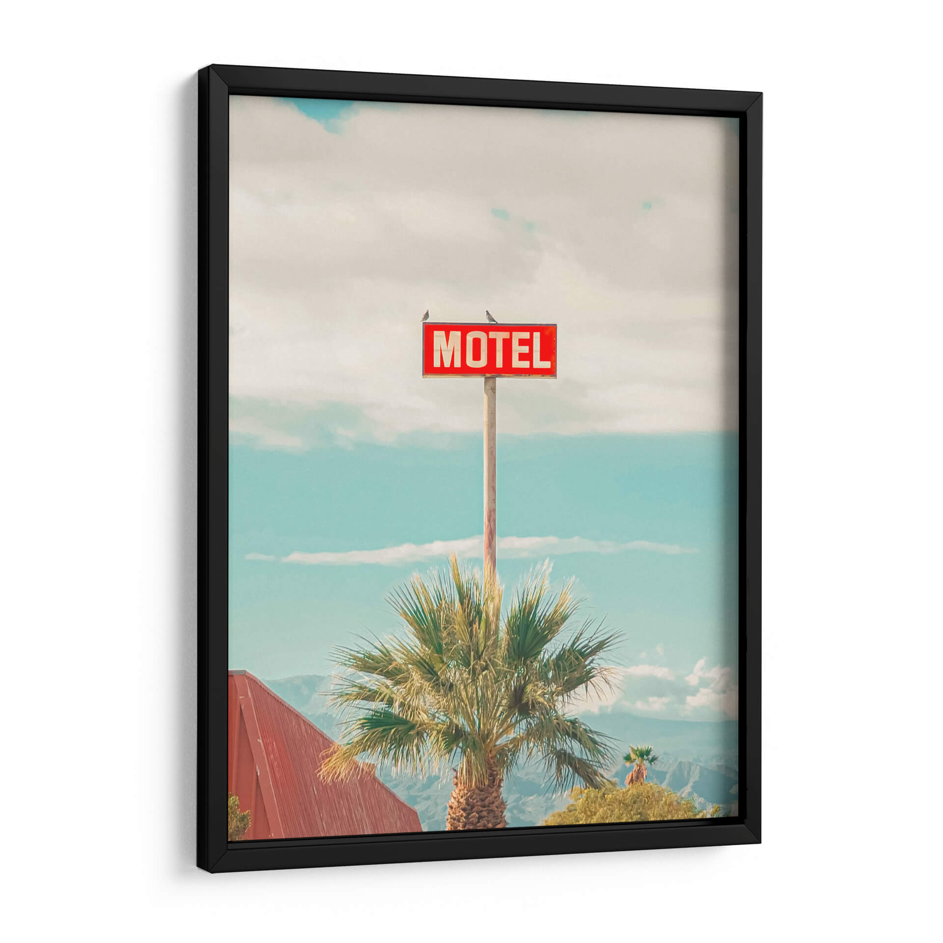 Sumérgete en la atmósfera evocadora de "Este motel es para los pájaros", una obra de Tom Windeknecht que captura la esencia de una escapada americana con un toque nostálgico. La pieza presenta un icónico letrero rojo de "MOTEL" suspendido contra un cielo de tonos pastel, con nubes dispersas y la silueta de montañas distantes. Un detalle encantador son los dos pájaros posados en la parte superior del letrero, añadiendo un toque de vida y peculiaridad a la escena. En primer plano, una exuberante palmera despliega sus hojas, contrastando con la arquitectura de un tejado rojo en la parte inferior, sugiriendo un escenario cálido y un tanto desértico. La paleta de colores, dominada por cielos azul claro, nubes grisáceas, verdes vibrantes de la palmera y el rojo intenso del letrero, crea una atmósfera de tranquilidad y aventura a la vez. Este cuadro decorativo es perfecto para aquellos que buscan añadir un aire de misterio, viaje y romance a sus espacios. Ideal para salones modernos, dormitorios acogedores u oficinas con carácter, "Este motel es para los pájaros" invita a la reflexión y a la contemplación, convirtiéndose en un punto focal distintivo que evoca historias y recuerdos de carreteras abiertas y encuentros inesperados.