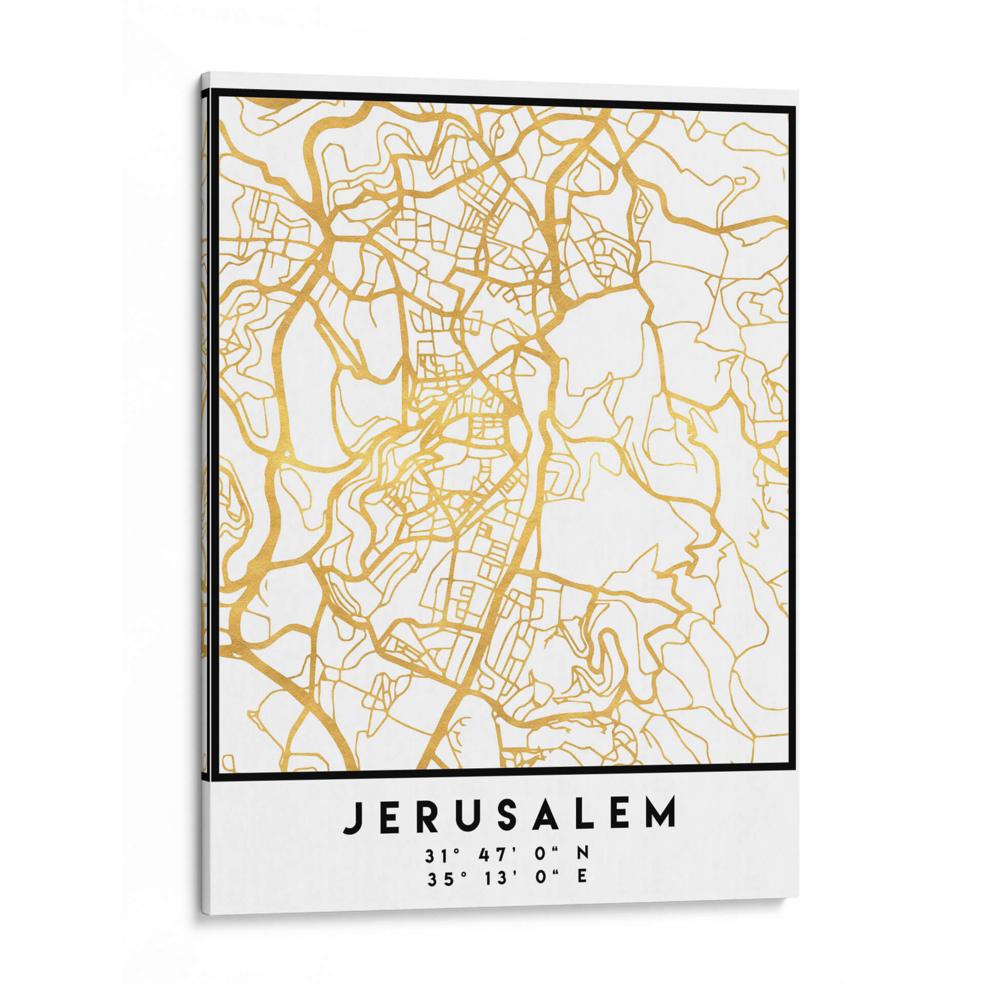 Este elegante cuadro decorativo de Jerusalén presenta un diseño de mapa estilizado en tonos dorados sobre un fondo blanco nítido. Las intrincadas líneas doradas representan las calles y la topografía de la ciudad, creando un patrón visualmente cautivador que evoca tanto la historia como la modernidad. La paleta de colores minimalista, centrada en el contraste del oro y el blanco, aporta un toque de sofisticación y lujo a cualquier espacio. La composición es equilibrada y abstracta, transformando un mapa geográfico en una pieza de arte abstracto contemporáneo. La obra transmite una sensación de orden, descubrimiento y conexión con un lugar emblemático. Ideal para dar un toque de distinción a una sala de estar moderna, un estudio o una oficina, este cuadro decorativo es perfecto para aquellos que aprecian el diseño minimalista, la arquitectura urbana o tienen un vínculo especial con la ciudad de Jerusalén. Su diseño versátil se adapta a una variedad de estilos decorativos, desde el contemporáneo hasta el ecléctico, convirtiéndose en un punto focal que invita a la contemplación y al diálogo.