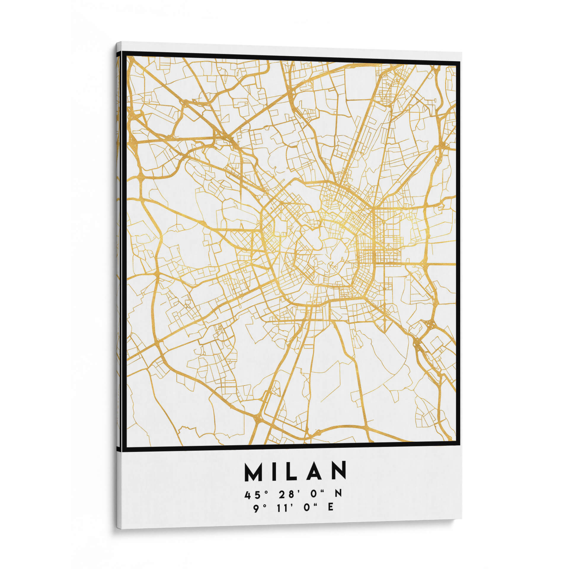 Embellece tu espacio con este exclusivo cuadro decorativo de "Milan, 1 Mapas 62", una obra del artista Emiliano Deificus. Este diseño minimalista y elegante presenta una representación estilizada de las calles de Milán, delineadas en un vibrante tono dorado sobre un fondo blanco puro. La intrincada red de líneas evoca la complejidad y la belleza de la planificación urbana, transformando un mapa geográfico en una pieza de arte abstracto cautivadora. La paleta de colores, dominada por el contraste del dorado y el blanco, aporta un toque de lujo y sofisticación, ideal para complementar decoraciones modernas, contemporáneas o incluso clásicas. Este cuadro decorativo es perfecto para infundir un aire de refinamiento y cosmopolitismo en tu sala de estar, oficina o cualquier espacio que desees realzar con un toque distintivo. Su diseño abstracto lo convierte en un punto focal interesante sin ser abrumador, invitando a la contemplación y añadiendo profundidad a tu decoración. Celebra la esencia de una de las ciudades más icónicas de Italia con esta pieza única que fusiona geografía y arte de manera magistral, creando una atmósfera de elegancia atemporal y aspiración urbana. Ideal para amantes del diseño, viajeros y aquellos que aprecian el arte con un toque geográfico.