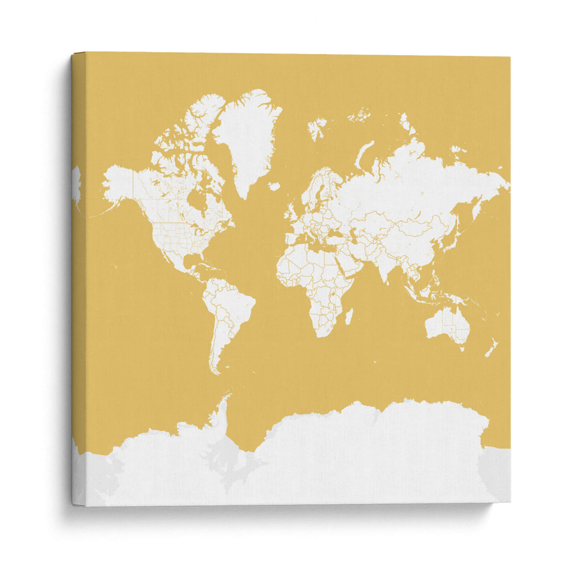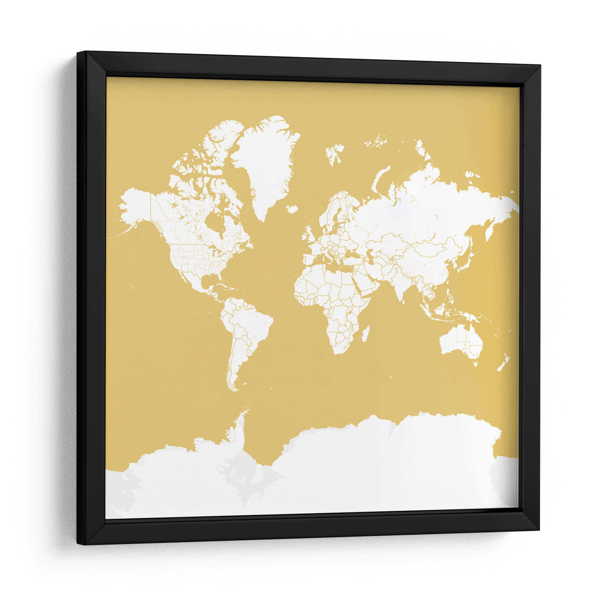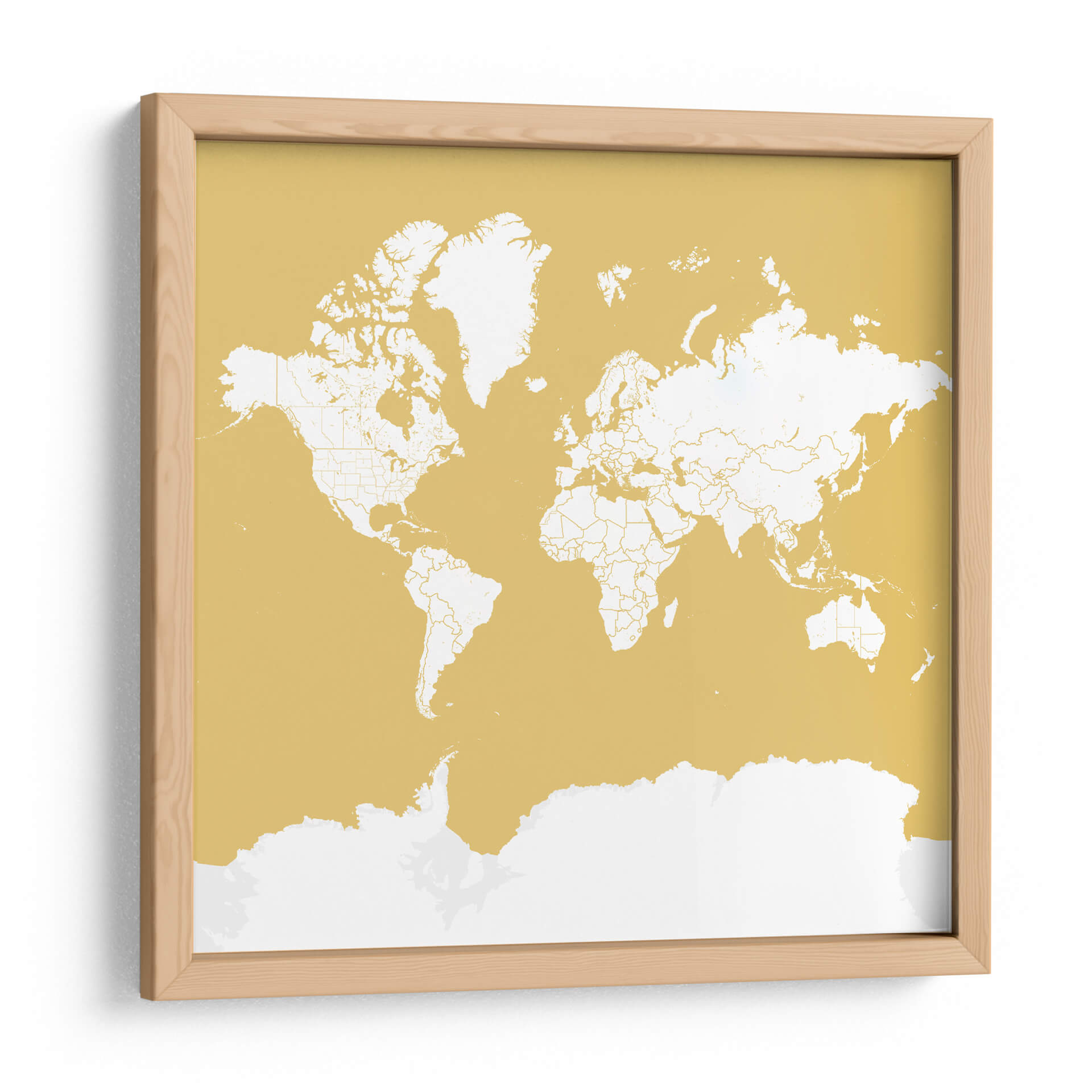 Este cautivador cuadro decorativo presenta una representación estilizada del mapa mundial, destacando la forma de los continentes sobre un fondo de color mostaza vibrante. La paleta de colores, con su contraste entre el ocre cálido y el blanco nítido, evoca una sensación de descubrimiento y aventura. El diseño minimalista y las líneas claras de las fronteras hacen de esta pieza una adición moderna y sofisticada a cualquier espacio. Ideal para inspirar conversaciones y añadir un toque de geografía y estilo a tu hogar u oficina, este mapa mundial es perfecto para los amantes de los viajes, la exploración o simplemente aquellos que aprecian el arte contemporáneo con un giro educativo. Su composición clara y su paleta de colores atractiva lo convierten en un punto focal versátil, capaz de complementar una variedad de estilos decorativos, desde el escandinavo hasta el bohemio o el industrial. Transforma tu pared en un lienzo de inspiración global y deja que este cuadro motive tus próximas aventuras.