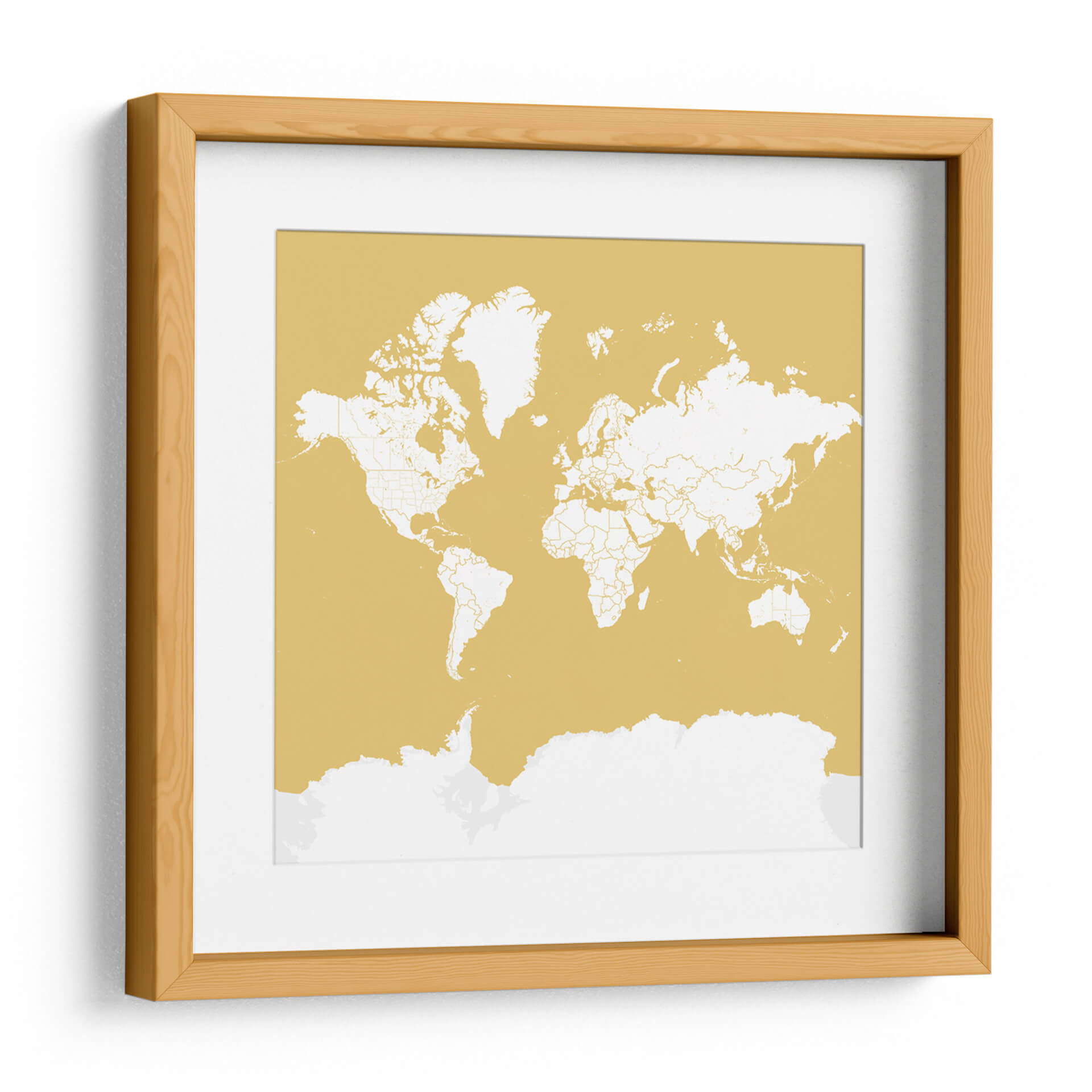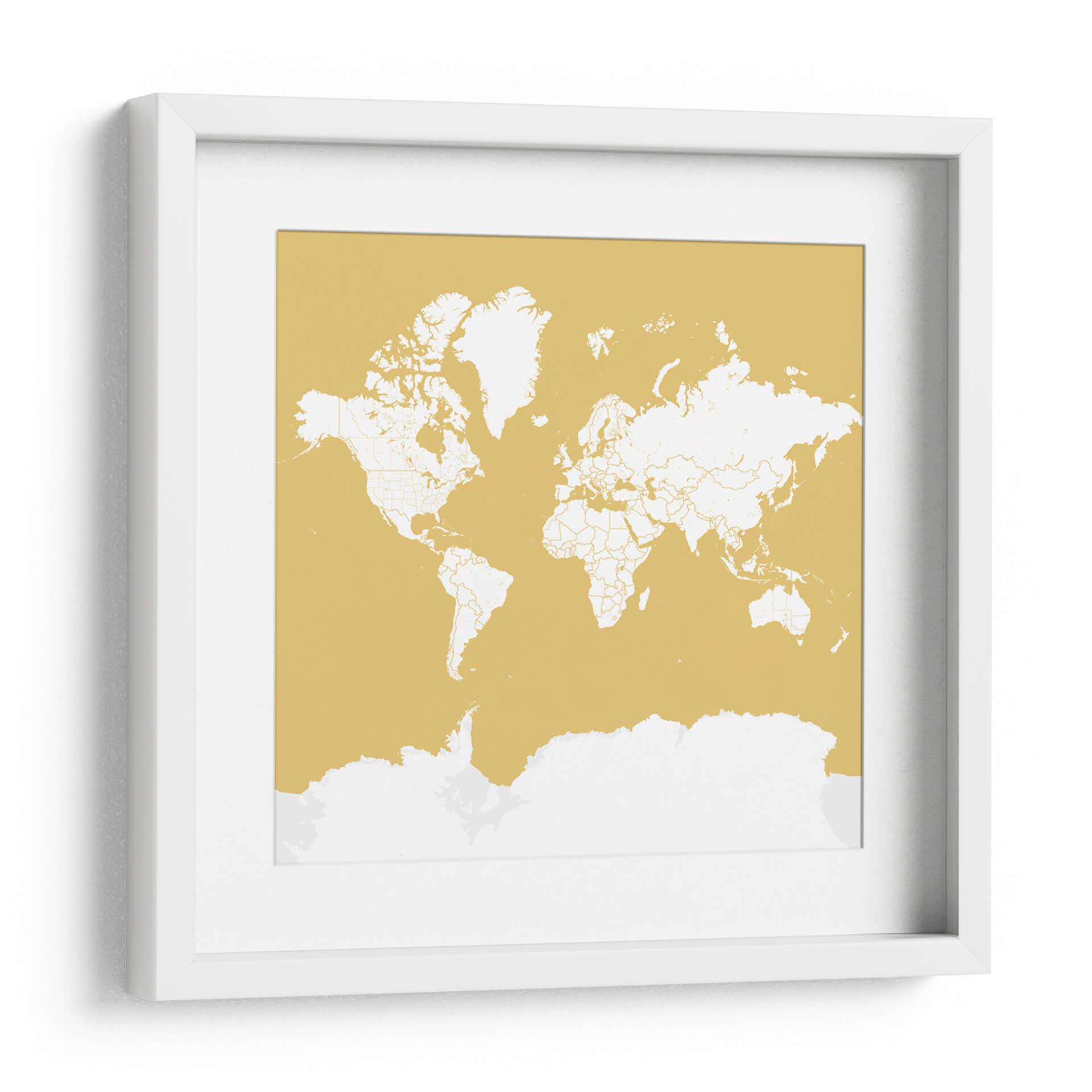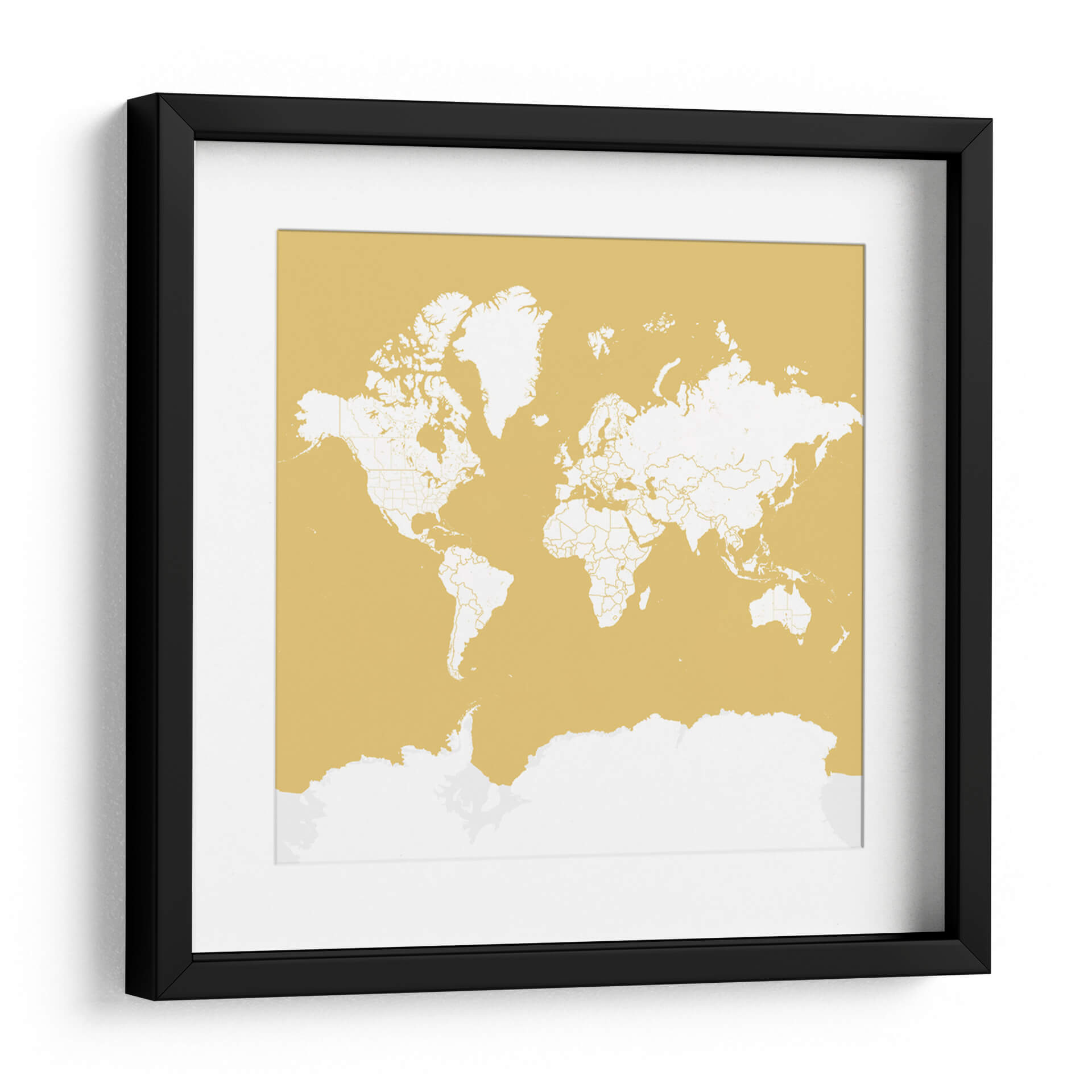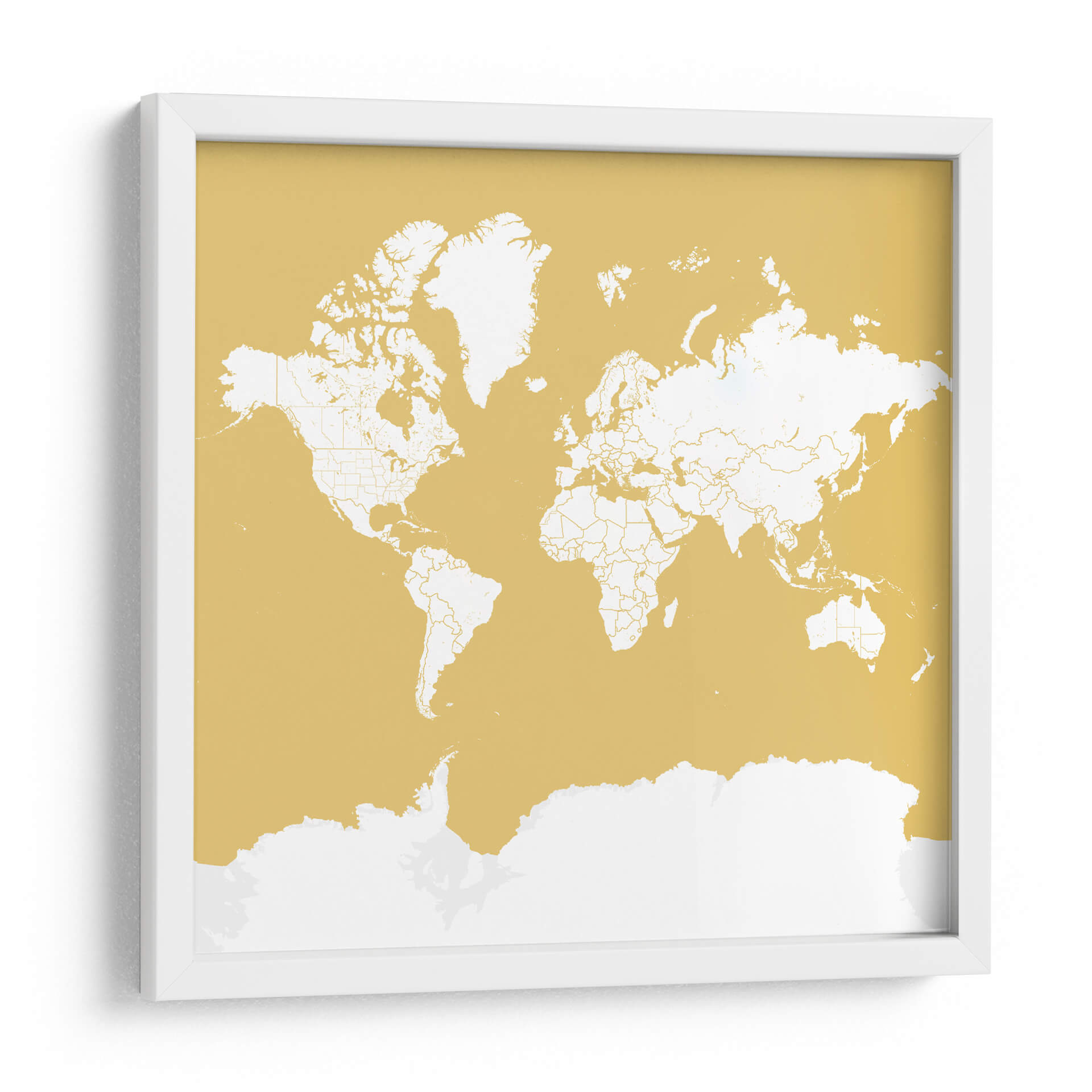 Este cautivador cuadro decorativo presenta una representación estilizada del mapa mundial, destacando la forma de los continentes sobre un fondo de color mostaza vibrante. La paleta de colores, con su contraste entre el ocre cálido y el blanco nítido, evoca una sensación de descubrimiento y aventura. El diseño minimalista y las líneas claras de las fronteras hacen de esta pieza una adición moderna y sofisticada a cualquier espacio. Ideal para inspirar conversaciones y añadir un toque de geografía y estilo a tu hogar u oficina, este mapa mundial es perfecto para los amantes de los viajes, la exploración o simplemente aquellos que aprecian el arte contemporáneo con un giro educativo. Su composición clara y su paleta de colores atractiva lo convierten en un punto focal versátil, capaz de complementar una variedad de estilos decorativos, desde el escandinavo hasta el bohemio o el industrial. Transforma tu pared en un lienzo de inspiración global y deja que este cuadro motive tus próximas aventuras.