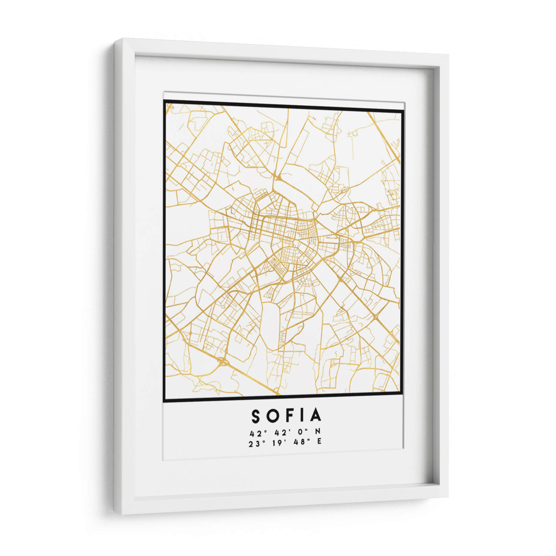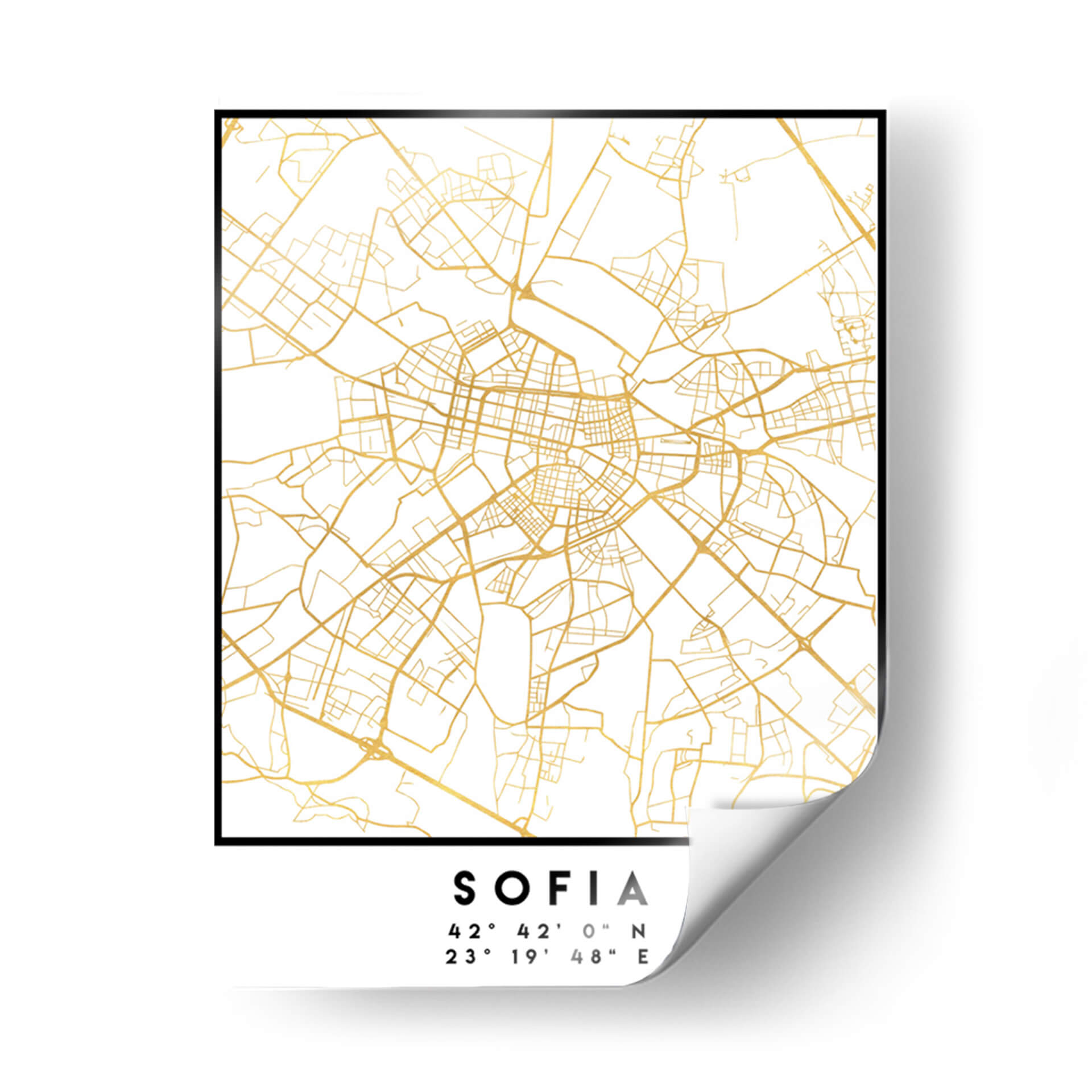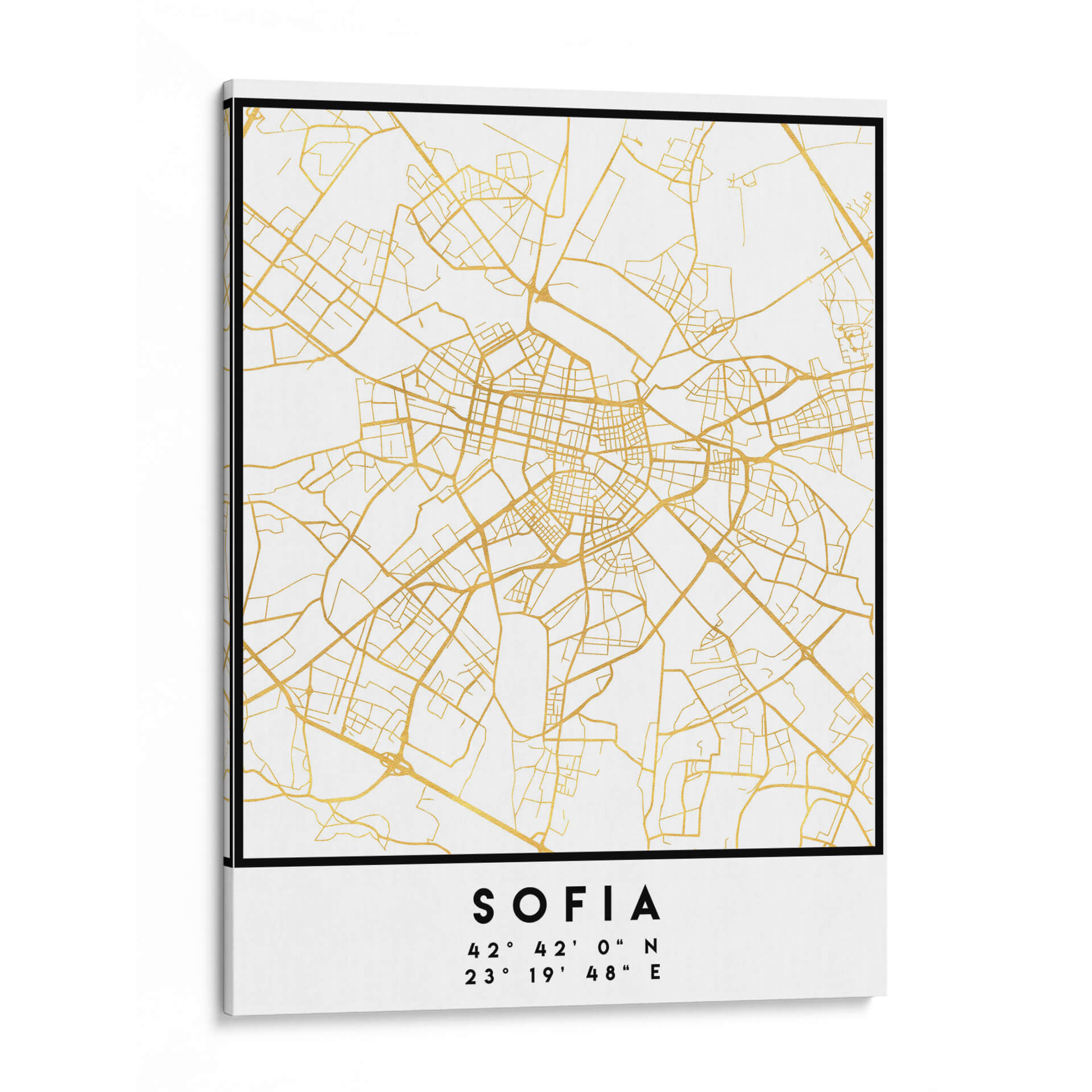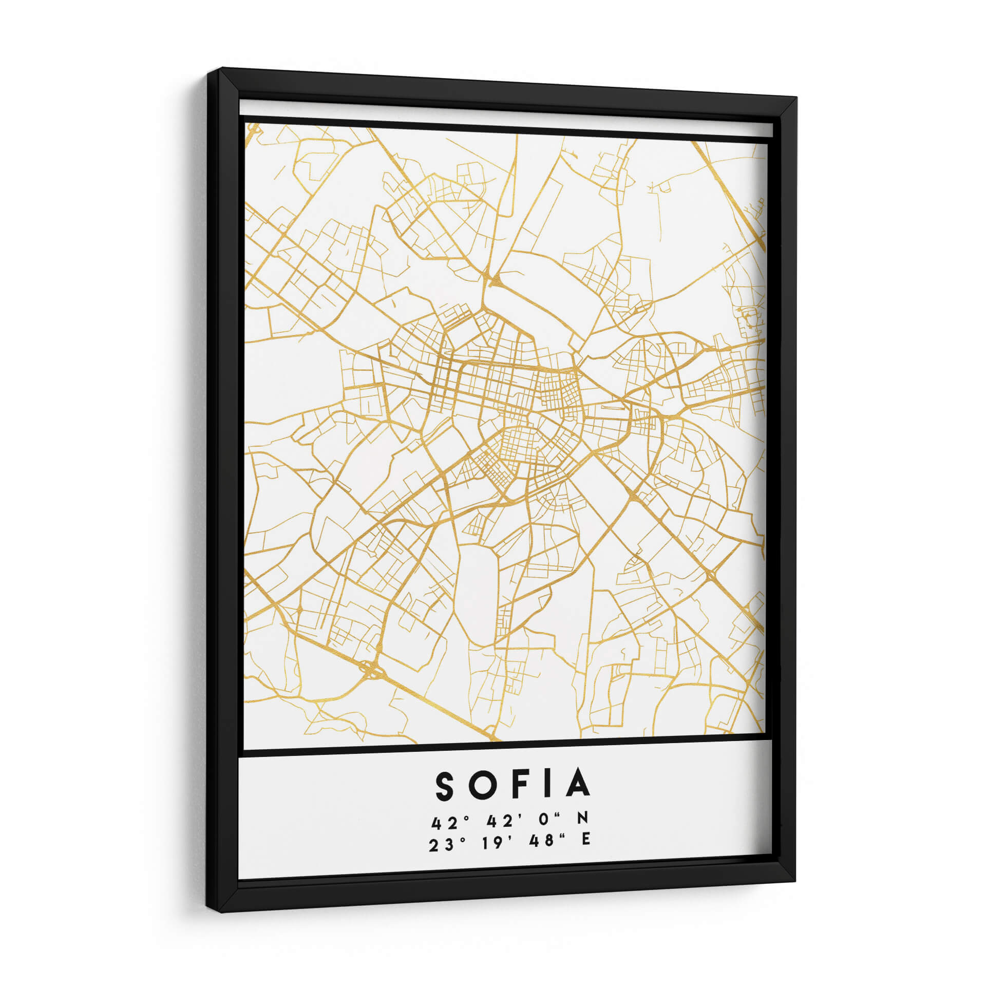 Embellece tu espacio con este cautivador cuadro decorativo que presenta un mapa estilizado de Sofía, la capital de Bulgaria. La obra, titulada 'Sofia, 1 Mapas 2 20' del artista Emiliano Deificus, combina una estética moderna con un toque de sofisticación gracias a su diseño minimalista en dorado sobre fondo blanco. Las finas líneas doradas delinean las intrincadas calles y el trazado urbano de la ciudad, creando un patrón visualmente atractivo que evoca tanto la precisión cartográfica como la belleza abstracta. Este cuadro decorativo es ideal para aquellos que aprecian la geografía, los viajes, o simplemente buscan una pieza de arte contemporáneo que añada un elemento de diseño único a su hogar u oficina. Su paleta de colores neutros y el acento metálico lo convierten en una adición versátil para cualquier decoración, desde la más minimalista hasta la más ecléctica, aportando un aire de elegancia y modernidad. Es perfecto para iniciar conversaciones y añadir un toque personal a tu sala de estar, estudio o cualquier rincón que desees realzar con arte de calidad y significado.