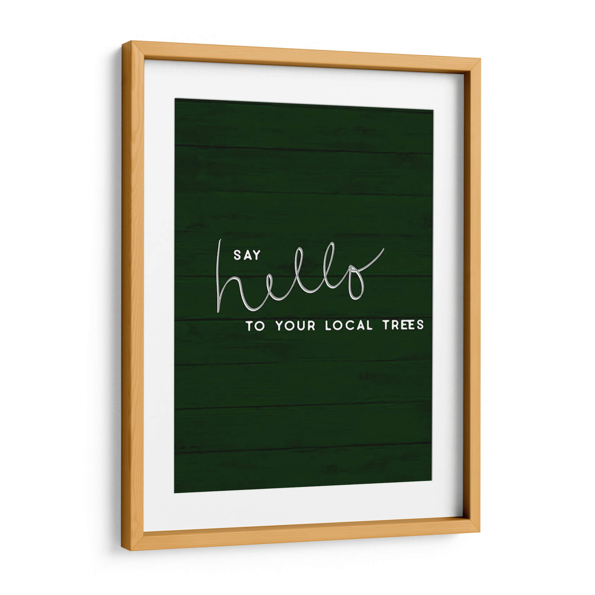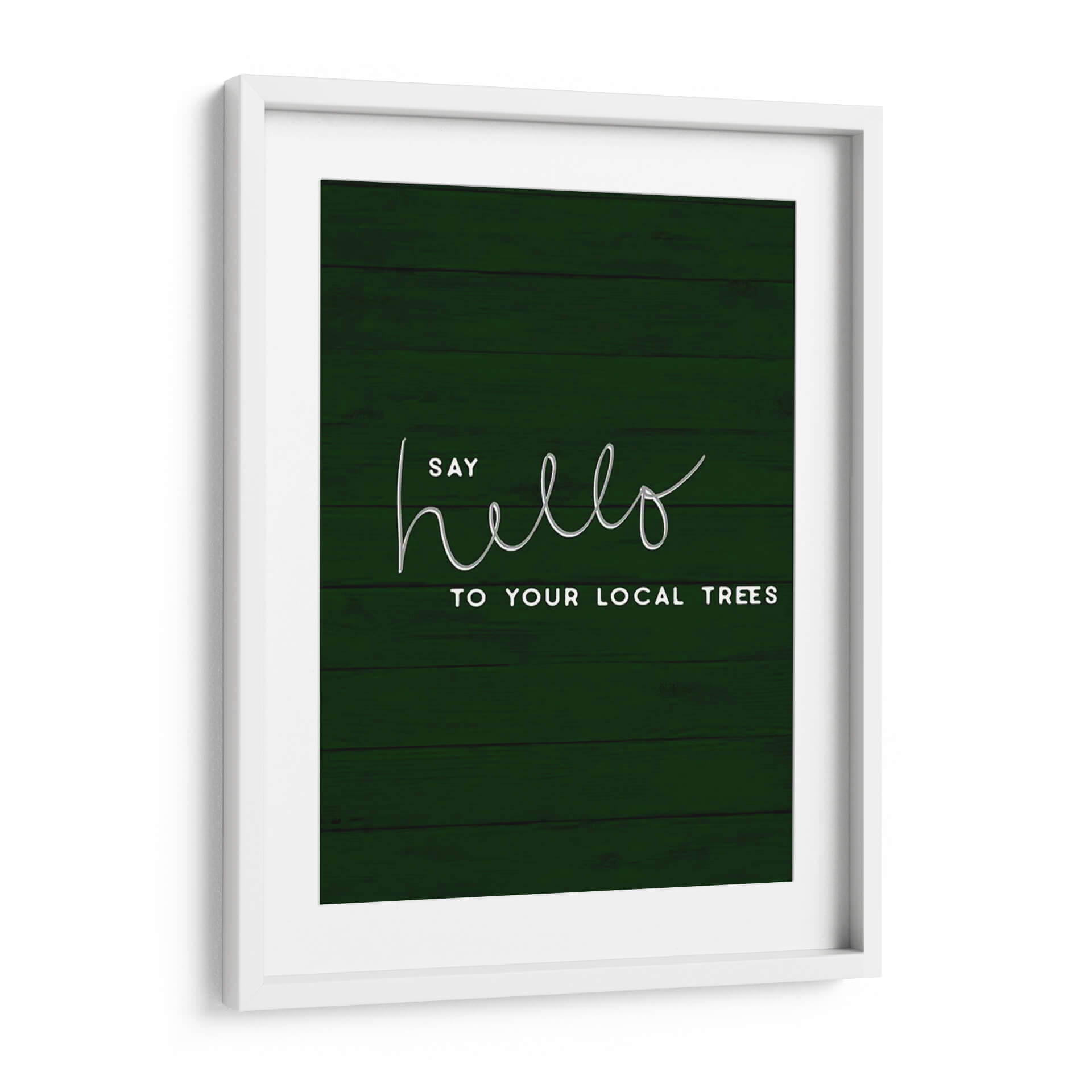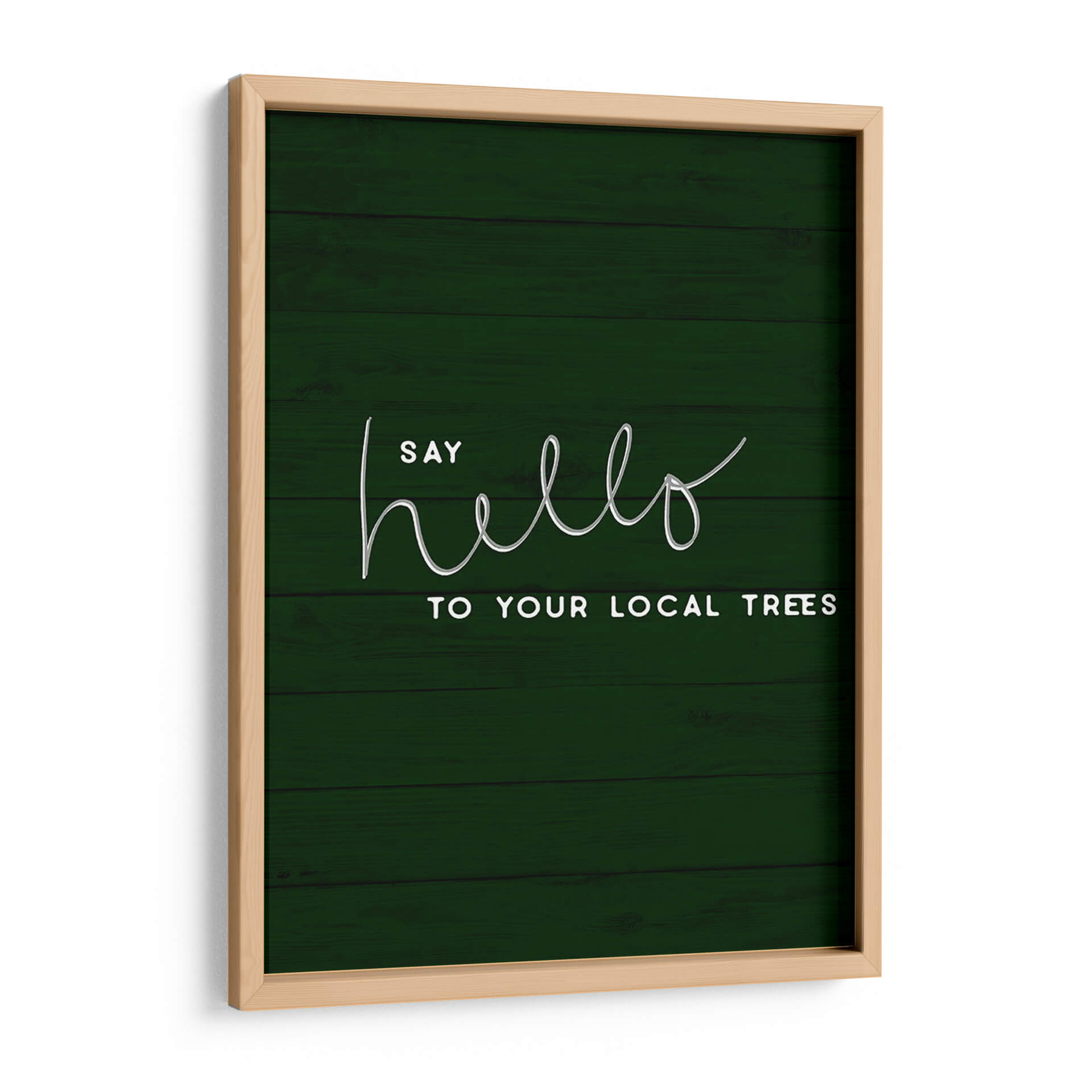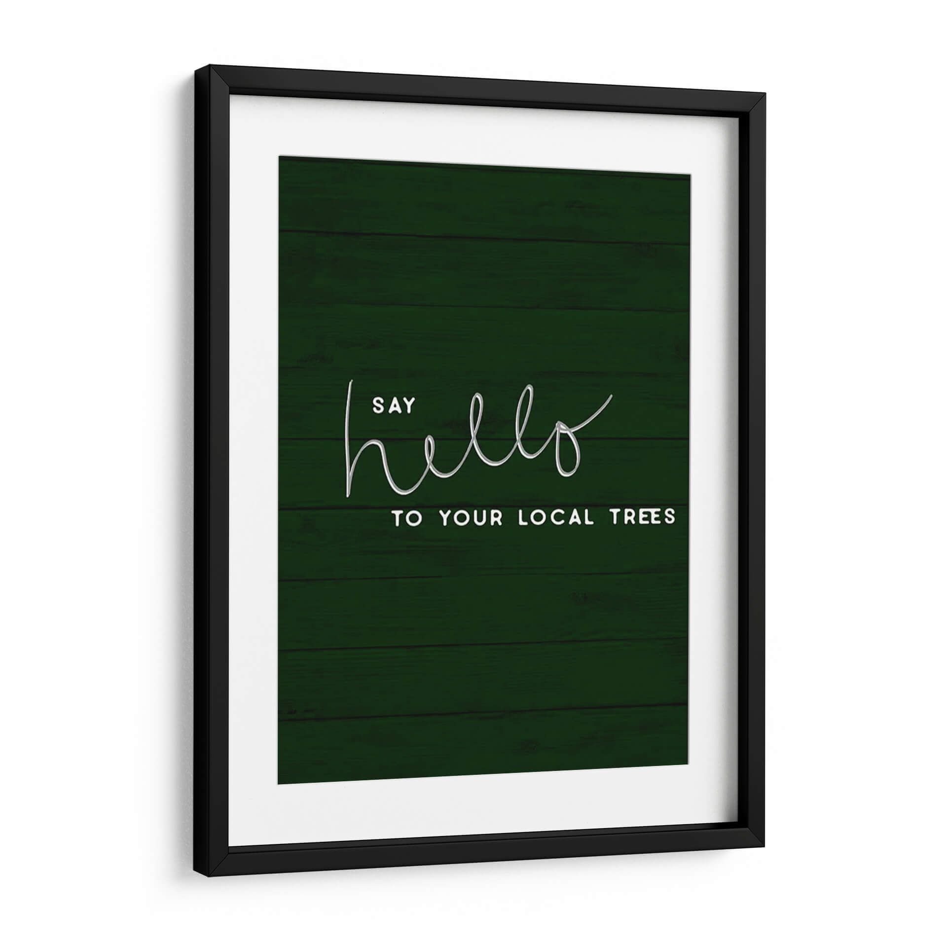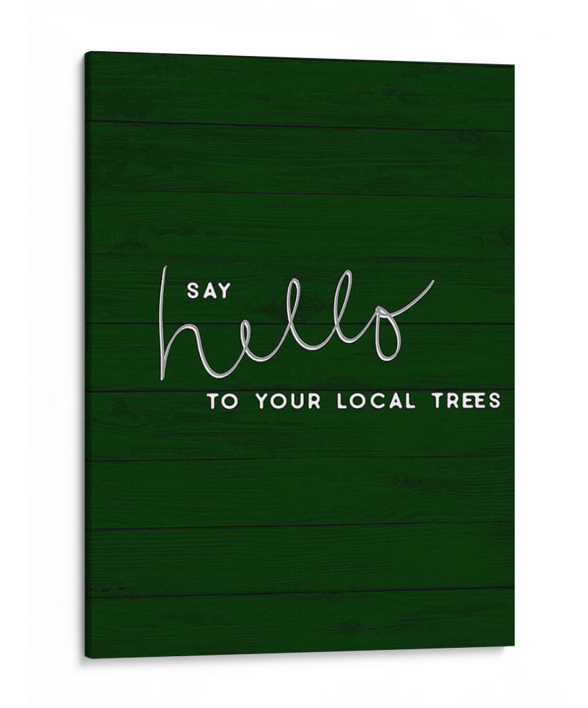 Celebra la naturaleza y el encanto rústico con este cautivador cuadro decorativo, "Abrazar Un Árbol I" de Anna Hambly. La obra presenta una profunda y envolvente paleta de verdes, evocando la serenidad y vitalidad de un bosque frondoso. El texto "Say hello to your local trees" se despliega en una tipografía elegante y minimalista, añadiendo un toque contemporáneo y un mensaje inspirador sobre la conexión con el entorno natural. La composición simétrica y el fondo con textura de madera oscura crean una atmósfera acogedora y terrenal, ideal para quienes buscan infundir paz y un sentido de pertenencia en sus espacios. Este cuadro es perfecto para añadir un toque de vida y conciencia ecológica a tu sala de estar, dormitorio, o incluso a un espacio de trabajo que necesite un respiro natural. Su diseño versátil lo convierte en un punto focal sutil pero significativo, resonando con amantes de la naturaleza y aquellos que aprecian el arte moderno con un mensaje positivo. Un recordatorio visual de la belleza que nos rodea y la importancia de honrarla.