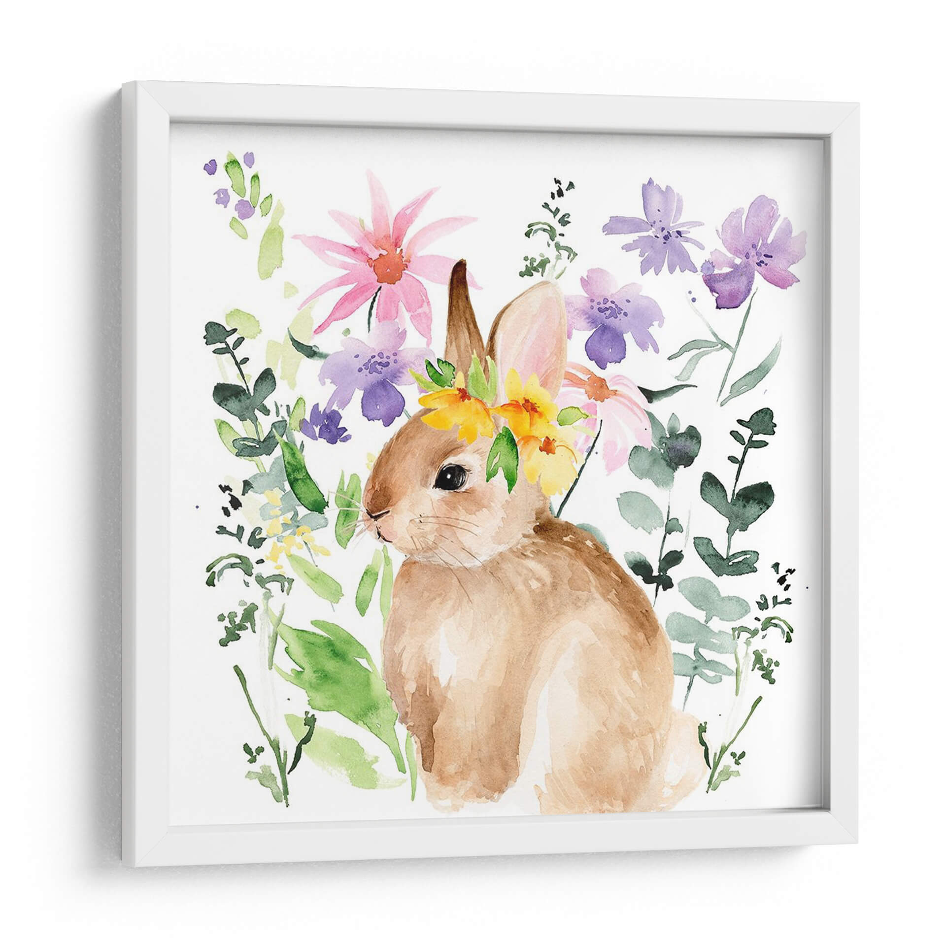 Sumérgete en la dulzura y la frescura de la primavera con 'Acuarela Jardín De Primavera I', una cautivadora obra de arte de Jennifer Paxton Parker. Este cuadro decorativo captura la esencia de un jardín floreciente, con un tierno conejito adornado con una guirnalda de flores amarillas como protagonista. La técnica de acuarela utilizada aporta una ligereza etérea y una delicadeza única a cada pincelada, mientras que la paleta de colores, dominada por suaves tonos pastel de rosa, lila y amarillo, junto con verdes vibrantes, crea una atmósfera de paz y renovación. La composición, centrada en la figura del conejito rodeado de una exuberante vegetación y flores silvestres, invita a la contemplación y evoca una sensación de inocencia y alegría primaveral. Ideal para añadir un toque de encanto natural y serenidad a cualquier espacio, desde dormitorios infantiles hasta salones o estudios que busquen un respiro de calma y belleza. Este cuadro decorativo es perfecto para quienes aprecian el arte figurativo con un toque moderno y evocador, aportando vida y color a tus paredes.