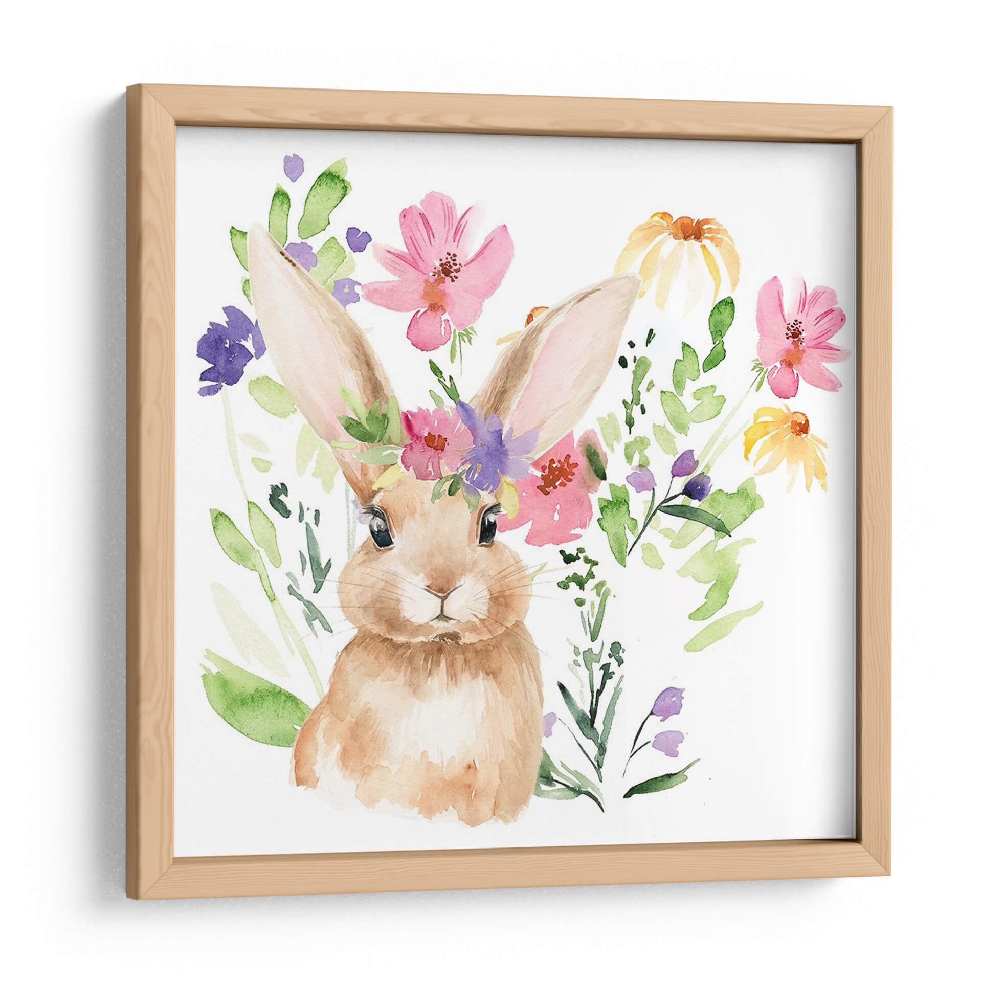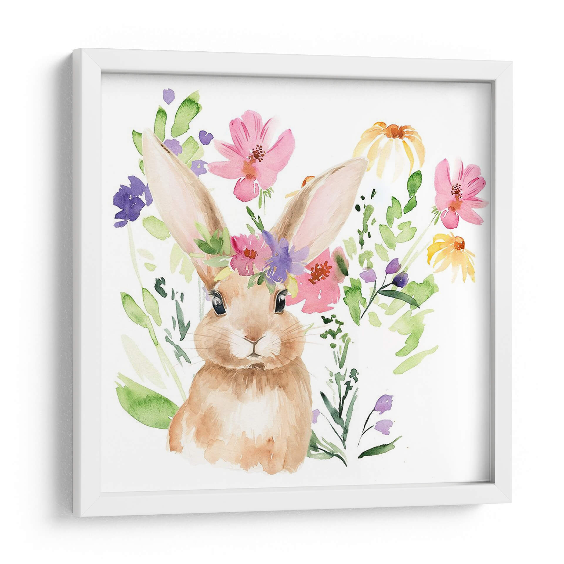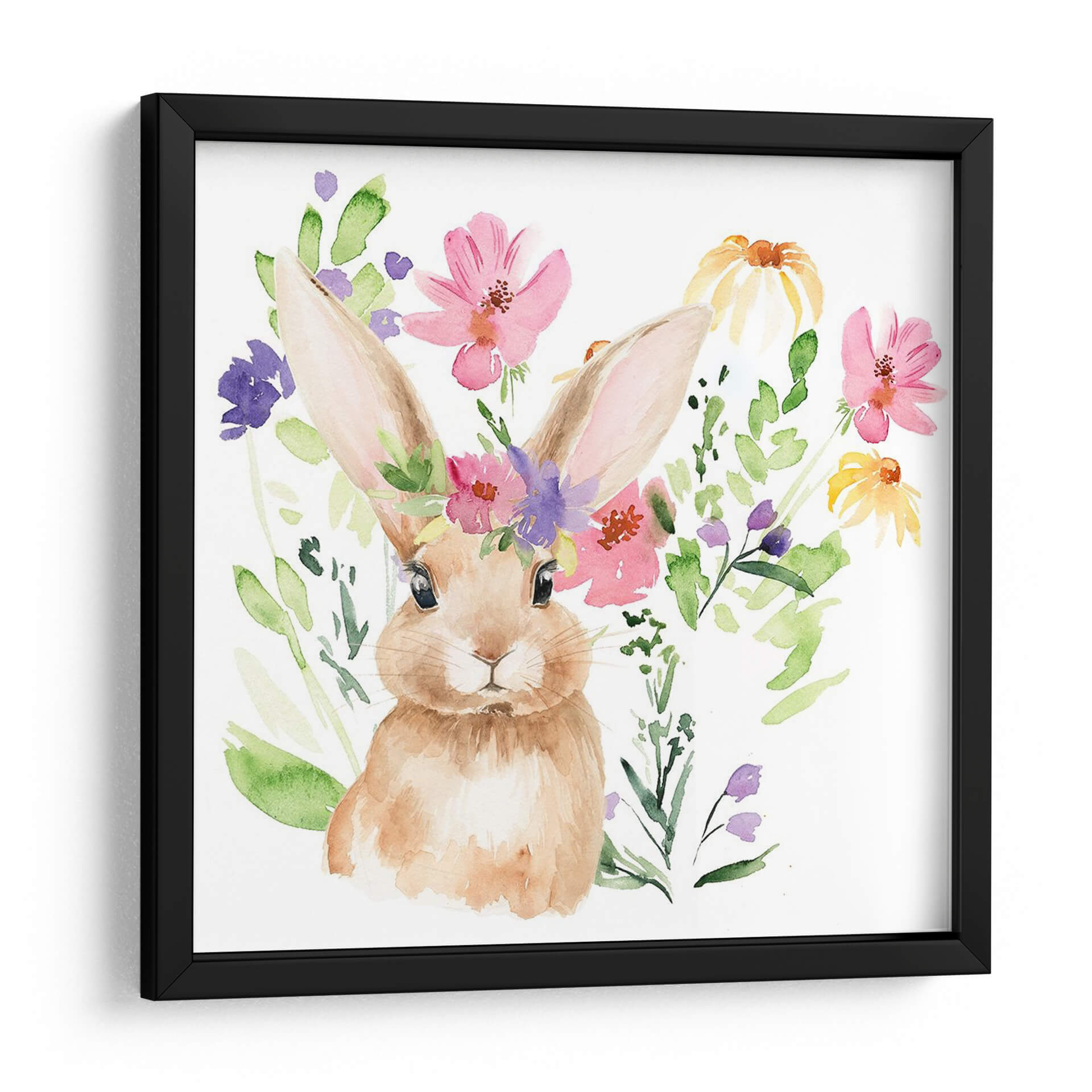 Sumérgete en la dulzura y la vitalidad de la primavera con nuestro exclusivo cuadro decorativo "Acuarela Spring Garden II" de Jennifer Paxton Parker. Esta encantadora obra de arte captura la esencia de un jardín floreciente a través de una delicada técnica de acuarela, presentando un tierno conejito adornado con una corona de flores silvestres. Los vibrantes tonos de rosa, púrpura y amarillo de las flores contrastan armoniosamente con el suave pelaje del conejo y las frescas tonalidades verdes de las hojas, creando una atmósfera alegre y llena de vida. La composición, con el conejito como protagonista central rodeado por un estallido de naturaleza, evoca sentimientos de inocencia, renovación y la belleza efímera de la estación. Ideal para añadir un toque de color y encanto a cualquier habitación, desde un vivero hasta una sala de estar o una oficina que busque un acento natural y optimista. Este cuadro es perfecto para quienes aprecian el arte contemporáneo con un toque tierno y primaveral, transformando tu espacio en un refugio de paz y alegría.