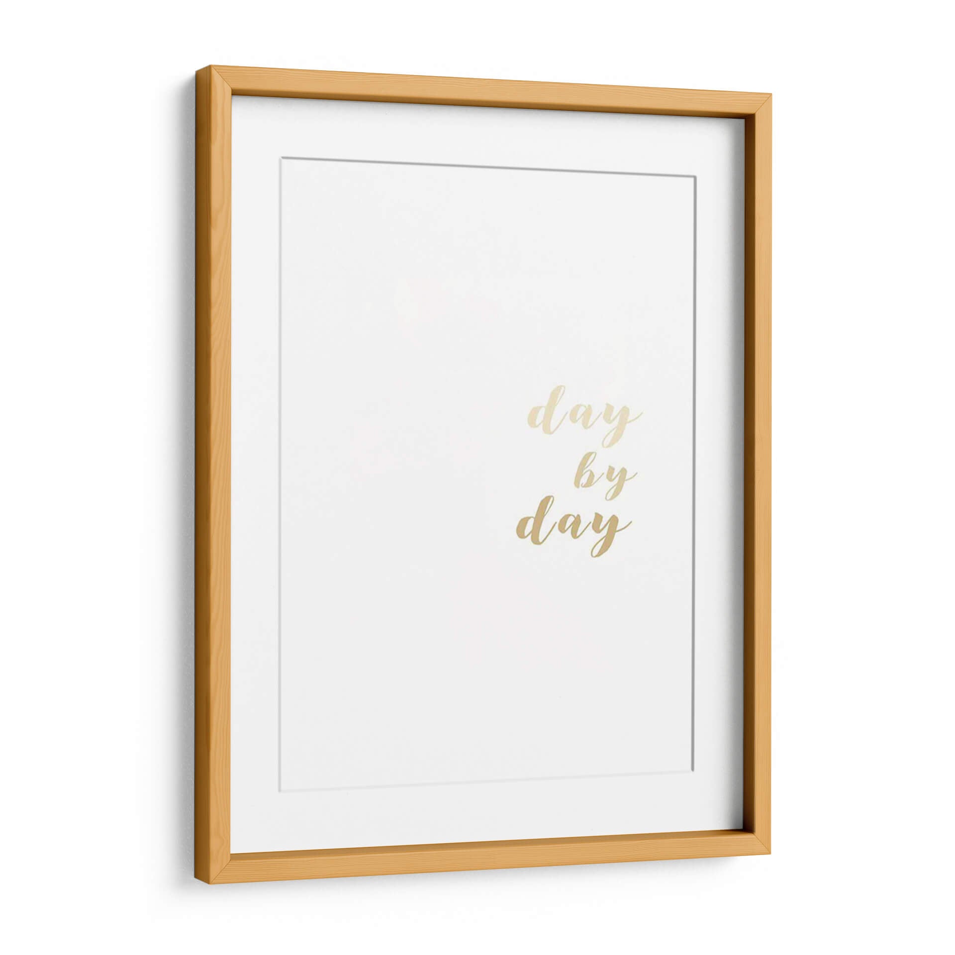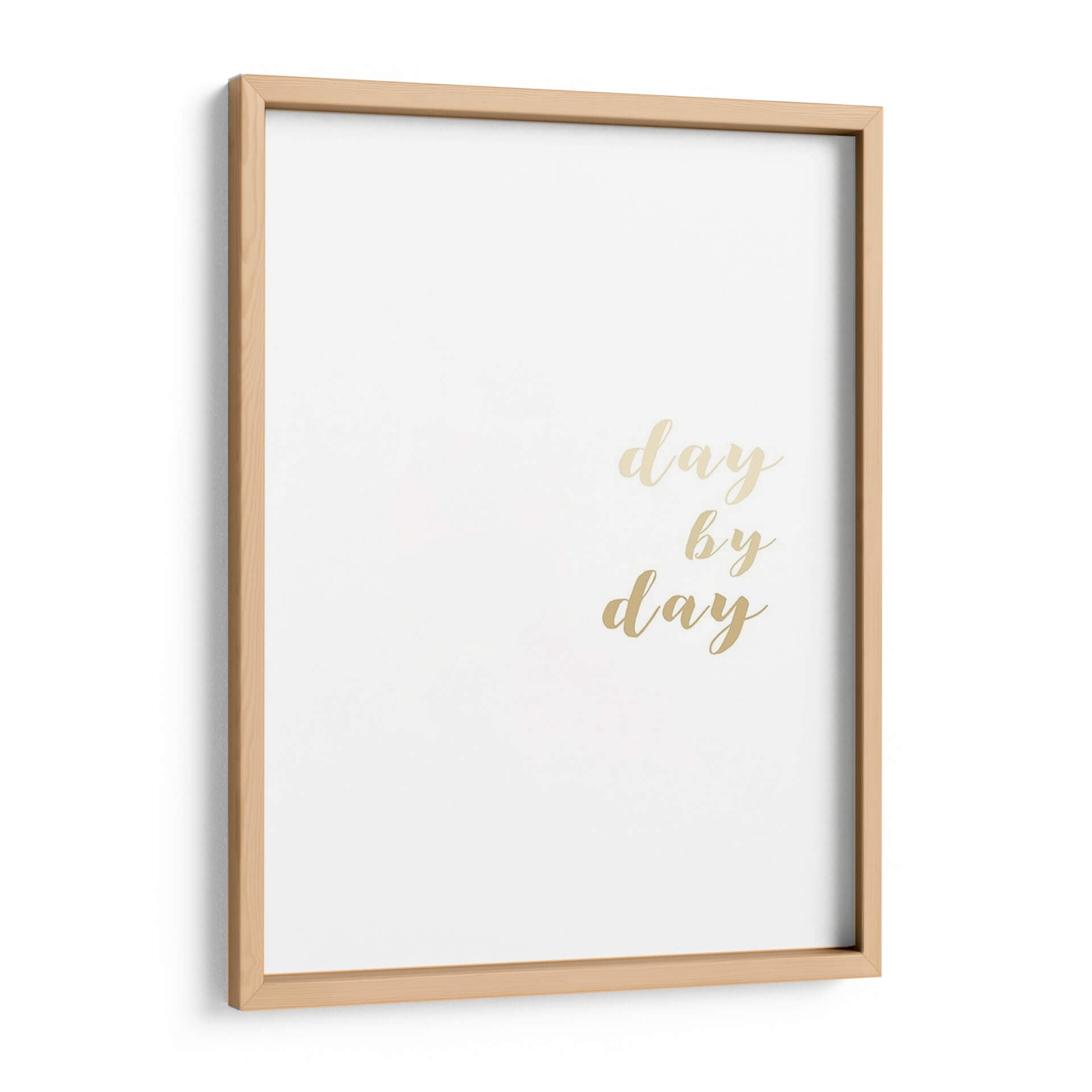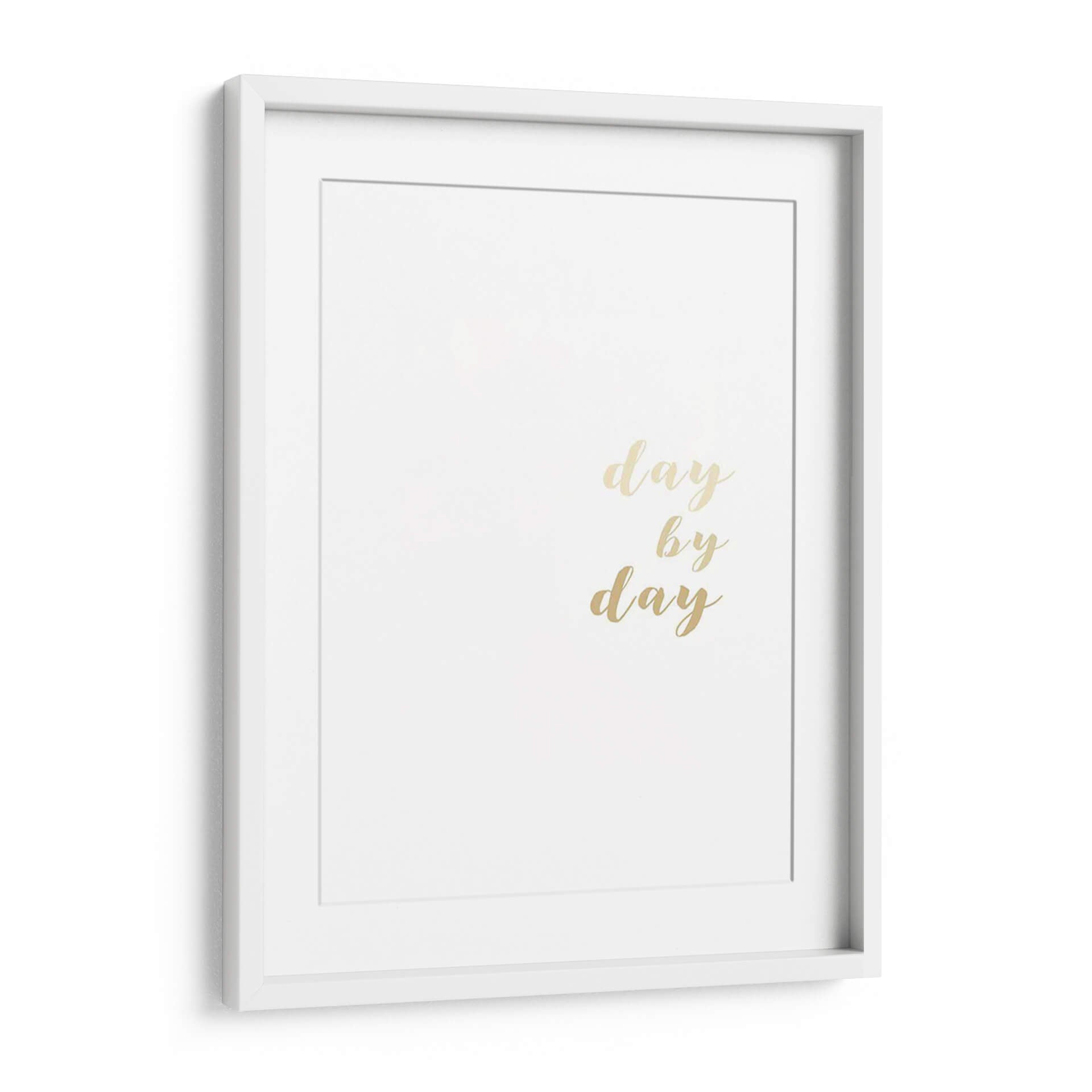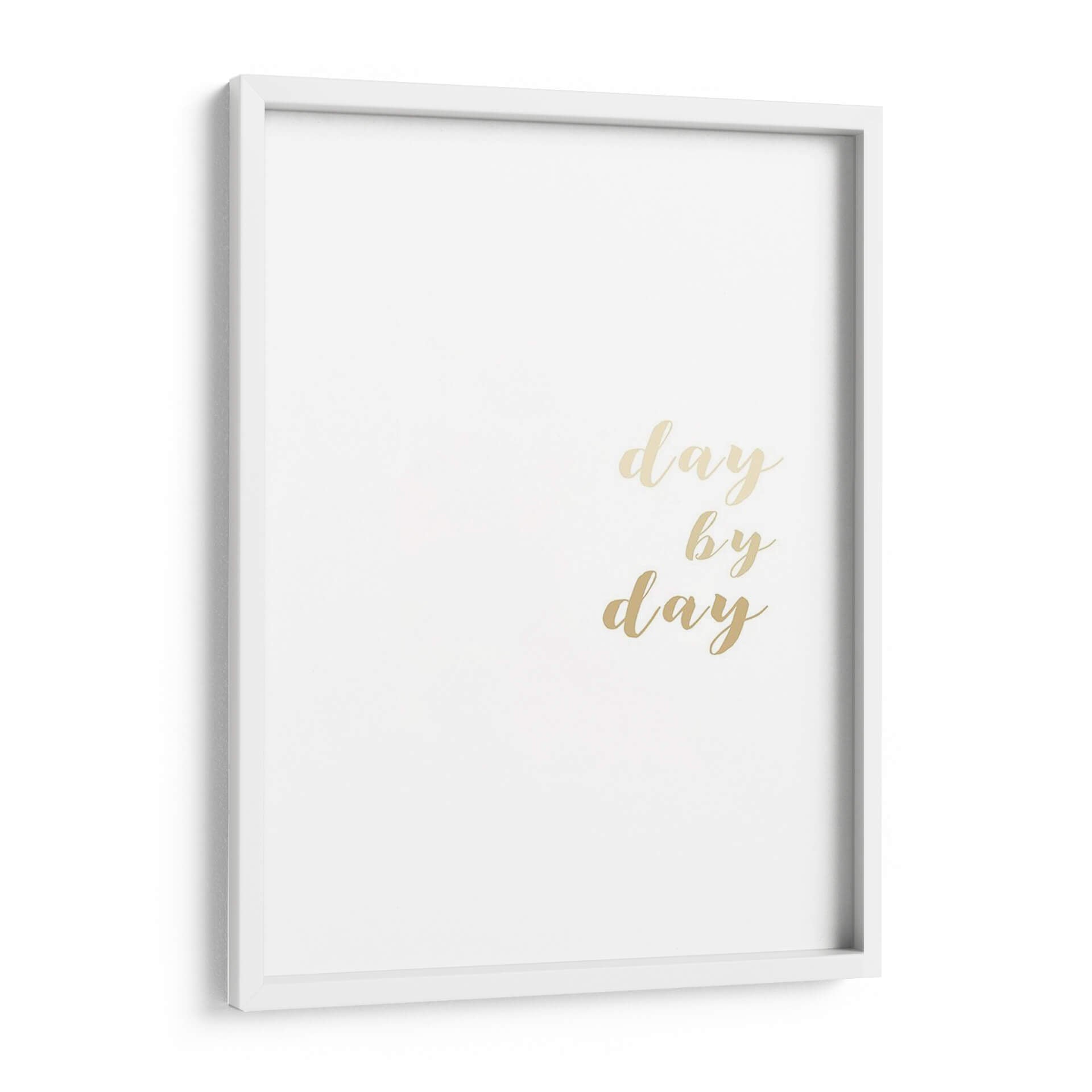 Inspira tus días con el cautivador cuadro decorativo "Alentamientos II" de Anna Hambly. Esta obra minimalista presenta la frase "day by day" (día tras día) en una elegante tipografía dorada sobre un fondo blanco puro, creando un contraste sutil pero impactante. La sencillez de su diseño lo convierte en una pieza versátil, perfecta para añadir un toque de motivación y optimismo a cualquier espacio. Su estilo contemporáneo y la delicadeza de sus elementos la hacen ideal para complementar decoraciones modernas, escandinavas o minimalistas en salones, dormitorios, oficinas o pasillos. La paleta de colores neutra y los acentos dorados aportan un aire de sofisticación y luminosidad, convirtiendo este cuadro en un recordatorio diario de perseverancia y enfoque. "Alentamientos II" no es solo una obra de arte, es una declaración de intenciones que eleva el ambiente y refleja un espíritu positivo, ideal para quienes buscan arte inspirador y elegante que resuene con su día a día.