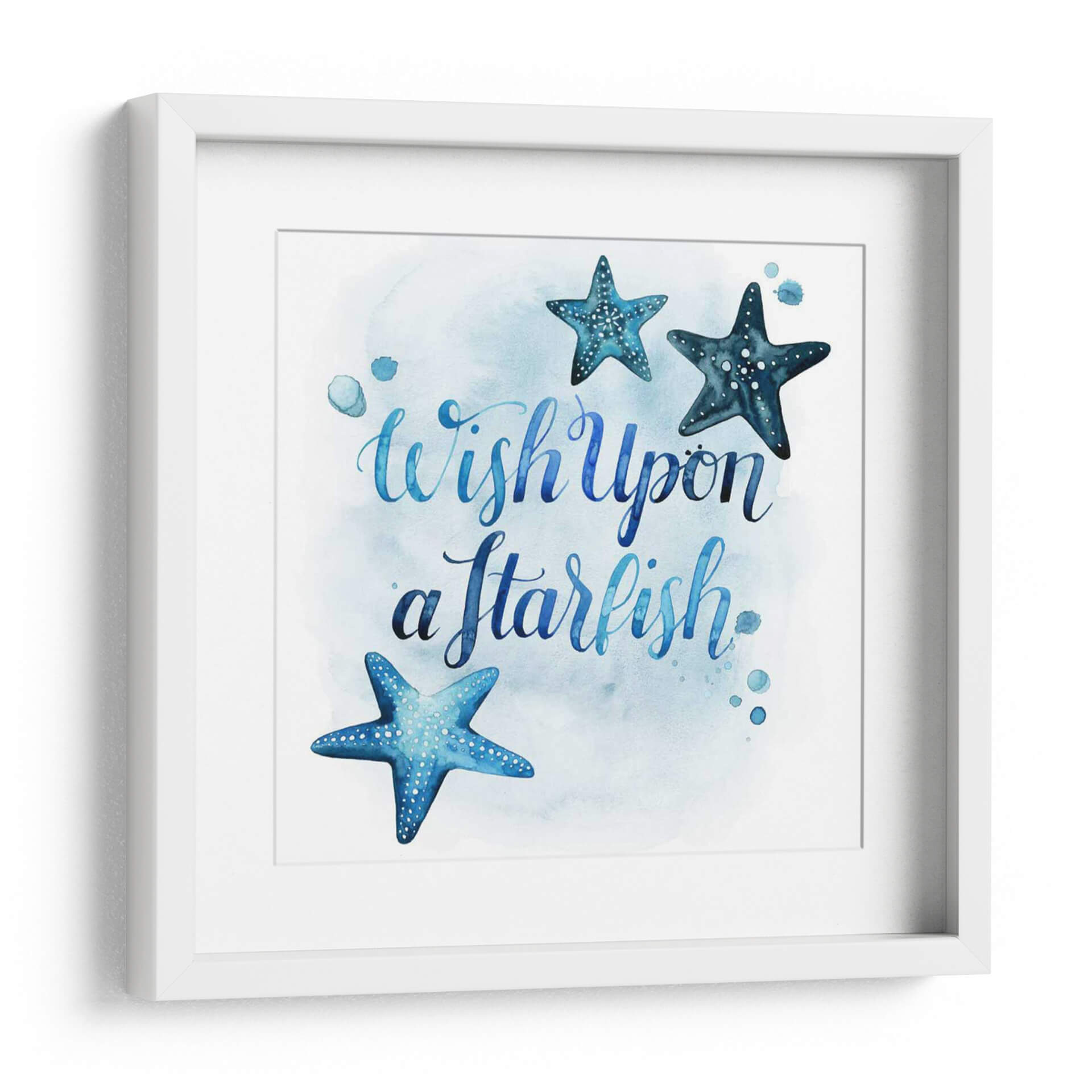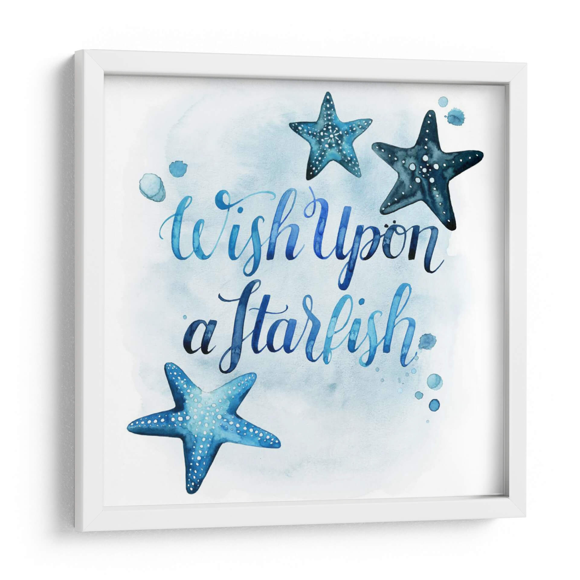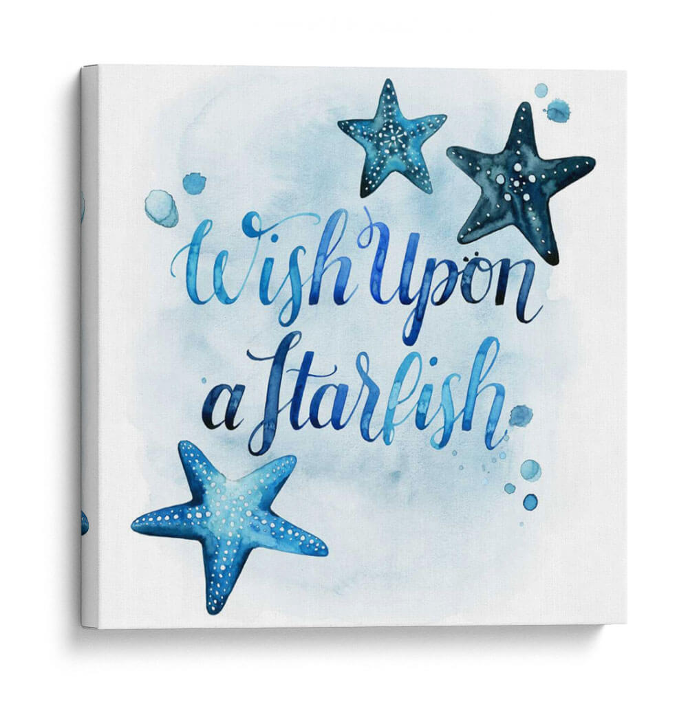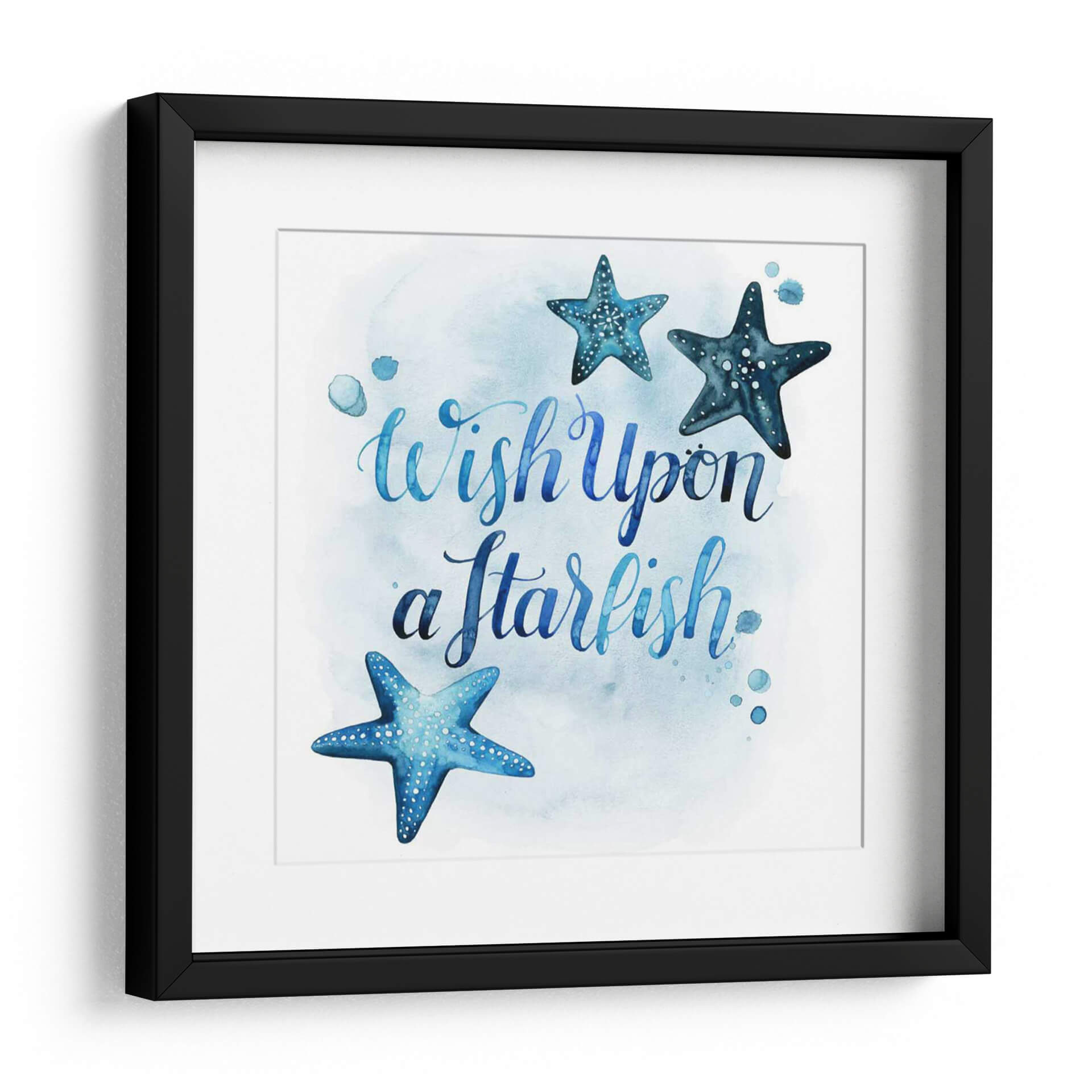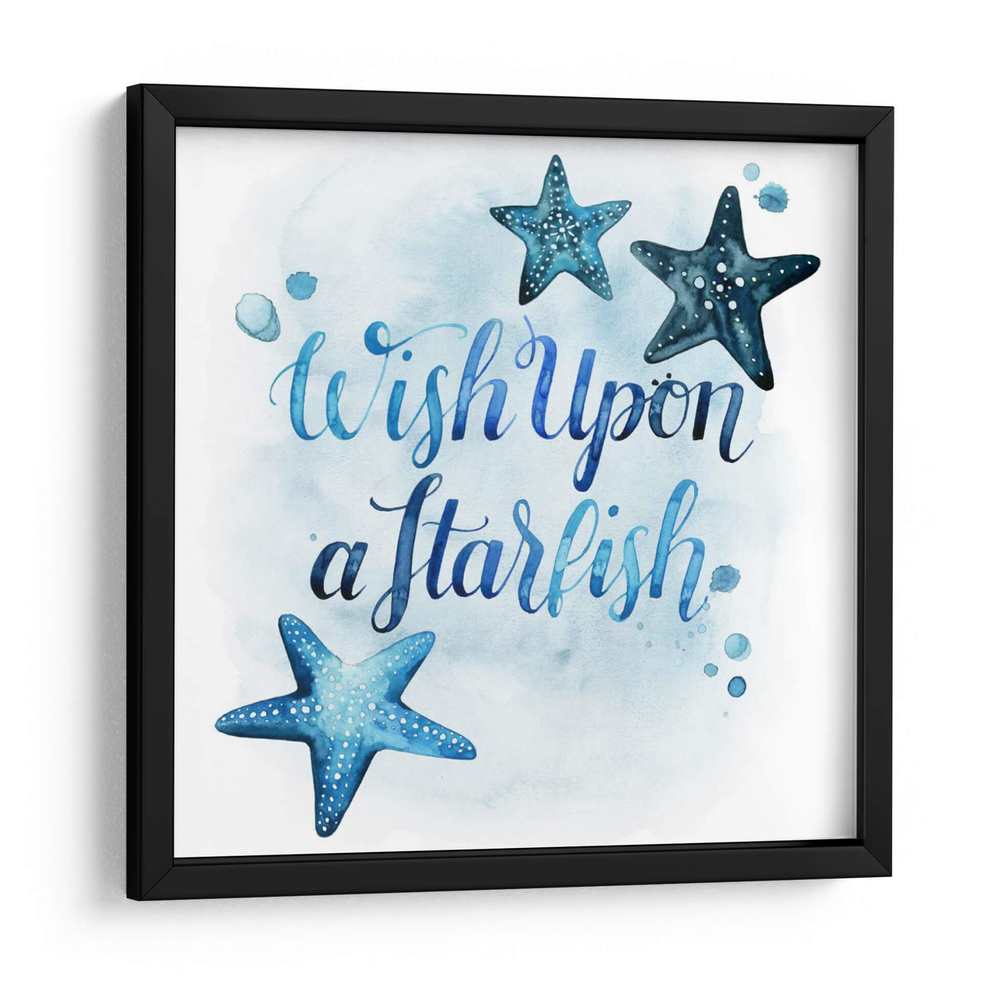 Sumérgete en la serenidad marina con "Amantes Del Mar I", una cautivadora obra de arte de Grace Popp que evoca la magia del océano. Este cuadro decorativo presenta estrellas de mar vibrantes en tonos azules profundos y celestes, contrastando con un fondo acuarelado que simula suaves olas y burbujas efervescentes. La pieza central es la frase caligráfica "Wish Upon a Starfish", escrita con una tipografía fluida y elegante en un azul intenso que captura la mirada. La composición, centrada en estos icónicos habitantes marinos y un mensaje inspirador, transmite una sensación de calma, esperanza y conexión con la naturaleza. Su estilo acuarelado y etéreo la hace perfecta para añadir un toque de paz y encanto costero a cualquier estancia, ya sea en un dormitorio, un baño o una sala de estar. Este cuadro decorativo es ideal para aquellos que buscan infundir sus espacios con la tranquilidad y la belleza del mar, convirtiéndose en un recordatorio visual de los deseos y las maravillas que nos rodean.