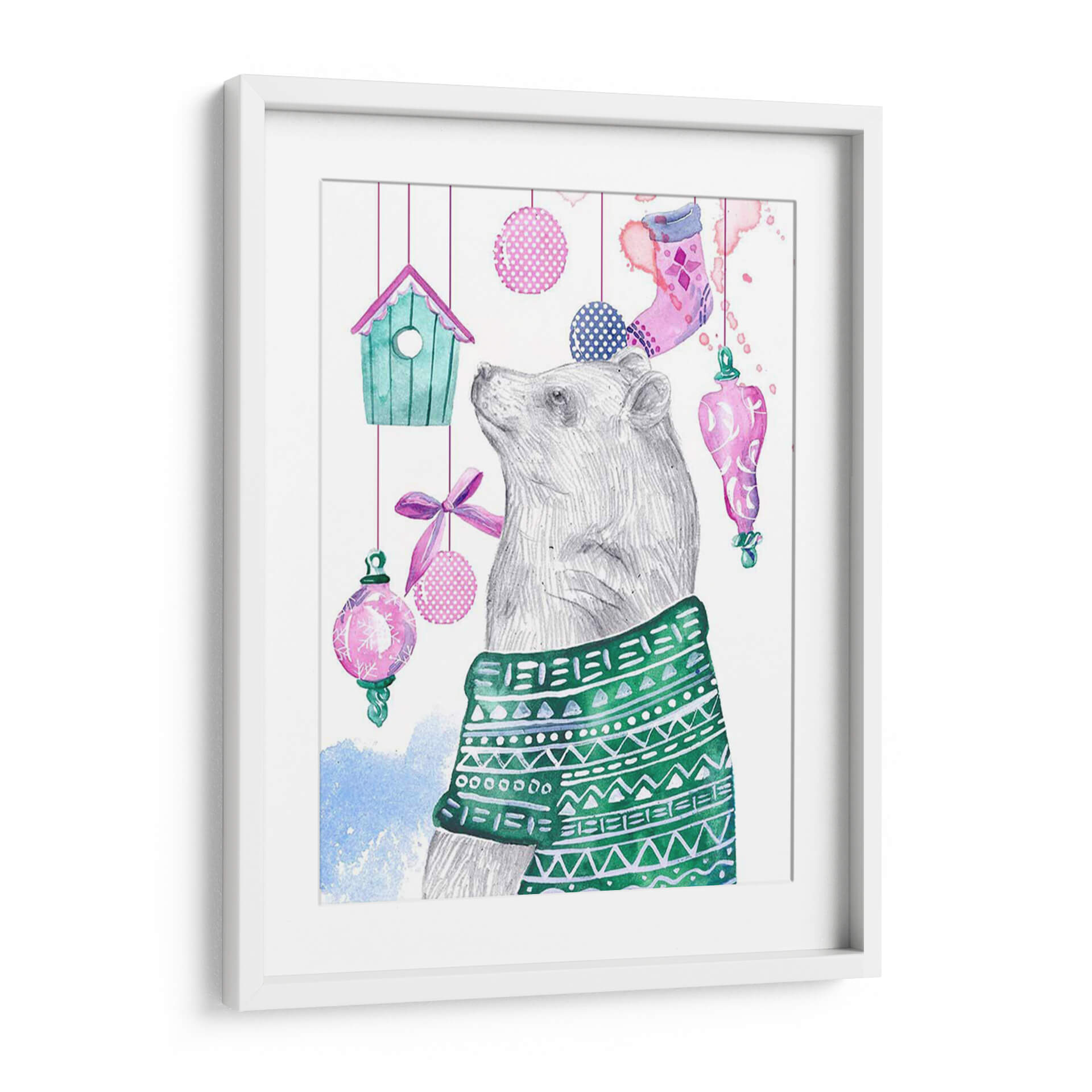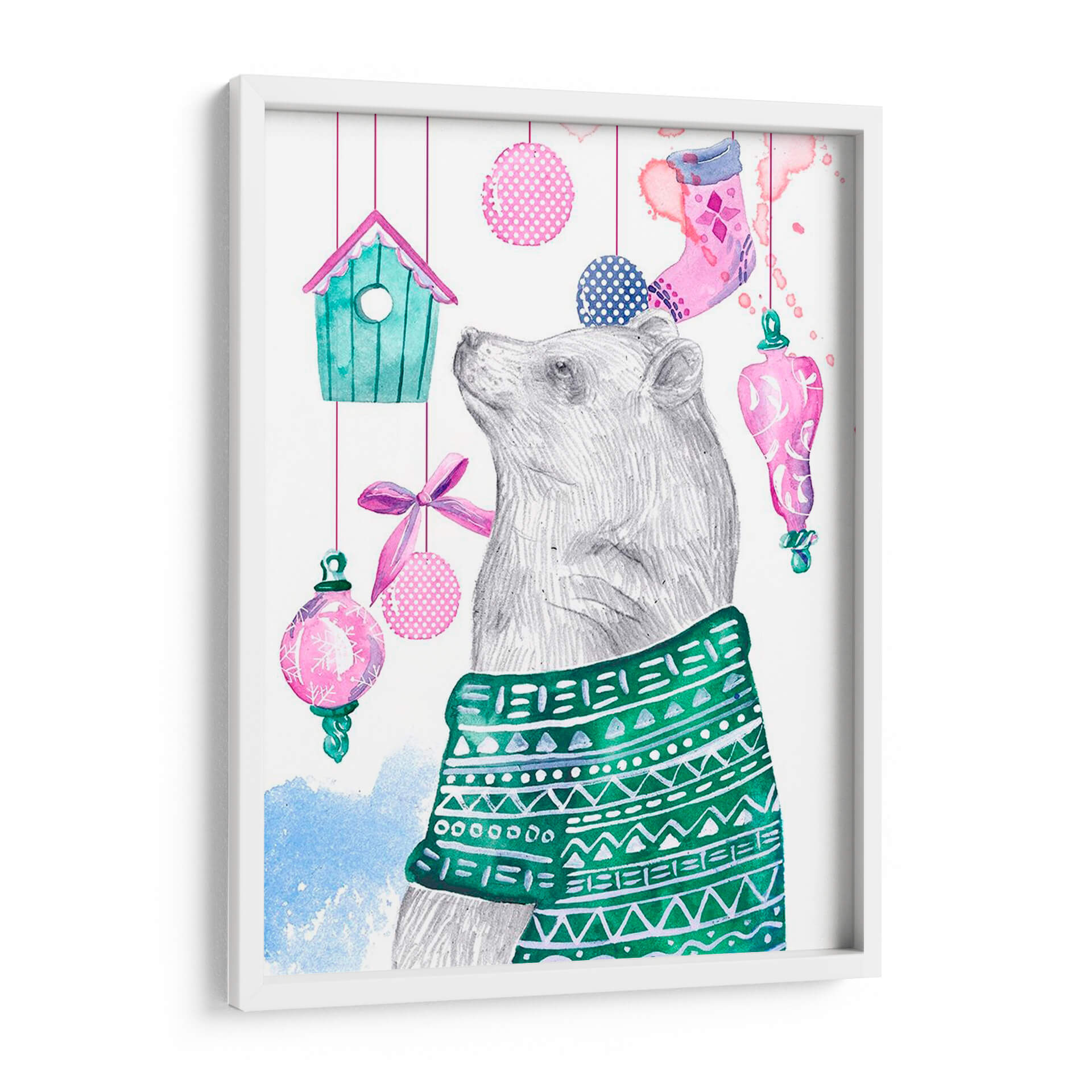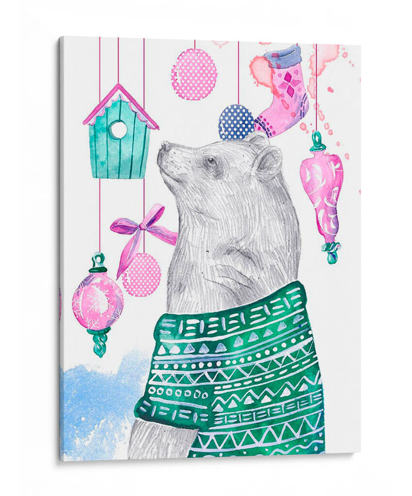Adéntrate en la magia invernal con "Árbol de Diciembre III", una obra de arte encantadora de Melissa Wang que captura la esencia de la temporada con una ternura inigualable. Este cuadro decorativo presenta a un oso polar, ataviado con un suéter de patrones nórdicos en vibrantes tonos verdes y blancos, que mira con curiosidad hacia adornos navideños colgantes. La paleta de colores, que combina delicados rosas, turquesas y azules, evoca una atmósfera festiva y acogedora, perfecta para añadir un toque de calidez a tu hogar. El estilo de acuarela, con sus trazos suaves y sutiles, aporta una sensación de ligereza y encanto, haciendo de esta pieza una adición ideal para la decoración de habitaciones infantiles, salas de estar o cualquier espacio que busque un ambiente alegre y tierno. Ideal para quienes buscan arte temático de invierno o animales que inspiren sonrisas, este cuadro es una invitación a celebrar la temporada con estilo y originalidad, transformando tus paredes en un lienzo de emociones positivas y recuerdos entrañables. Su composición centrada y los detalles juguetones lo convierten en un punto focal que atrae las miradas y genera conversación, celebrando la dulzura del invierno.